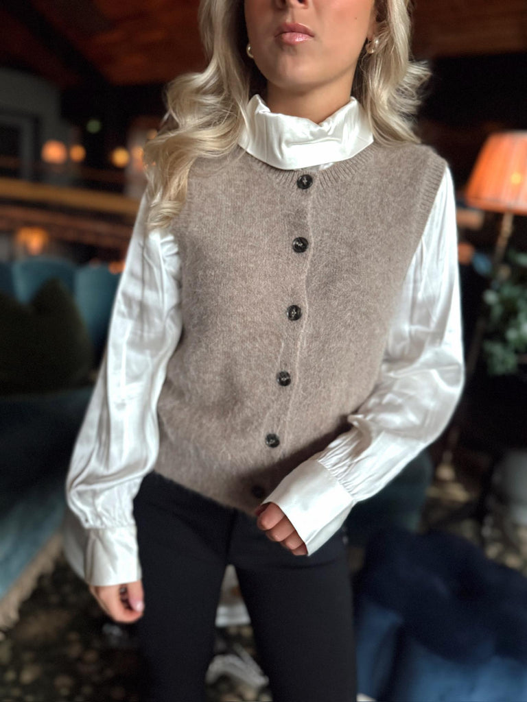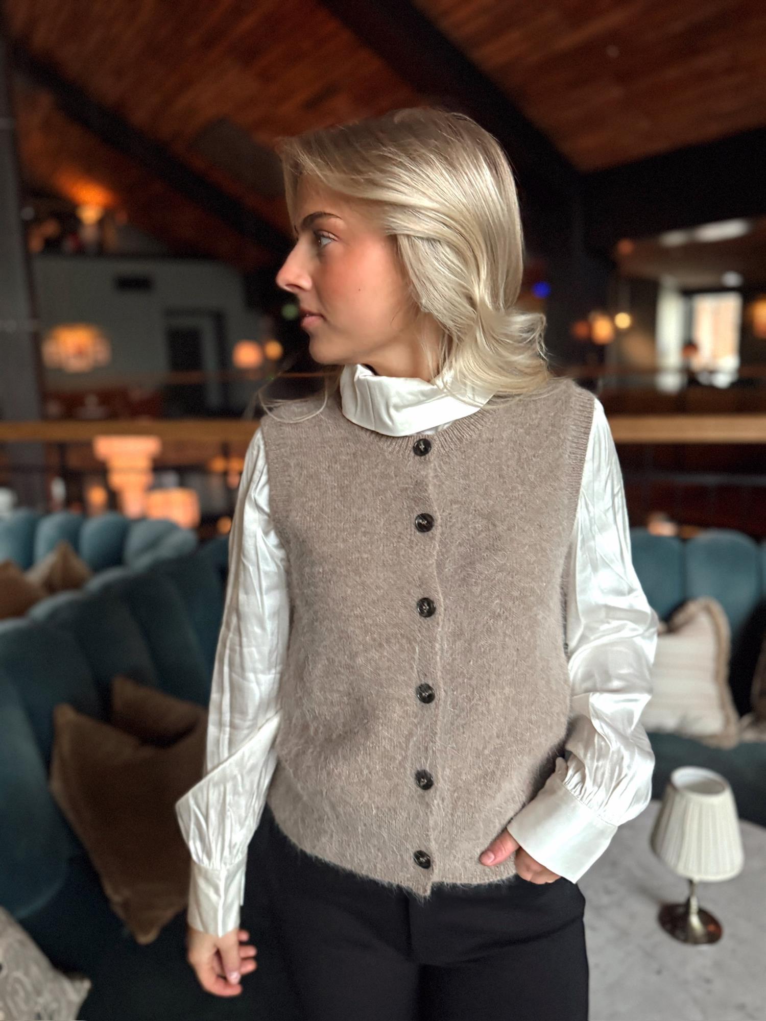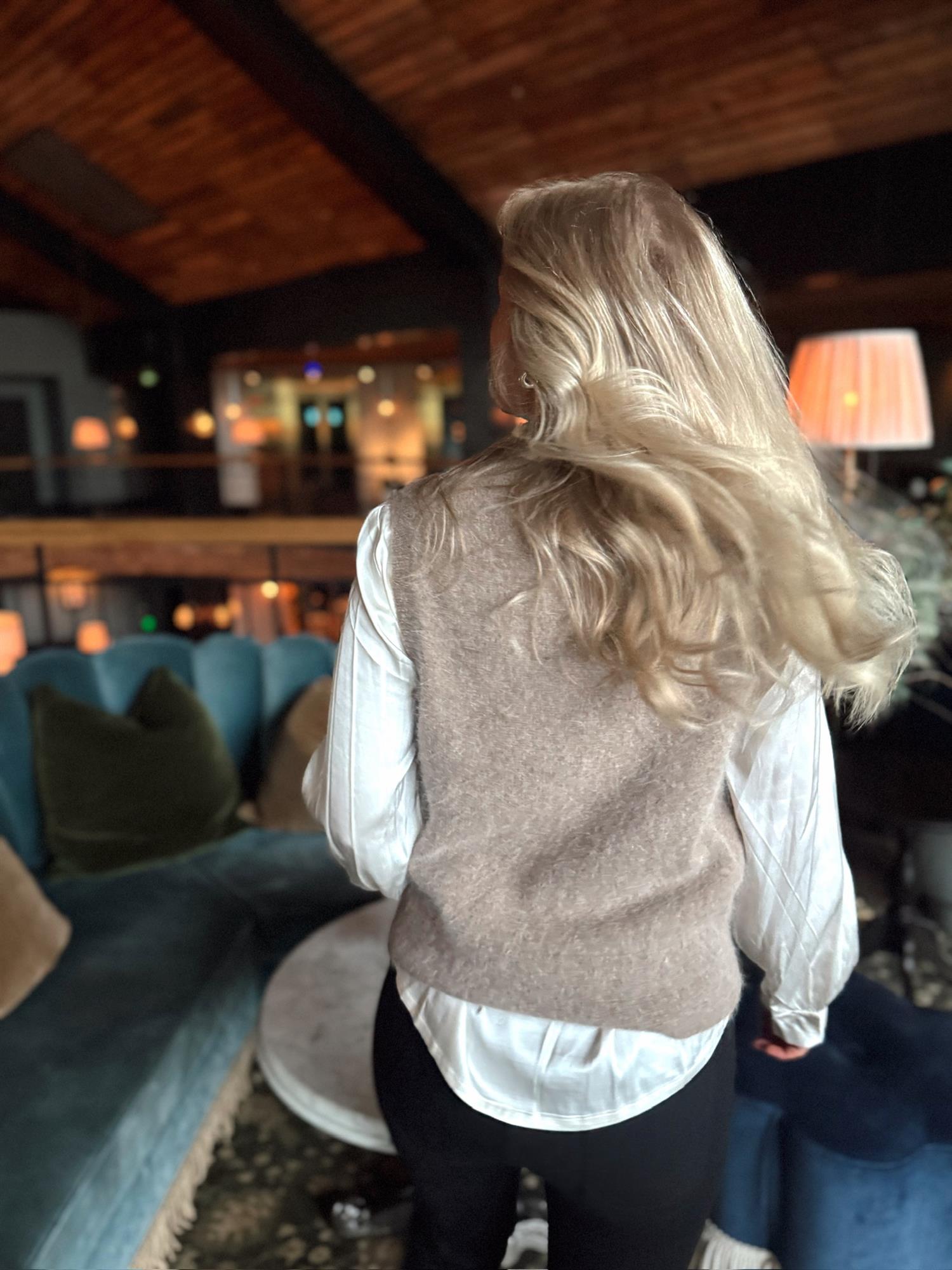 Bruk den over en skjorte for et tidløst, sofistikert antrekk – eller kombiner med en enkel genser for en mer avslappet look. Den nøytrale fargetonen gjør den lett å mikse med resten av garderoben din, og løfter ethvert antrekk med et hint av luksus.