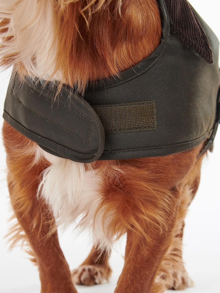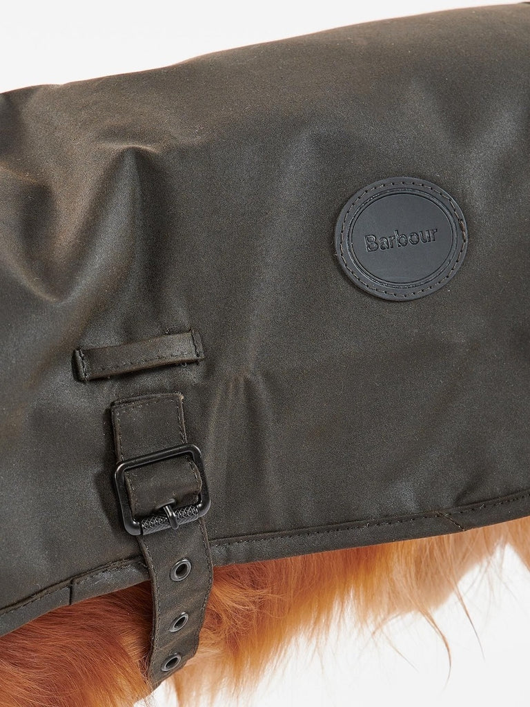 En lett vokset jakke med justerban reim under magen. Innsiden en myk bomull. Hull til bånd.