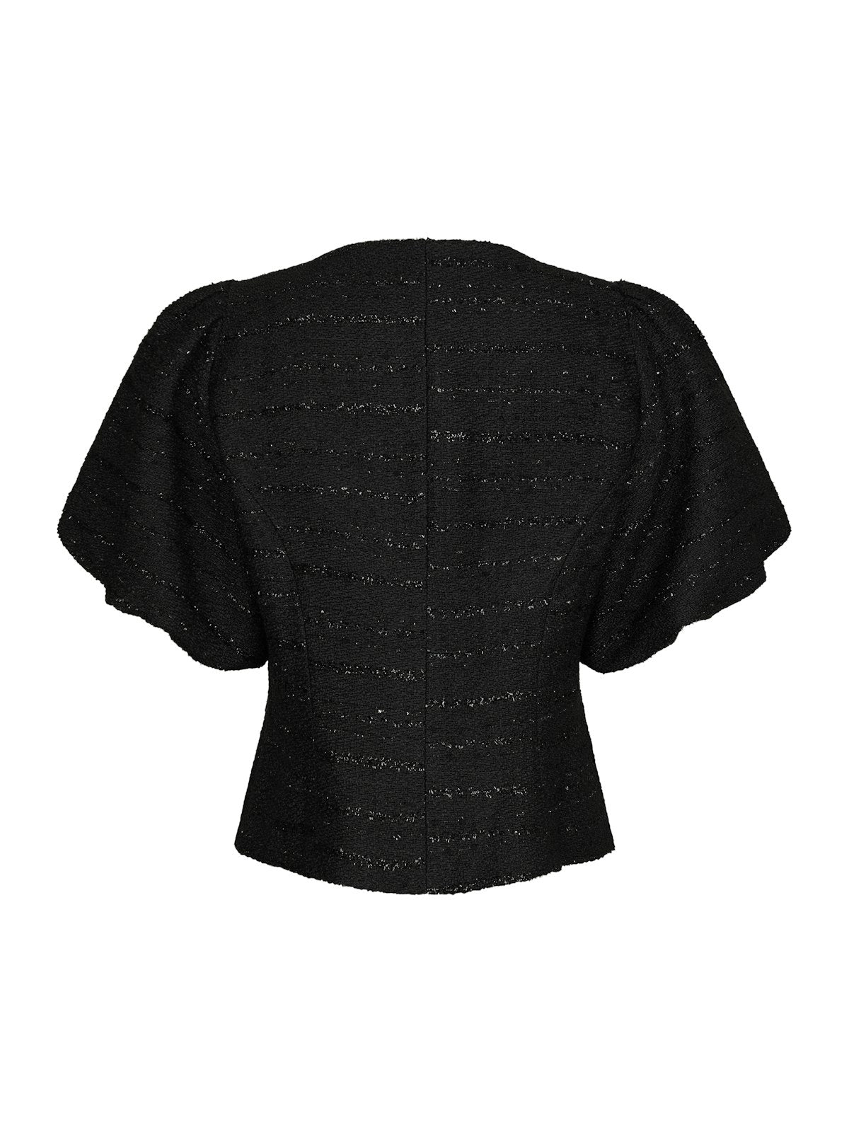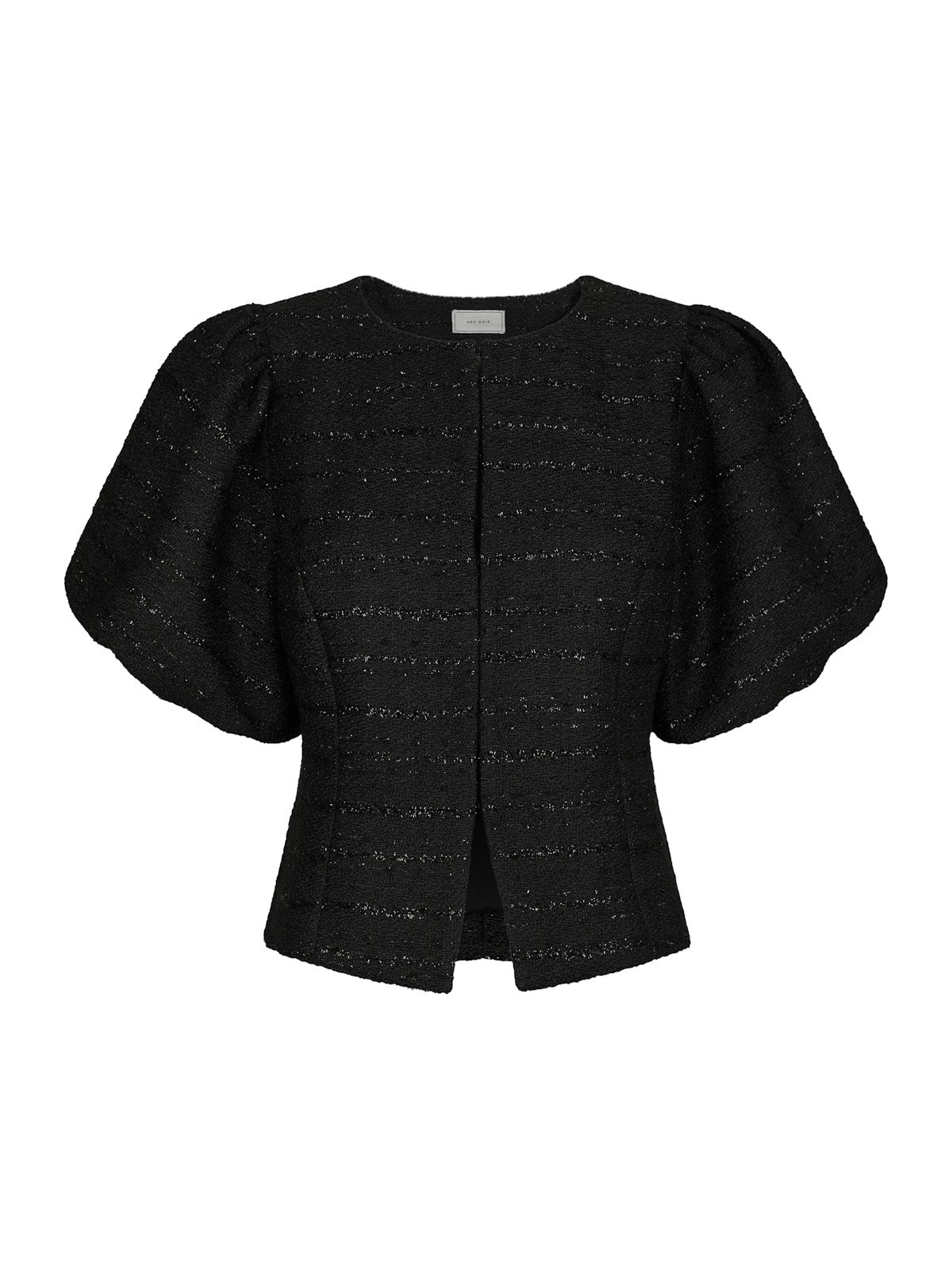Anela Boucle Blouse er en elegant bluse med puffermer og knappelukking foran. Den har en vakker boucle-kvalitet med en subtil glans, og den er figursydd rundt midjen for en flatterende silhuett. Perfekt for spesielle anledninger.