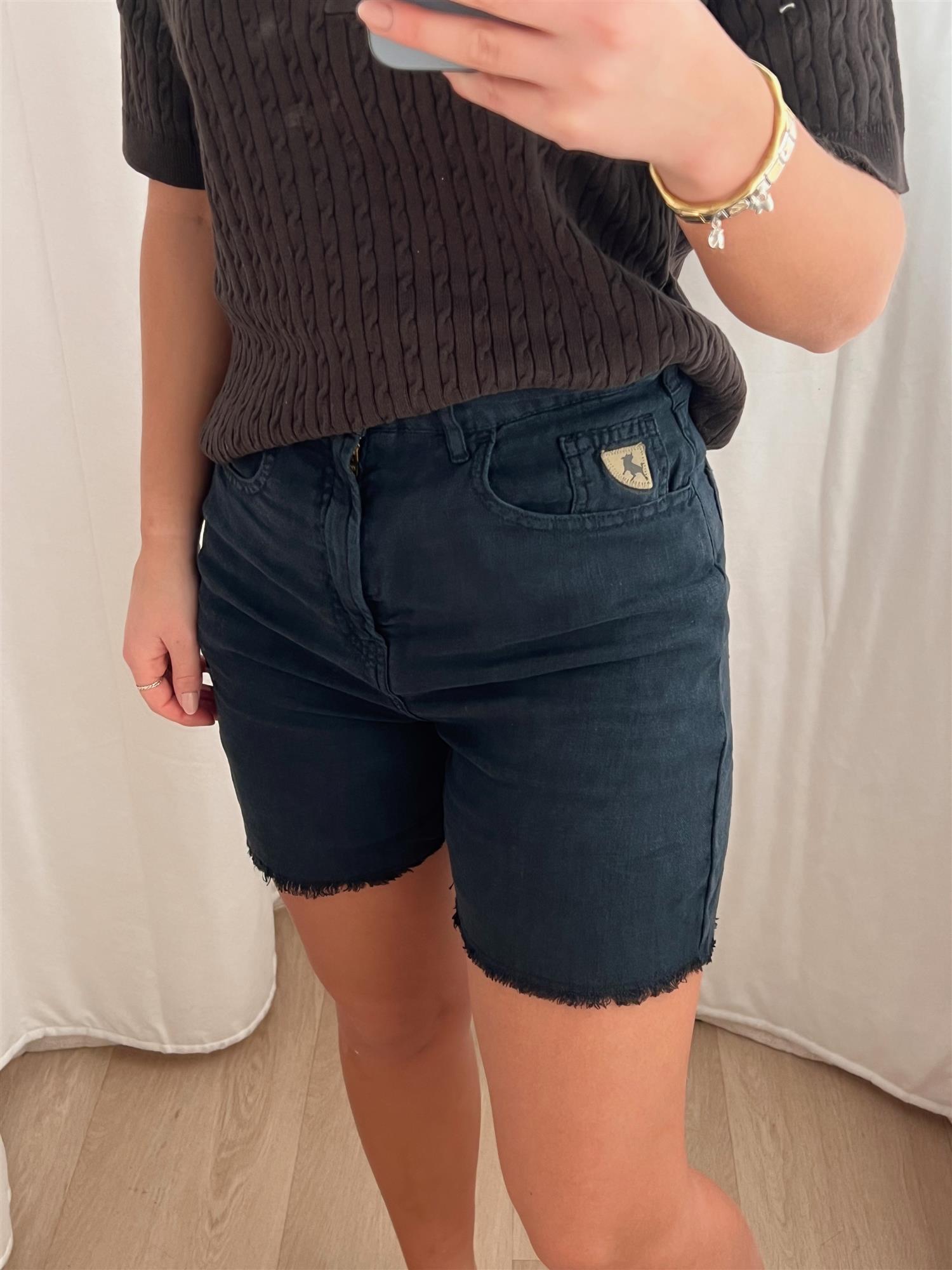Trendy og behagelig i 100% lin. Shortsen lukkes med knepping og glidelås i front. Klassisk fem-lommers modell med lommer bak.