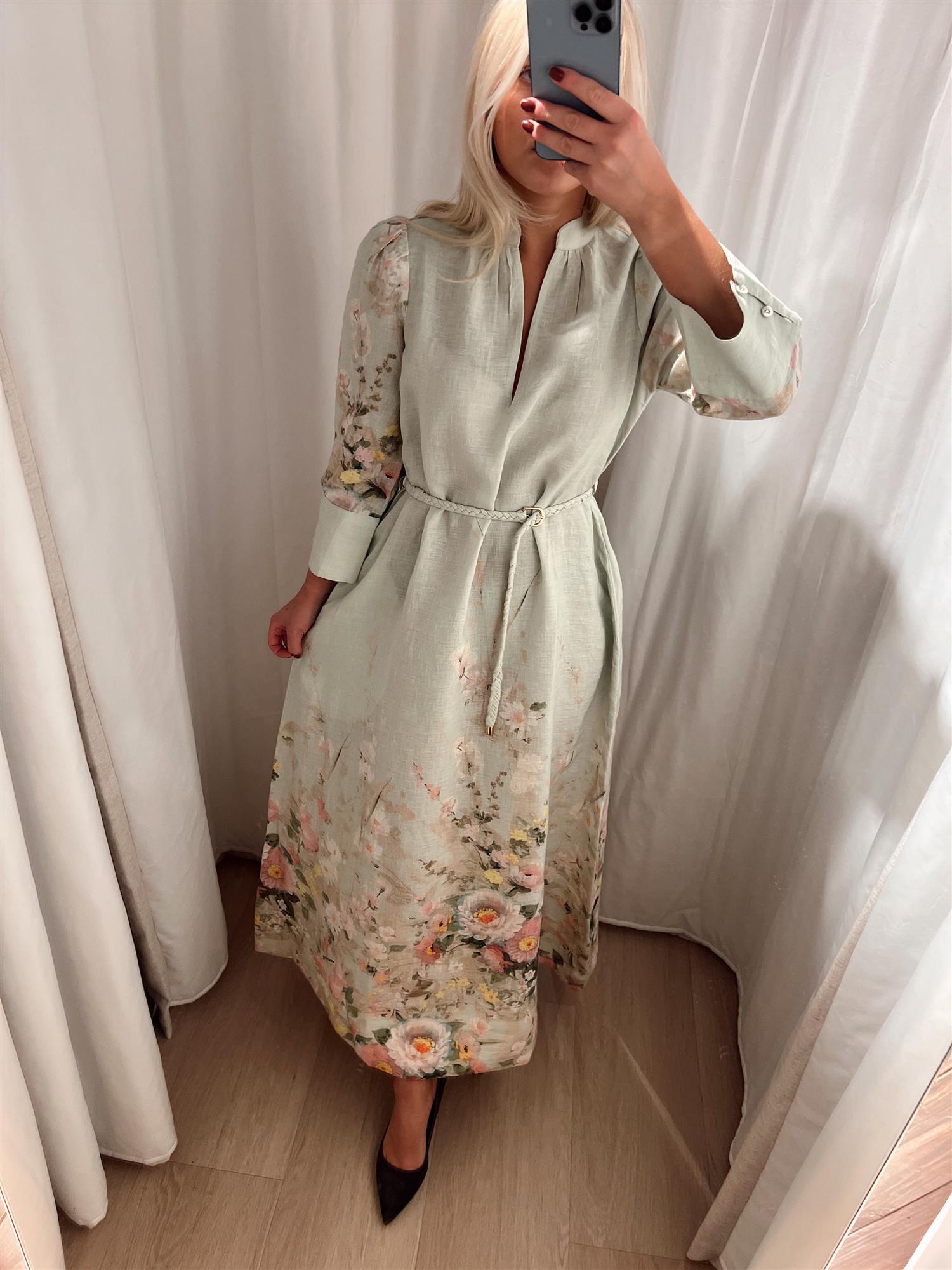 Linen Shift Dress er laget i en eksklusiv og lett kvalitet av OEKO-TEX®-sertifisert lin som føles sval og behagelig mot huden. Kjolen har en midi-lengde og en avslappet midje som gir en flatterende og uanstrengt silhuett.