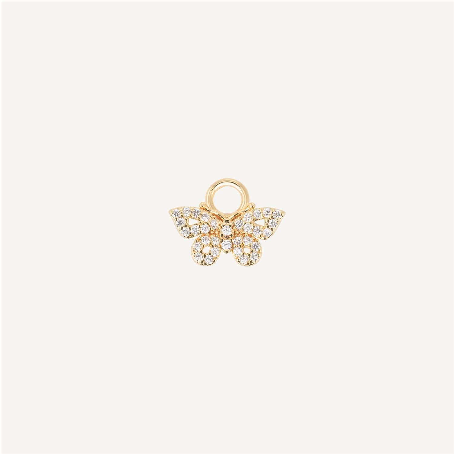 Denne stilrene charmen selges som enkeltprodukt. Den er laget av tykk 18K gullbelagt messing, pyntet med glitrende cubic zirconia-steiner, og har et delikat, linjemønstret design. Perfekt for å kombinere med andre smykker og skape ditt helt personlige uttrykk.