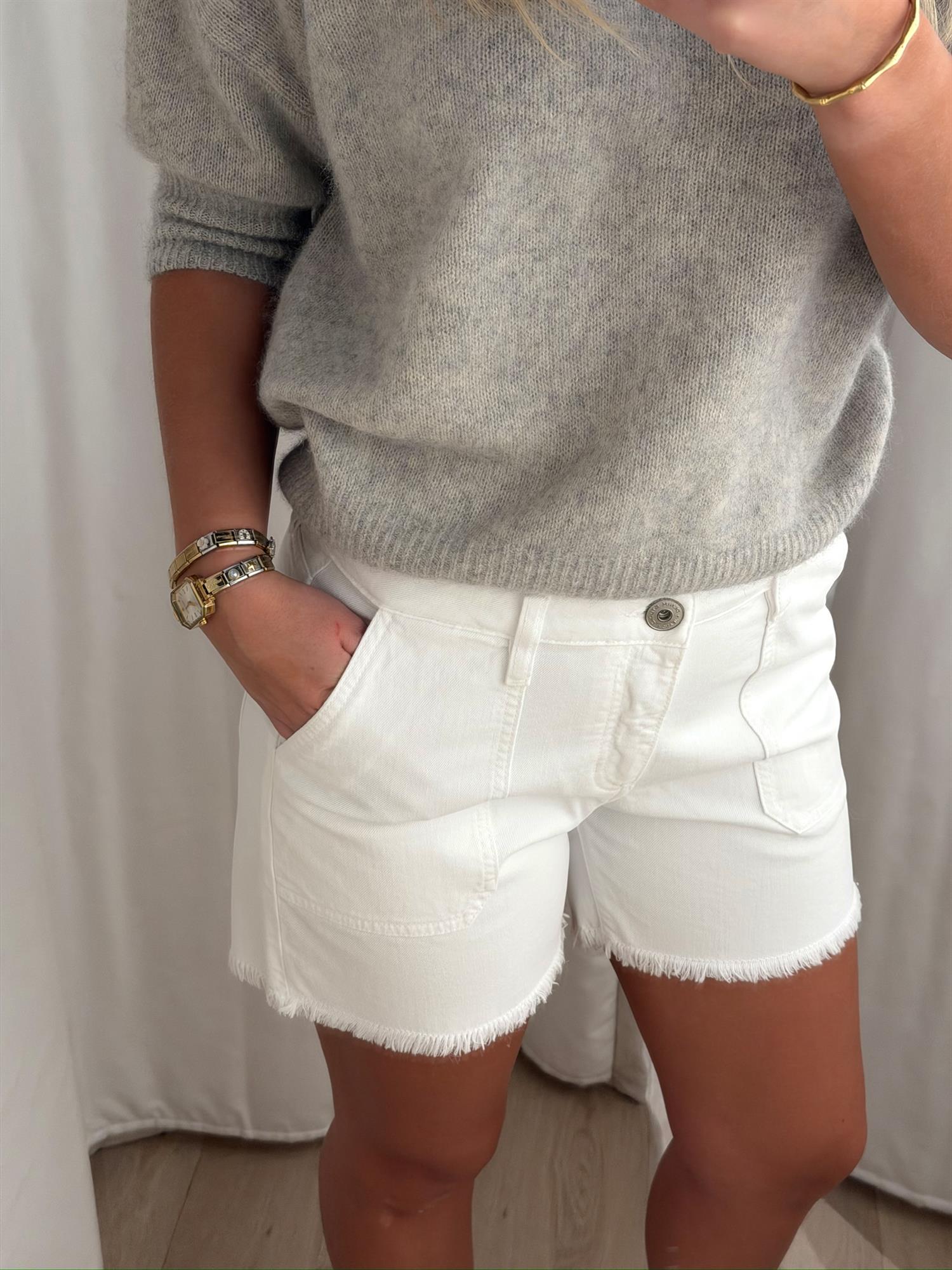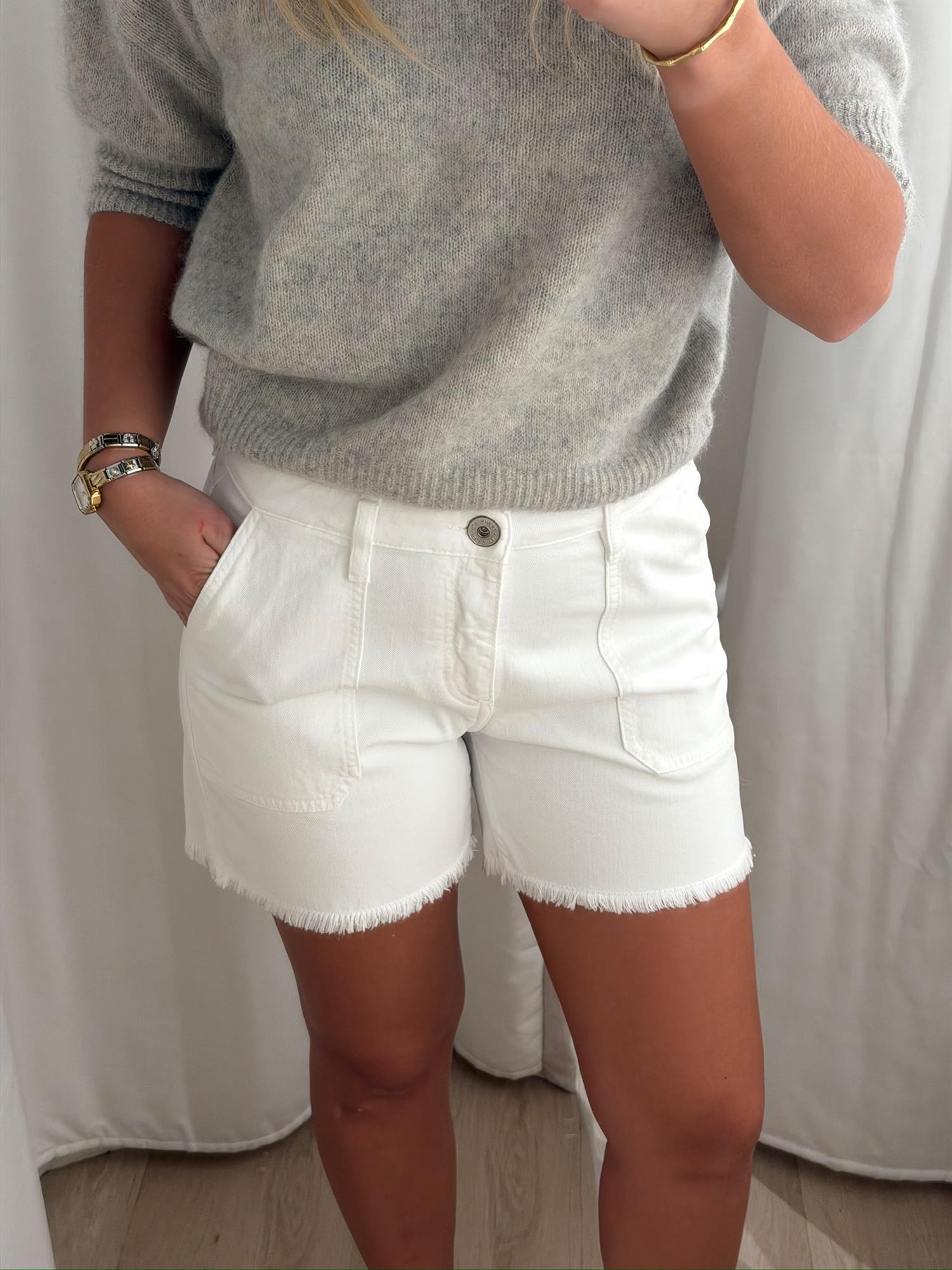 Designet har en klassisk midje, råkant nederst for et trendy preg, samt praktiske lommer foran og bak. Lukkes med knapp og glidelås i front for en tidløs look. En allsidig shorts som passer like godt til en avslappet sommerdag som til en mer pyntet stil – et must-have i garderoben!