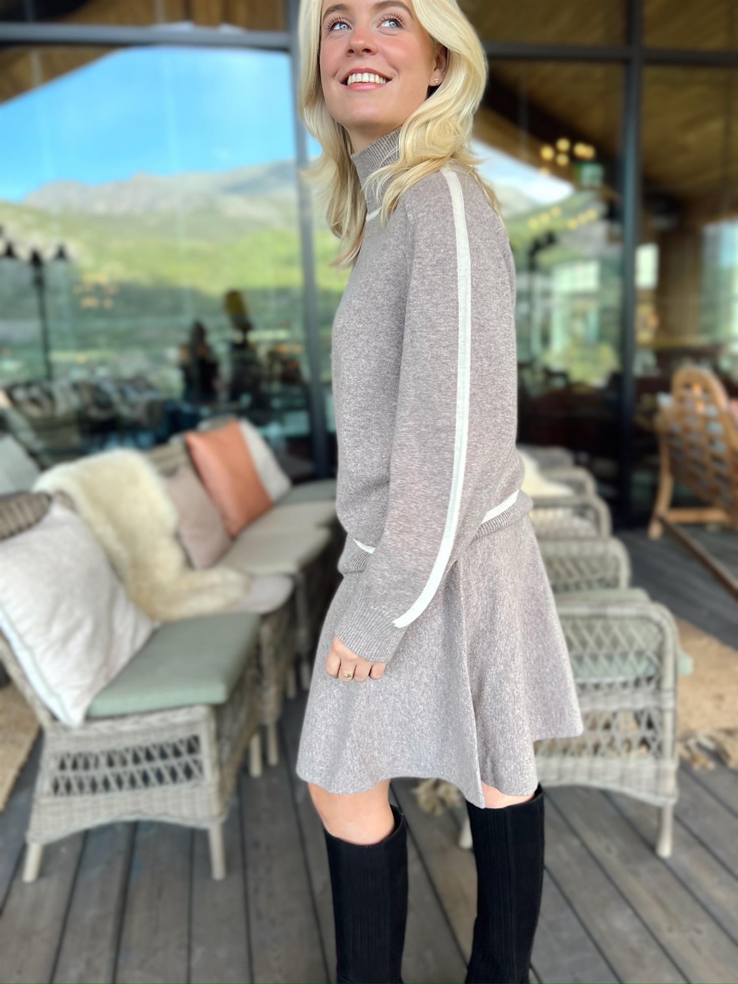 Alicia Skirt fra Rah er et kort skjørt i A-fasong, designet for å gi et feminint og flatterende uttrykk. Strikket i 100% ull er det både varmt og komfortabelt, mens den elastiske ribben i linningen sørger for god passform og bevegelsesfrihet.