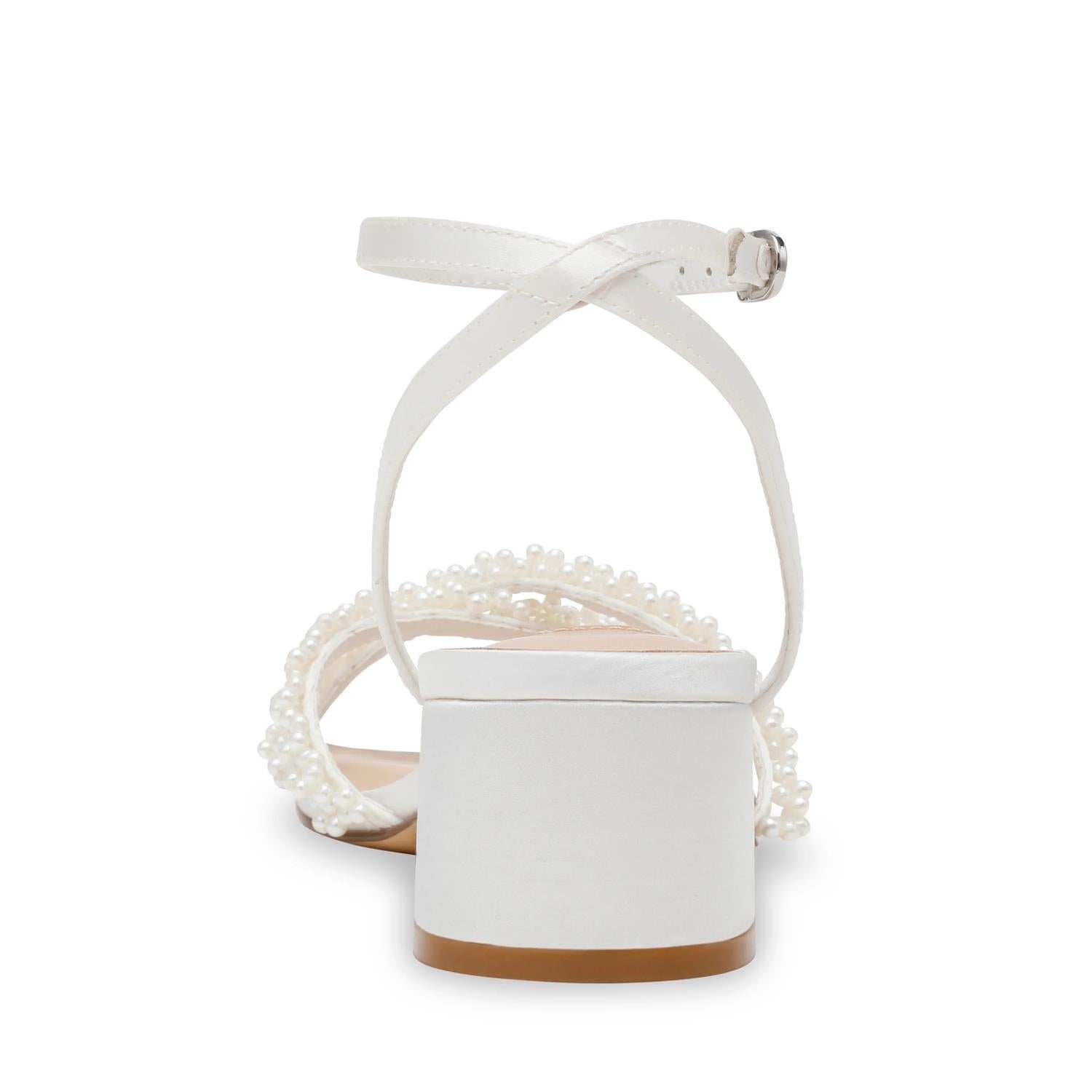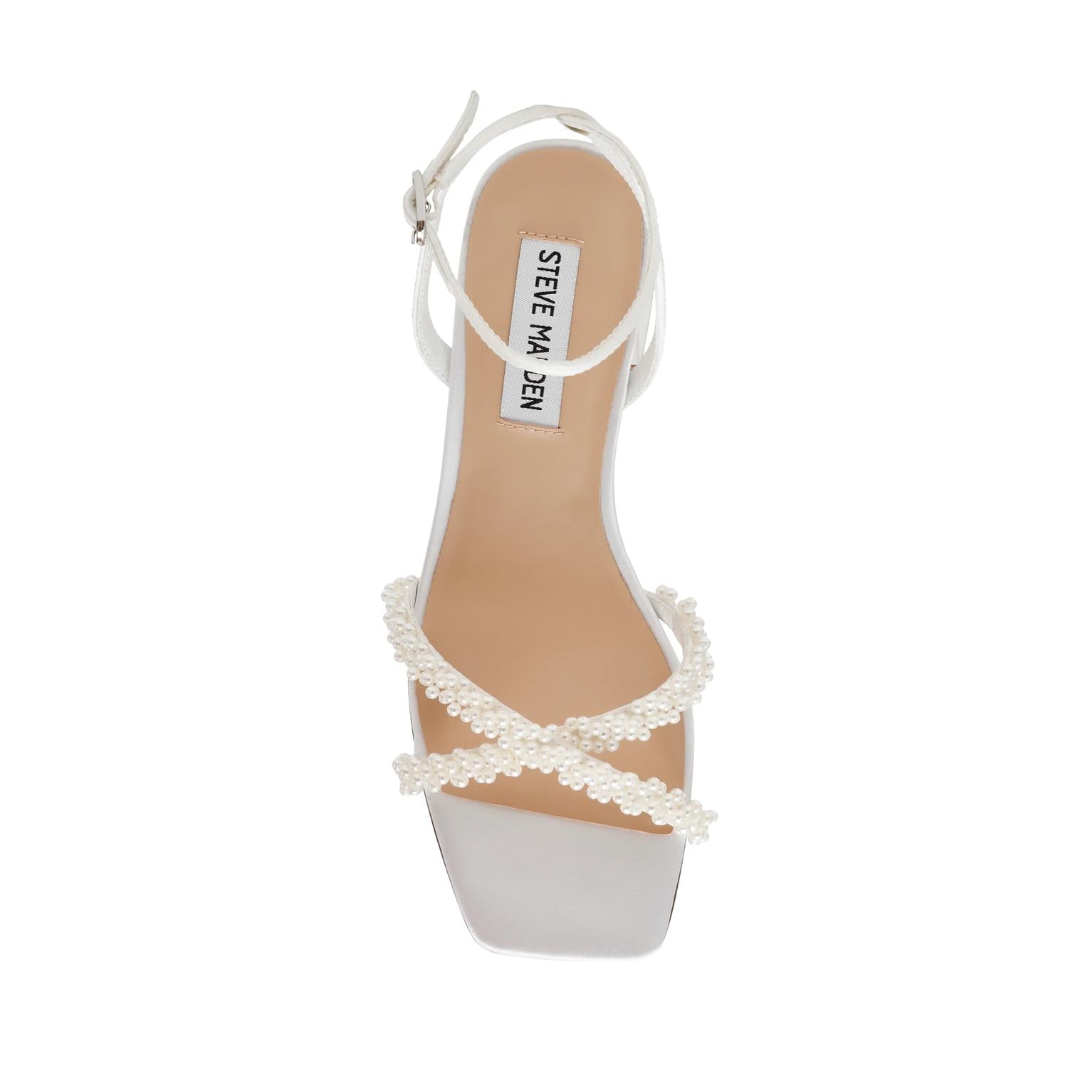 Disse Ivory Satin-sandalene fra Steve Madden kombinerer sofistikert stil med komfort. Den 4,5 cm høye hælen og justerbare spennen gir perfekt passform, mens den syntetiske overdelen sikrer et luksuriøst utseende. Vi anbefaler å bestille en størrelse opp for optimal passform.