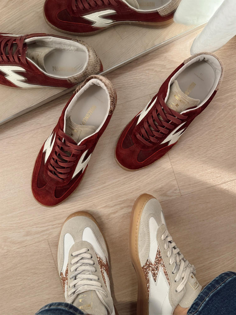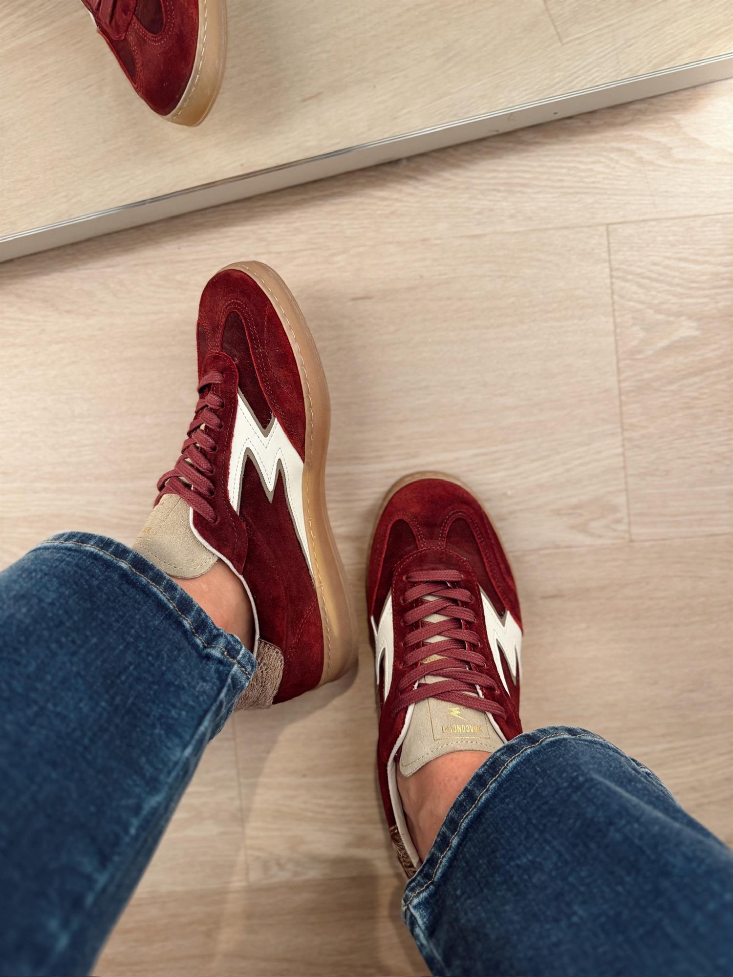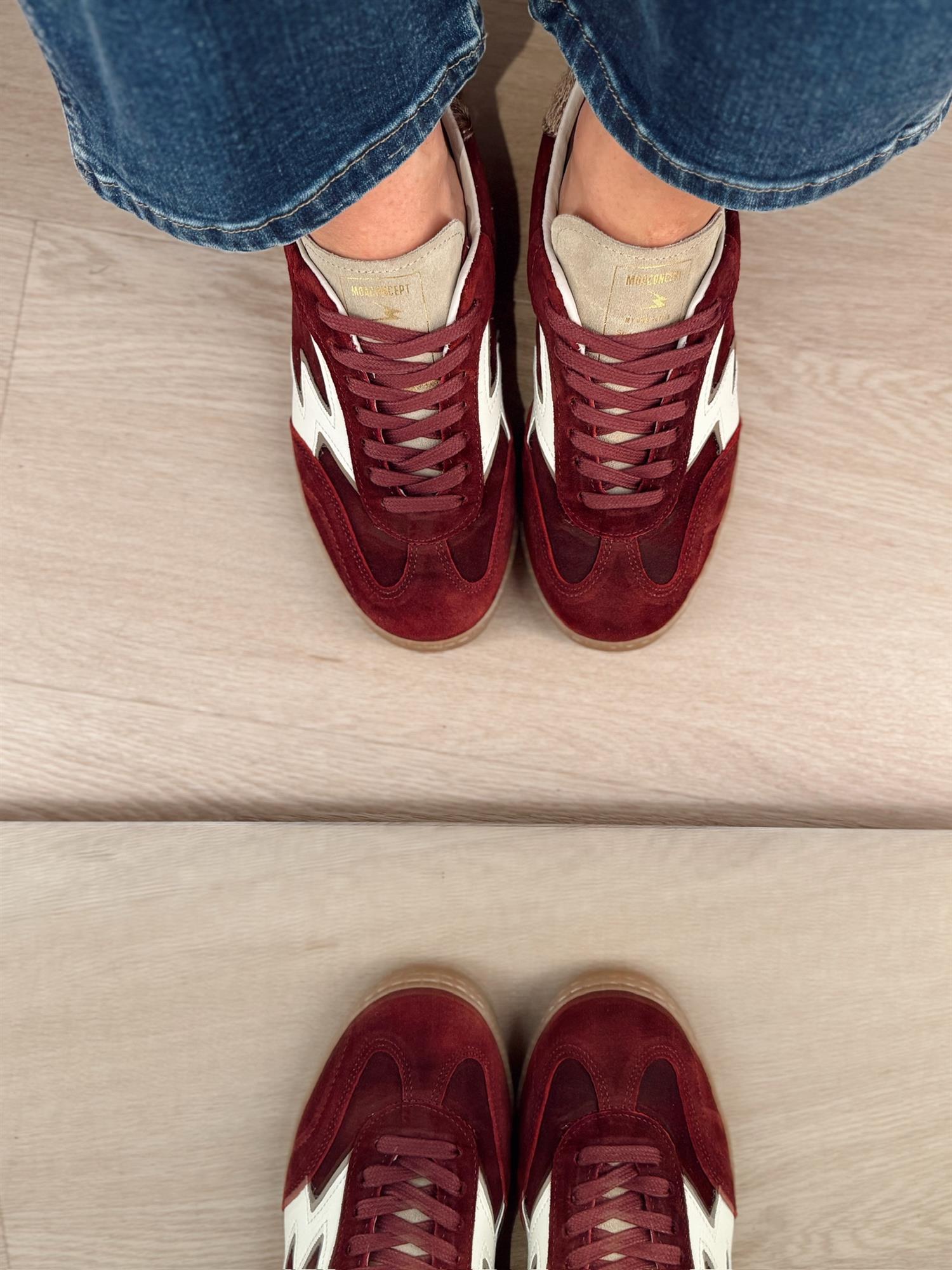 Moa Club Deluxe fra italienske MOA Concept kombinerer sporty edge med sofistikerte detaljer. Laget i behandlet burgunderfarget skinn med kontraster i offwhite semsket skinn – en tidløs og elegant fargekombinasjon som skiller seg ut uten å rope.