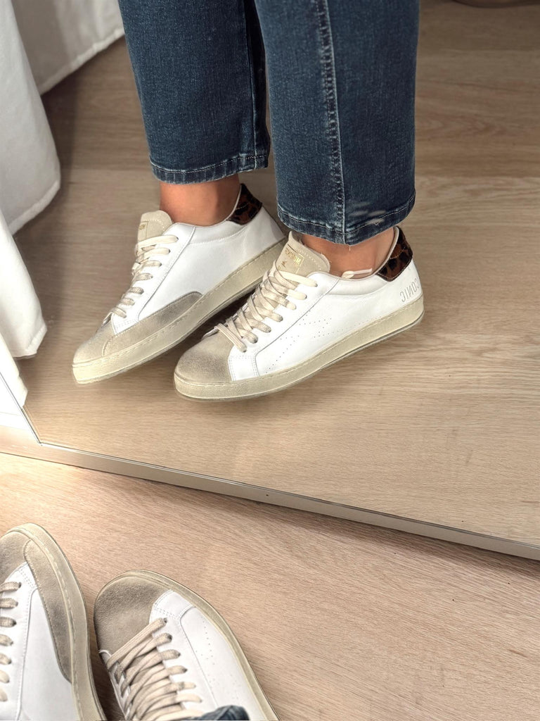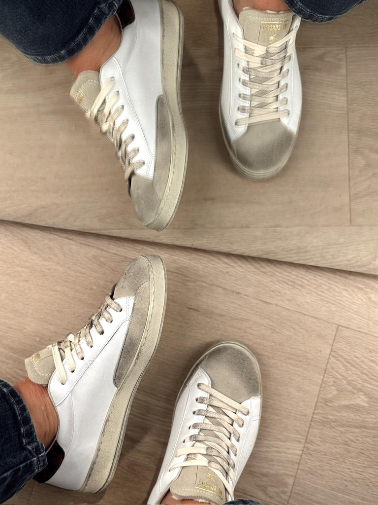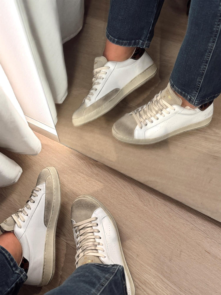 Høstens kuleste sneakers er her! Moa Club Deluxe fra italienske MOA Concept kombinerer sporty edge med luksuriøse detaljer – laget i behandlet skinn med kontraster i offwhite semsket skinn med tøft leopard mønster som gir den perfekte finishen. Den chunky gumsålen på 3,4 cm løfter både stilen og komforten, mens beige bomullslisser og skinninnersåle gjør dem like behagelige som de er freshe. Designet for deg som vil ha noe helt annet enn alle andre. Normal passform.