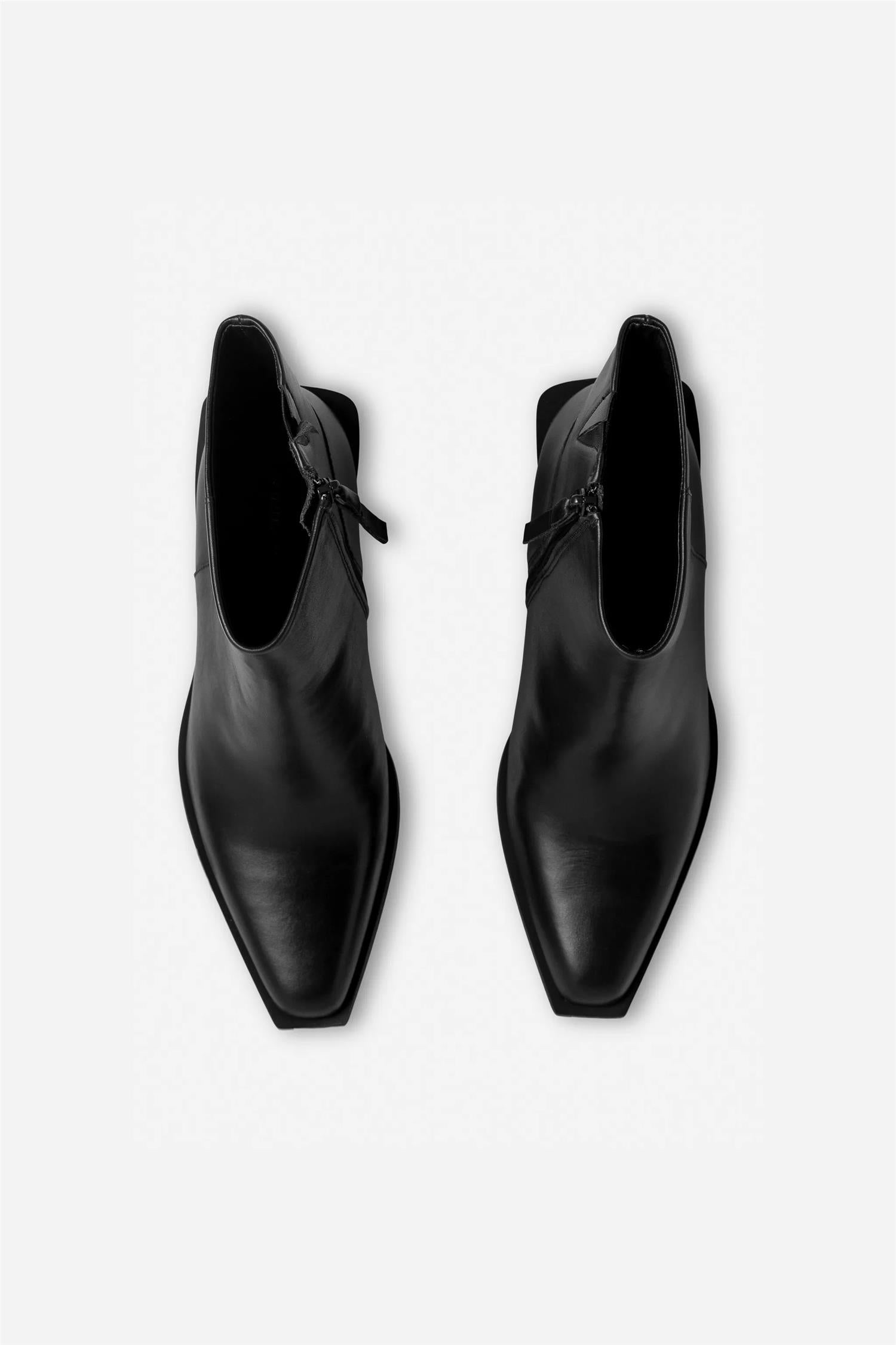 Med en kraftig, kvadratisk hæl og lett firkantet tupp får du et moderne og selvsikkert uttrykk. En diskret glidelås gjør dem enkle å ta på, mens en liten elastisk detalj øverst gir ekstra komfort og fleksibilitet. Perfekte støvletter som setter prikken over i-en på ethvert antrekk.