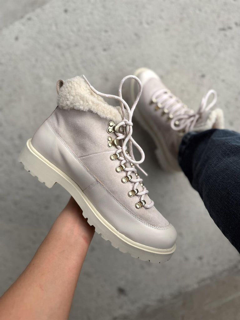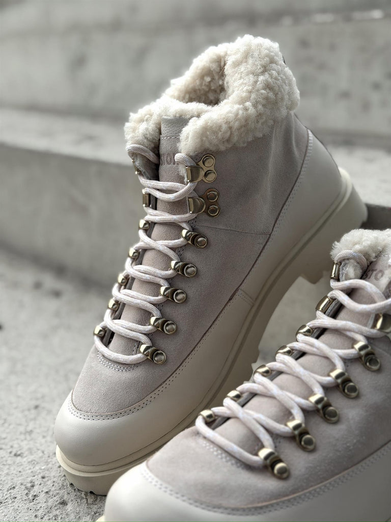 Kule og funksjonelle boots fra Blackstone – inspirert av de klassiske fjellstøvlene. Modellen er laget i mykt, semsket skinn og har en praktisk gummikant som beskytter mot vått føre. Den kraftige sålen gir godt grep, mens det myke shearling-fôret holder deg varm og komfortabel gjennom hele dagen. Et perfekt valg for kalde dager der både stil og funksjonalitet er viktig.