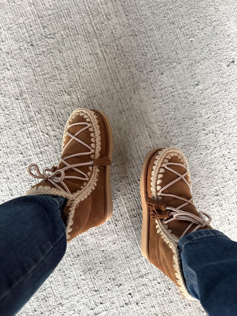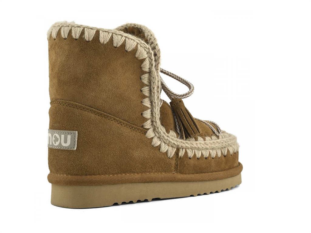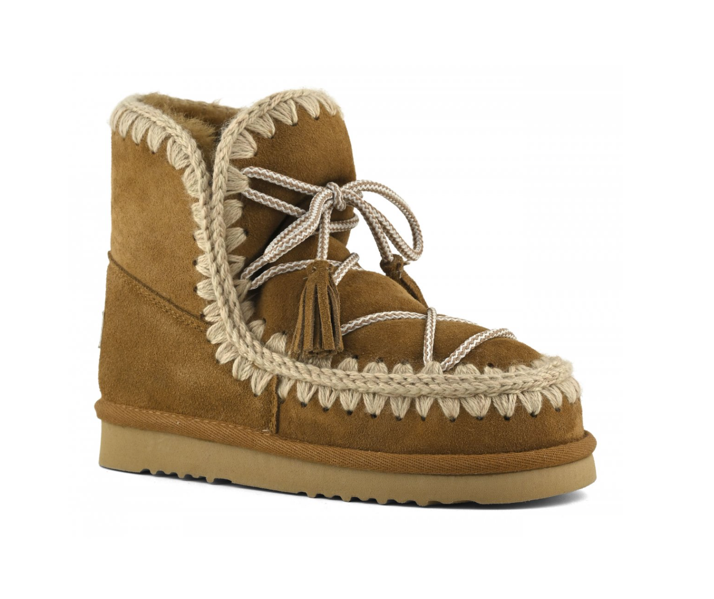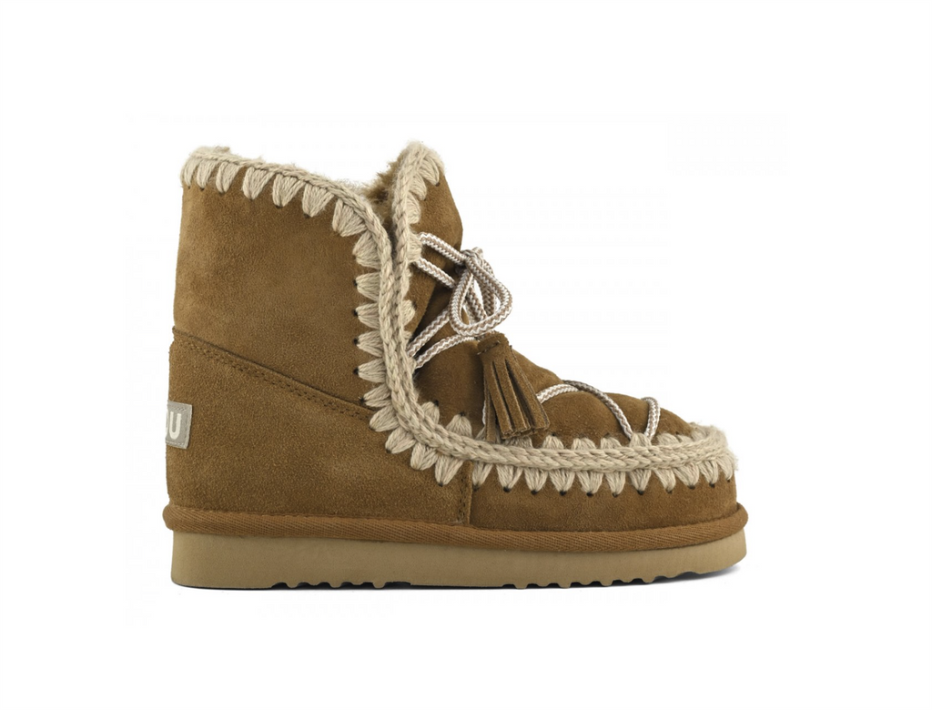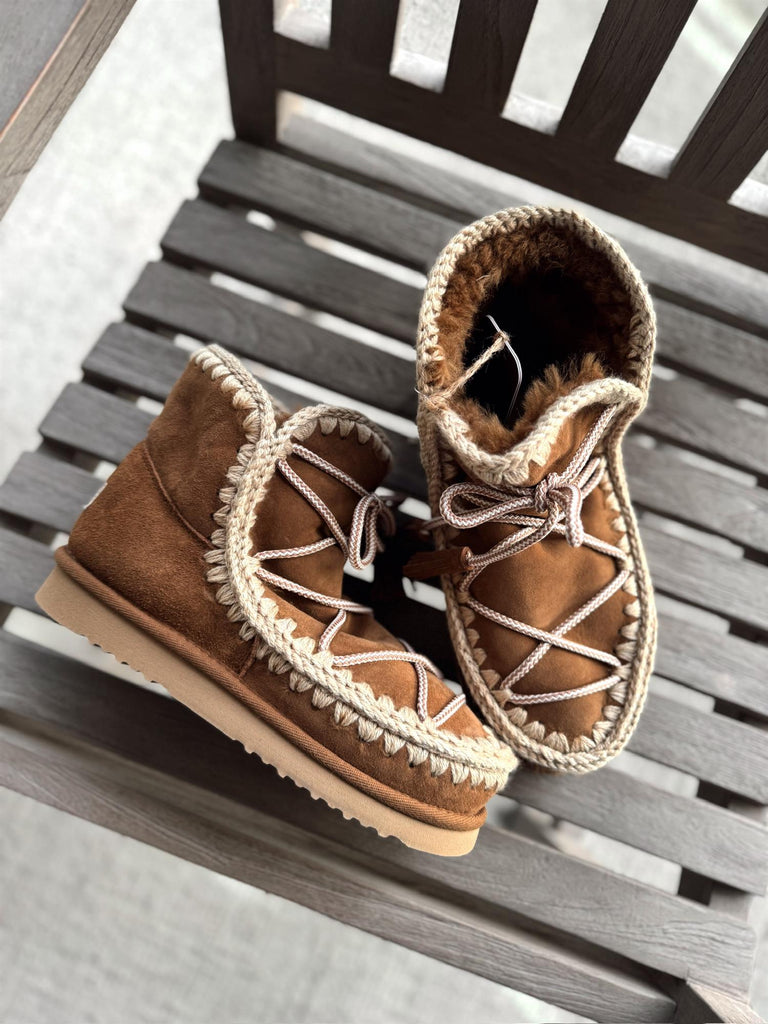 Eskimo 18 Scoubidou Lace fra MOU er en luksuriøs vinterfavoritt som kombinerer tidløst design med førsteklasses komfort. Støvlene er håndlaget i varmt, doblet saueskinn og dekorert med MOUs ikoniske hekledetaljer i ull. En støttende hælkappe og en slitesterk såle i EVA og gummi sørger for god støtte og høy slitestyrke, mens den lekre snøringen gir et unikt uttrykk.