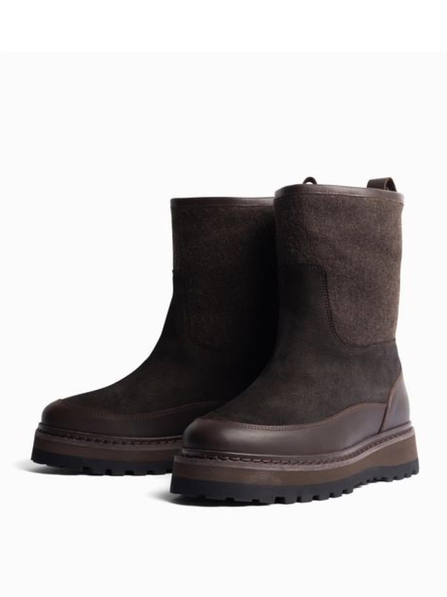 Utsiden kombinerer ull og sertifisert italiensk kvalitetslær, som gir et tidløst og eksklusivt uttrykk. Hver sko er håndlaget i Portugal med fokus på håndverk og holdbarhet, og designet i Oslo for å tåle nordiske forhold.