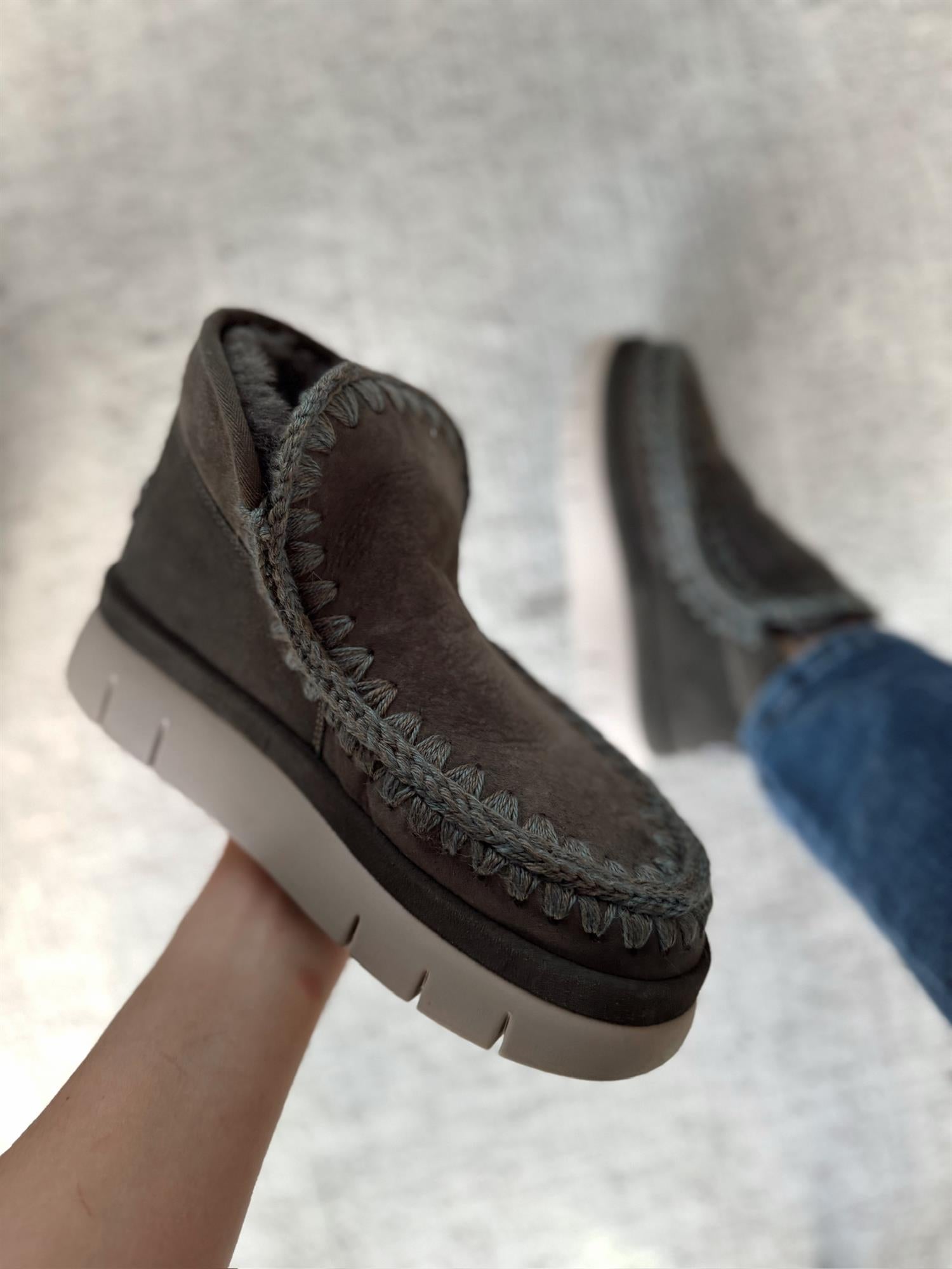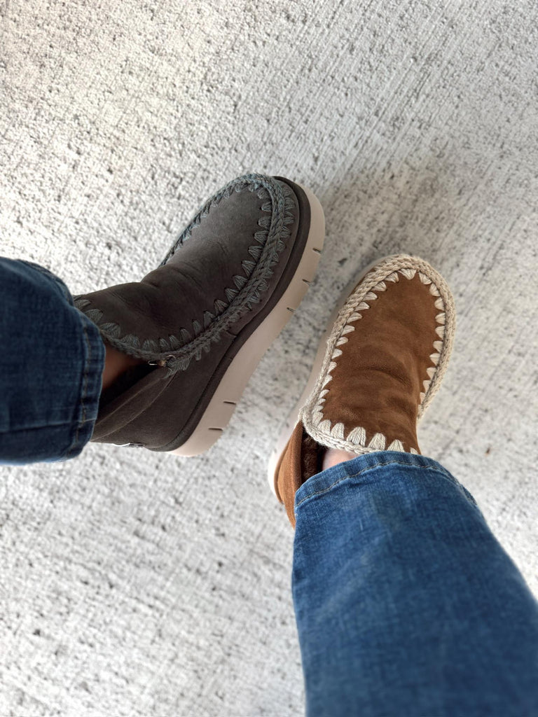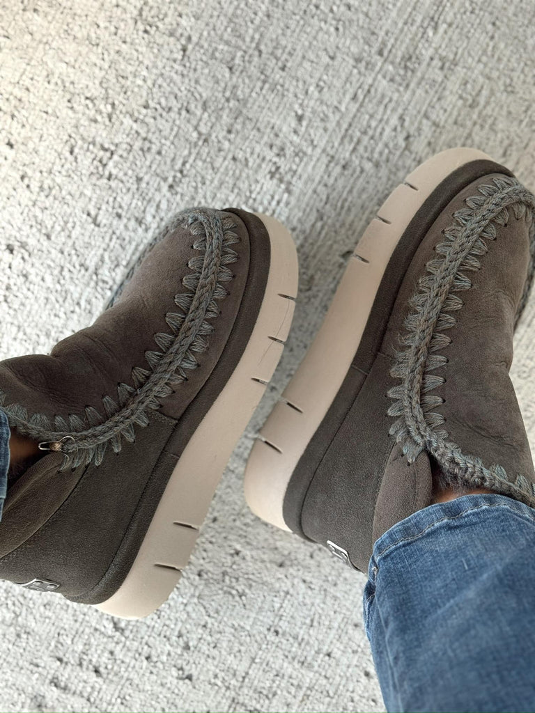 Nyheten Bounce Welt Suede Sneaker fra MOU for FW25 kombinerer eksklusivt håndverk med komfort og moderne design. Sneakeren er håndlaget i varmt, doblet saueskinn og dekorert med MOUs ikoniske hekledetaljer i ull og metallogo for et luksuriøst uttrykk. Den myke innersålen i saueskinn og den fleksible, lette EVA-sålen gir deg en utrolig behagelig følelse gjennom hele dagen.