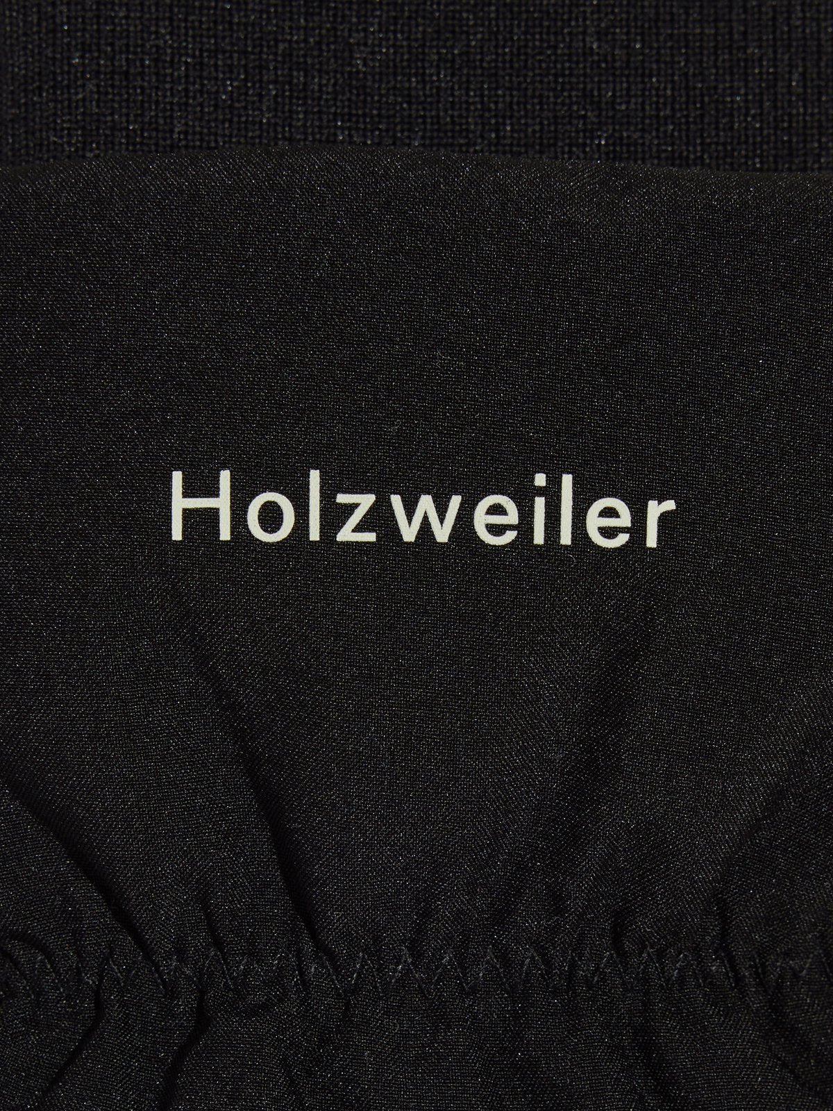 Holzweiler 'Slogen Bubble Mittens' er luksuriøse boblevotter fylt med dun og fjær som gir optimal varme og komfort. Vottene er designet med en elastisk ribbekant ved åpningen, som sikrer en god passform. De er detaljert med et trykt Holzweiler-logo på håndleddet for en stilren finish. Med 10K/10K vanntett DWR-behandling er disse vottene både vannavstøtende og værbestandige, noe som gjør dem perfekte for kalde og fuktige vinterdager.