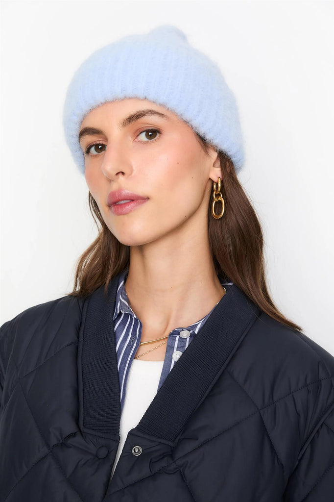 Ayla Beanie er en tykk og varm lue i en blanding av alpakka og ull, perfekt for høst og vinter. Den har brettet kant som gir et stilig og moderne uttrykk.