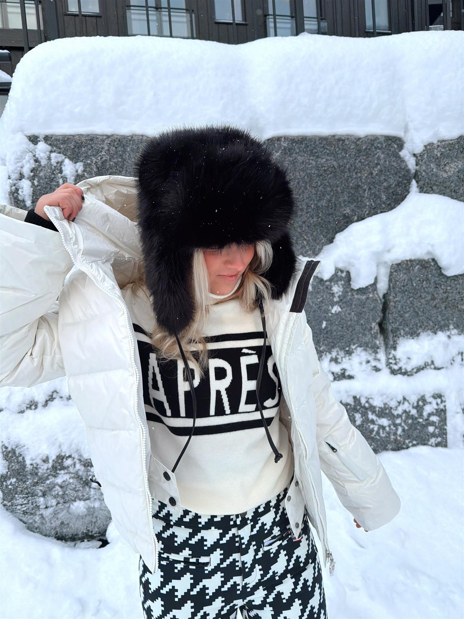 Møt vinterens favoritt – Faux Fur Trapper Hat. Denne luksuriøst myke luen kombinerer varme og stil med sin dramatiske, fluffy silhuett. Perfekt for kalde dager, rolige spaserturer og snøfylte eventyr – den tilfører ethvert antrekk et hint av glam samtidig som den holder deg god og varm. Et statement-tilbehør som gjør vinteren litt mer spennende.