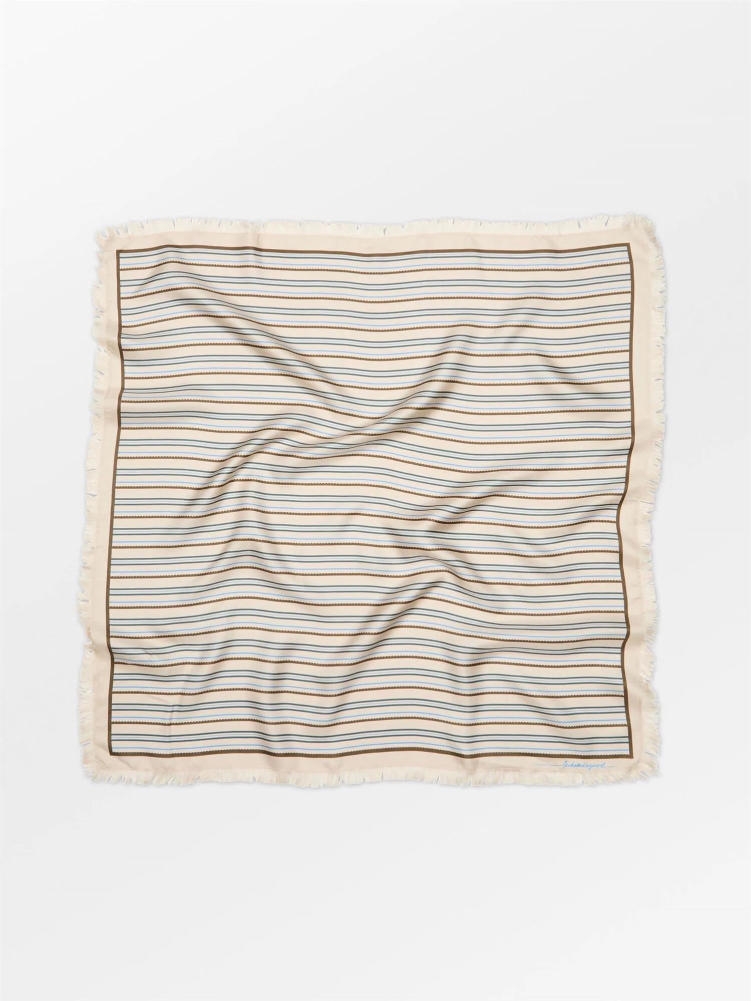 Scallopia Striped Sia Scarf fra Becksöndergaard er et stilrent, kvadratisk skjerf i 100 % silke, med mål på 65 x 65 cm. Det klassiske stripemønsteret gir et tidløst og elegant uttrykk som passer like godt til hverdagsbruk som til mer formelle anledninger.