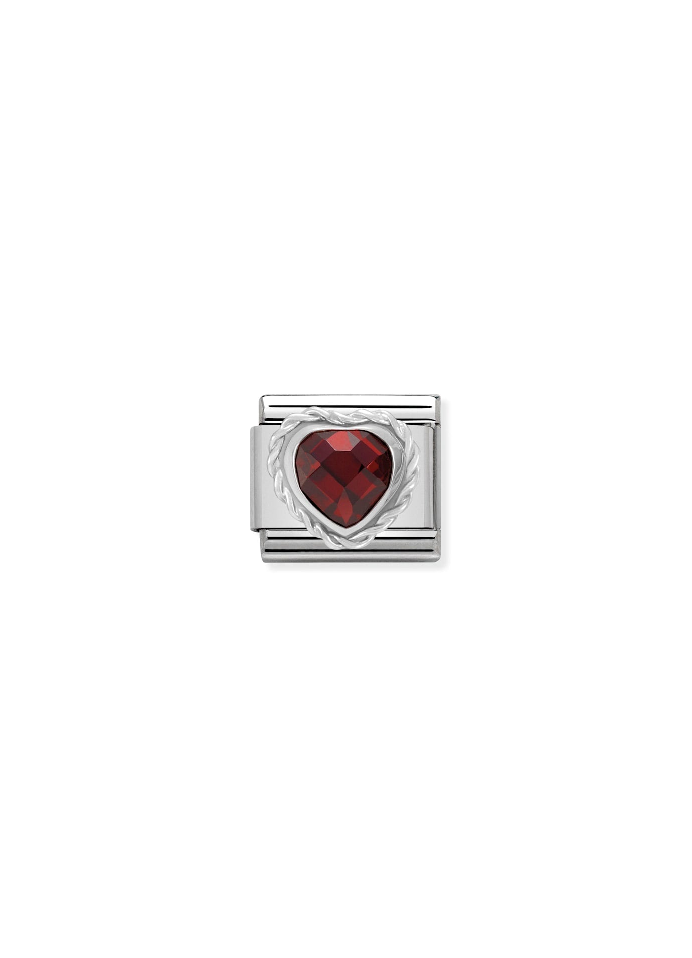 Nomination Italy - Comp. CL HEART FACETED CZ in stainless steel E 925 sterling silver twisted setting RED - Stainless Steel