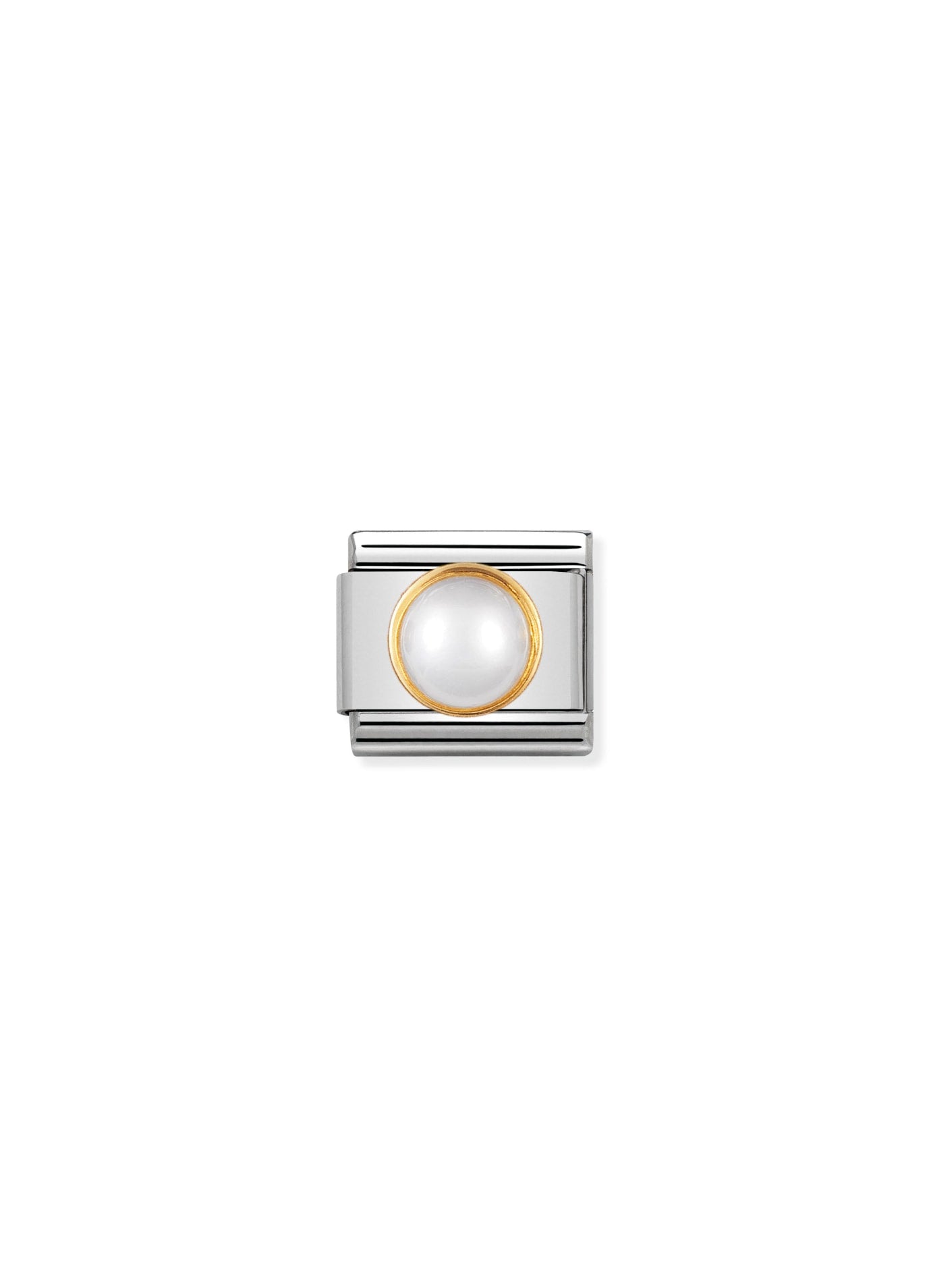 Nomination Italy - COMPOSABLE Classic ROUND STONES in stainless steel with 18k gold WHITE PEARL - Stainless Steel