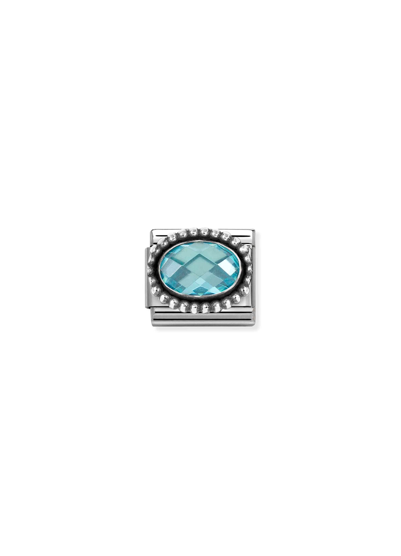 Nomination Italy - Composable FACETED CZ, steel with OXIDIZED OVAL BEADED RICH SETTING 925 silver LIGHT BLUE - Stainless Steel