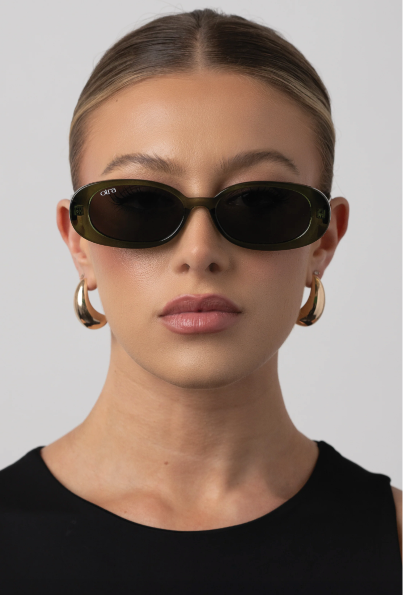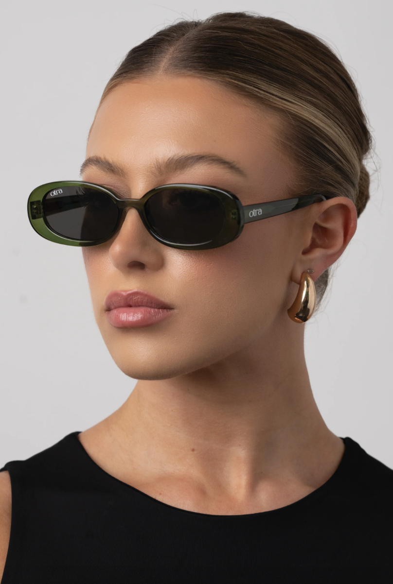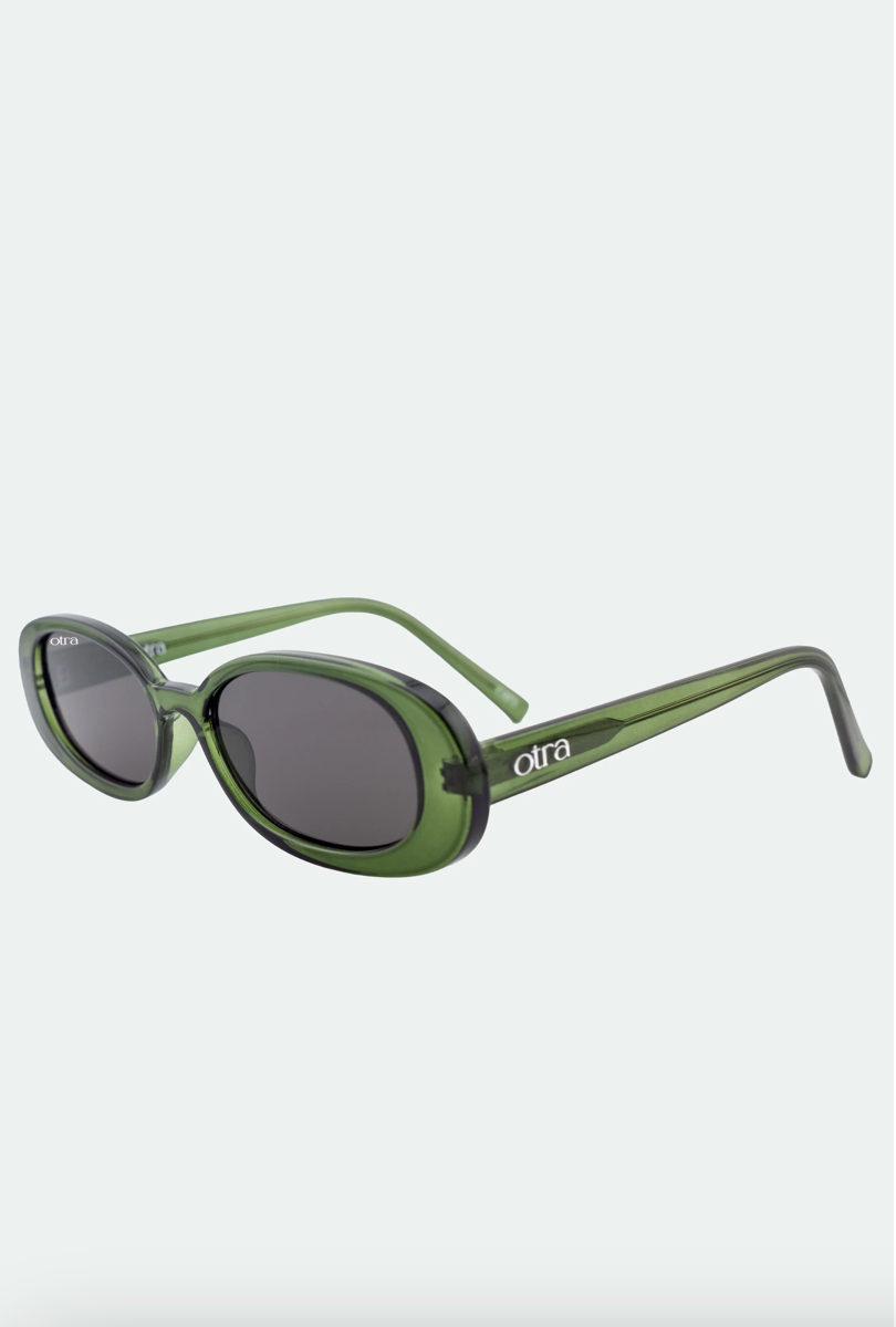 Gina Matcha er en etterspurt modell fra Otra Eyewears aller første kolleksjon. Solbrillene har en oval ramme i transparent matcha-farge og røykfargede linser i kategori 3, som gir 100% UV-beskyttelse. De leveres med en beskyttende vegansk oppbevaringspose. Størrelse: Bredde 141 mm, høyde 36 mm.