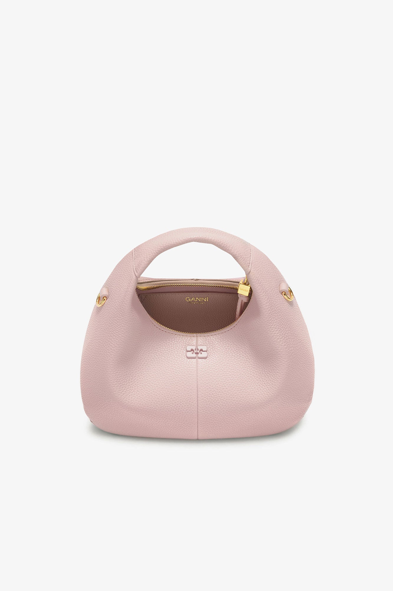 Mini Hobo-vesken fra GANNI kombinerer et moderne uttrykk med praktiske detaljer. Vesken har en elegant kornet tekstur og er designet med topphåndtak samt en justerbar og avtakbar skulderstropp, slik at den enkelt kan bæres både i hånden og over skulderen. Glidelåslukkingen sørger for trygg oppbevaring, mens det romslige hovedrommet gir plass til det viktigste i hverdagen.