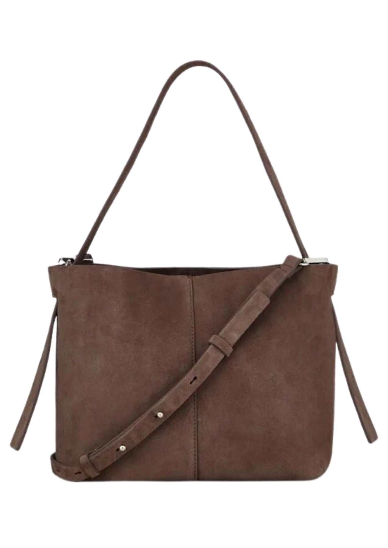 Suede Fraya Small Bag er en tidløs veske i mykt semsket skinn som kombinerer eleganse og funksjonalitet. Vesken lukkes enkelt med magnetknapp og er designet med fire praktiske rom samt en innvendig glidelåslomme som holder orden på småtingene dine. Den justerbare stroppen gjør at du kan bruke den både som crossbody og skulderveske – og ønsker du et mer minimalistisk uttrykk, kan stroppen tas av.