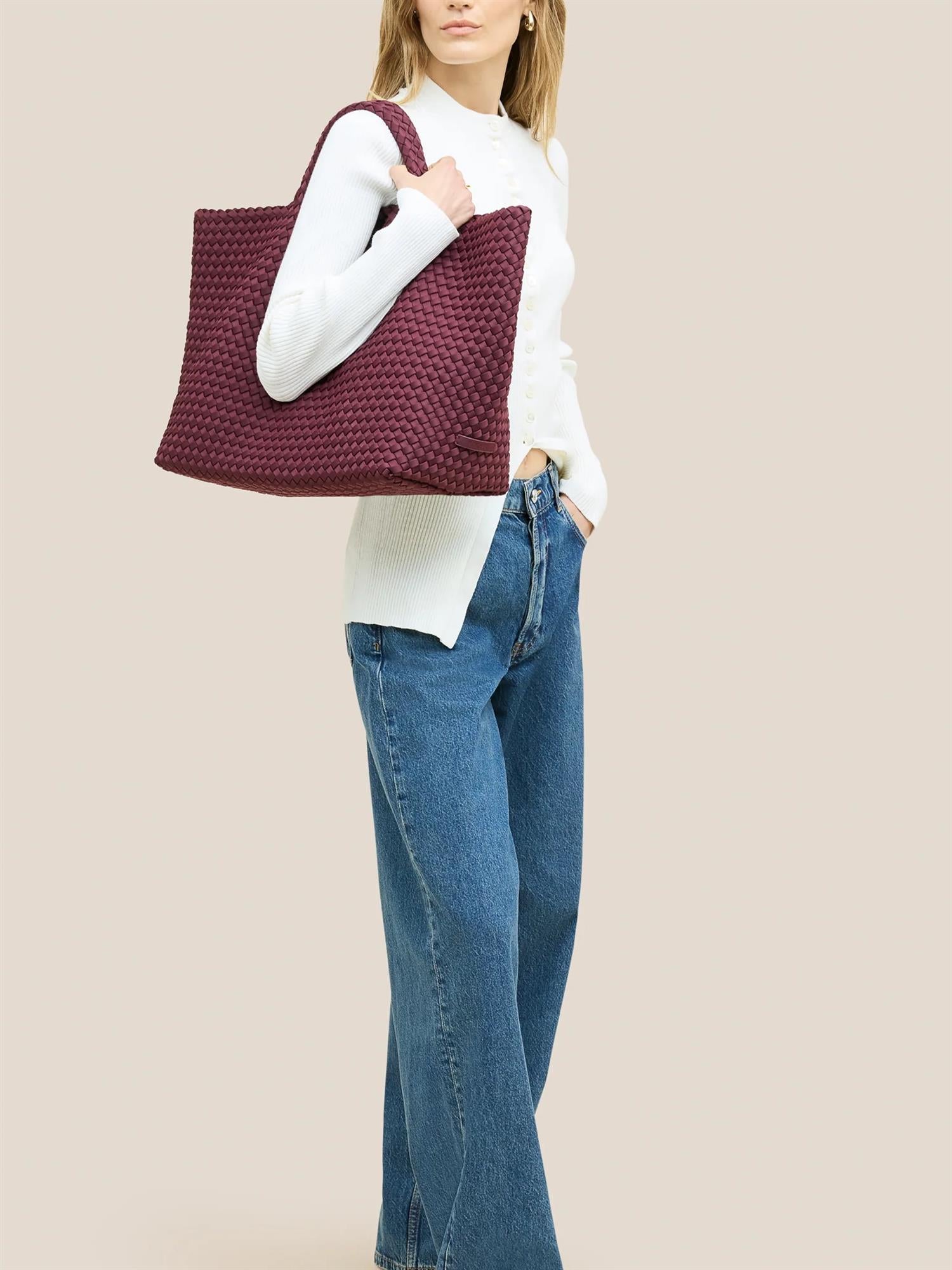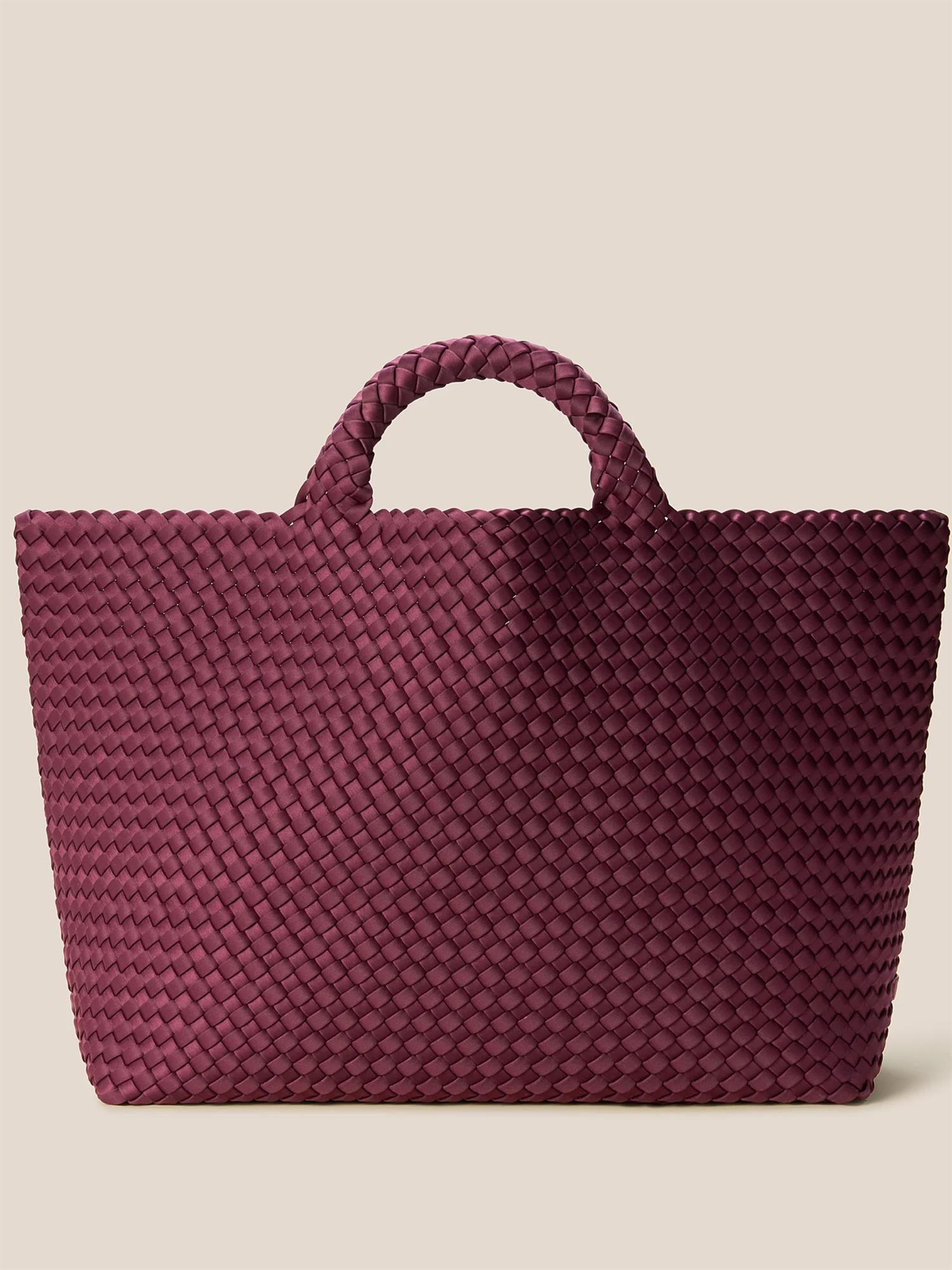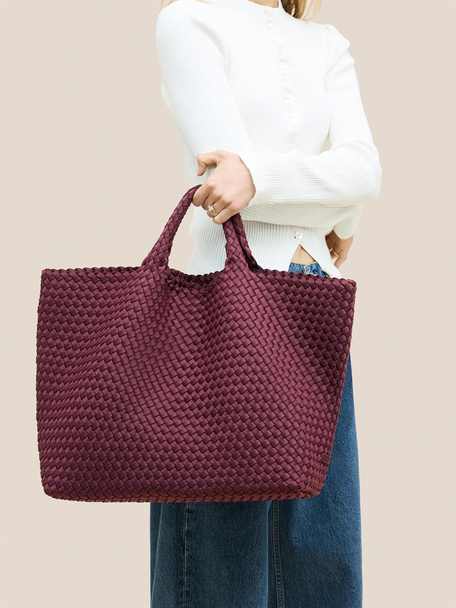 Oppdag den perfekte kombinasjonen av stil og funksjonalitet med St. Barths Large Tote fra Naghedi NYC. Denne romslige og elegante vesken er laget av myk, flettet neopren, som sikrer både holdbarhet og et sofistikert uttrykk.
