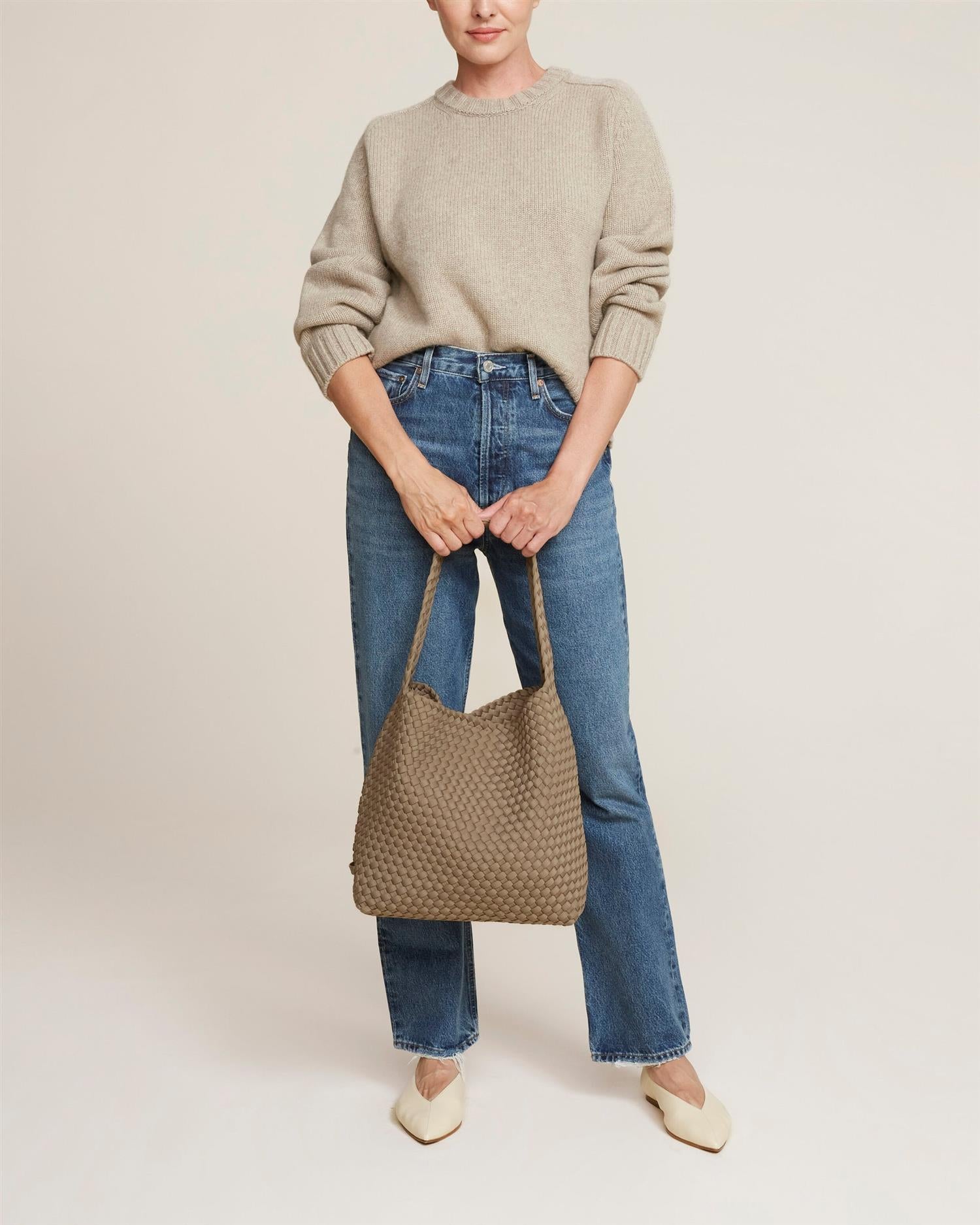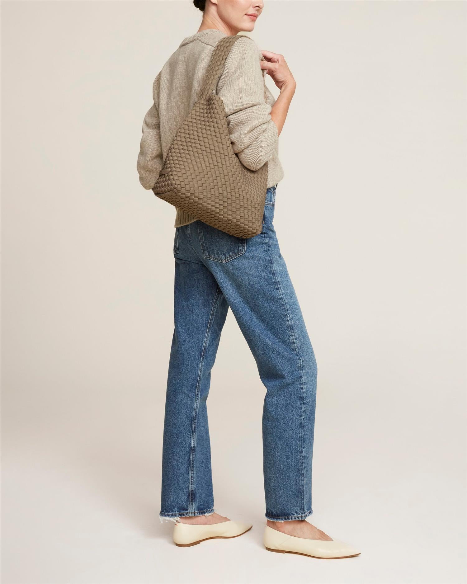 Nomad Medium Hobo er en romslig og ultralett veske håndflettet i signaturmaterialet neopren. Den myke, avslappede fasongen og den brede skulderstroppen gjør den perfekt til bruk gjennom hele dagen – like fin på jobb som i helgen.