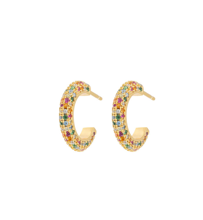 Et lekent blikkfang til ørene! Small Chunky Hoops Multi kombinerer chunky design med fargerike detaljer – perfekte for å løfte både hverdagsantrekket og festlooken. Øredobbene er utsmykket med glitrende cubic zirconia-stener i ulike farger som gir et friskt og glamorøst uttrykk.
