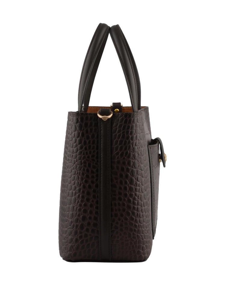 The Bride Handbag er en elegant og funksjonell veske som løfter ethvert antrekk. Den eksklusive krokopregede overflaten i ekte kuskinn gir et raffinert uttrykk, samtidig som vesken er praktisk i hverdagen.