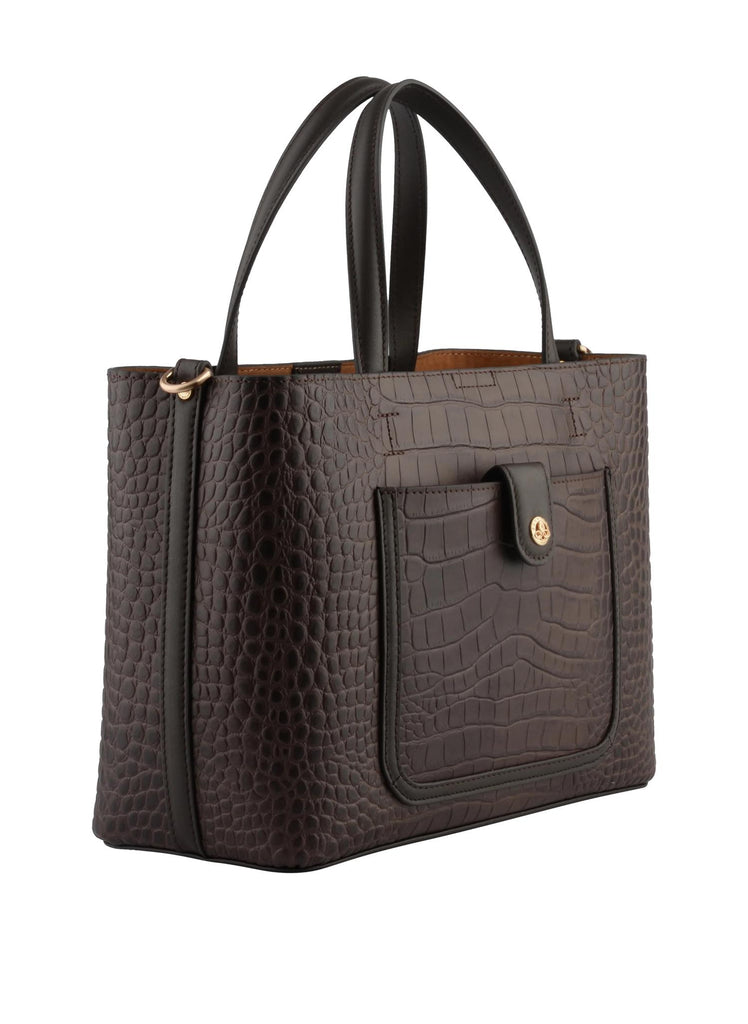 Med et romslig hovedrom, glidelåslukking og slitesterkt syntetisk fôr, har du god plass til alt du trenger – både til jobb, middag eller shopping. Vesken bæres elegant i hånden og er like tidløs som den er stilfull.