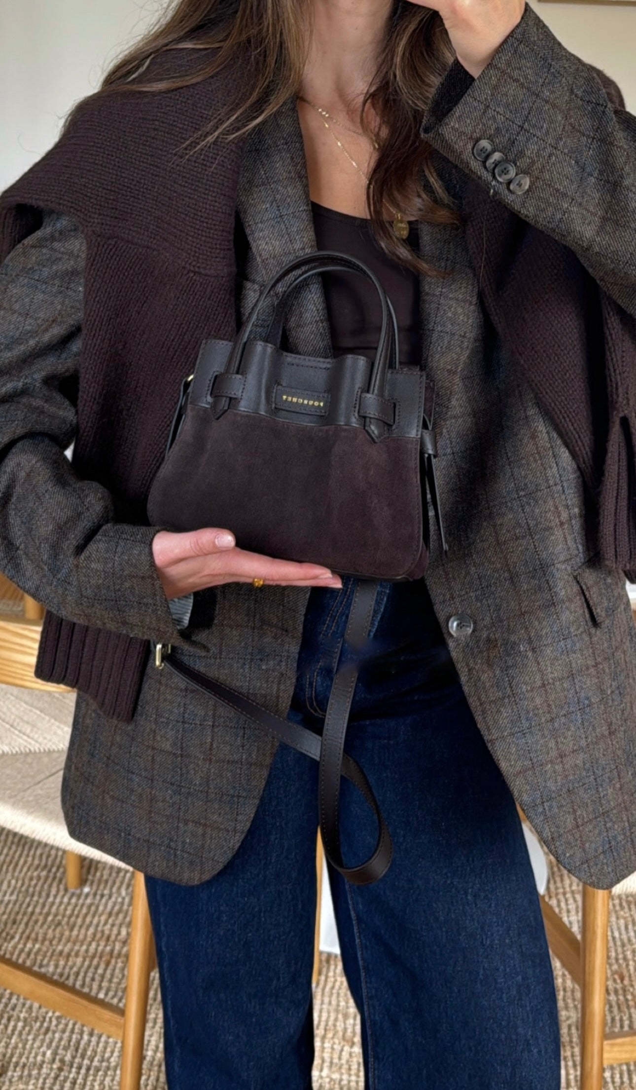 En elegant og tidløs veske laget av ekte kuskinn. Den glatte overdelen i skinn kombineres med en nedre del i semsket skinn, som gir designet en vakker kontrast mellom tekstur og glans. Vesken har ett hovedrom, magnetlukking og syntetisk fôr.
