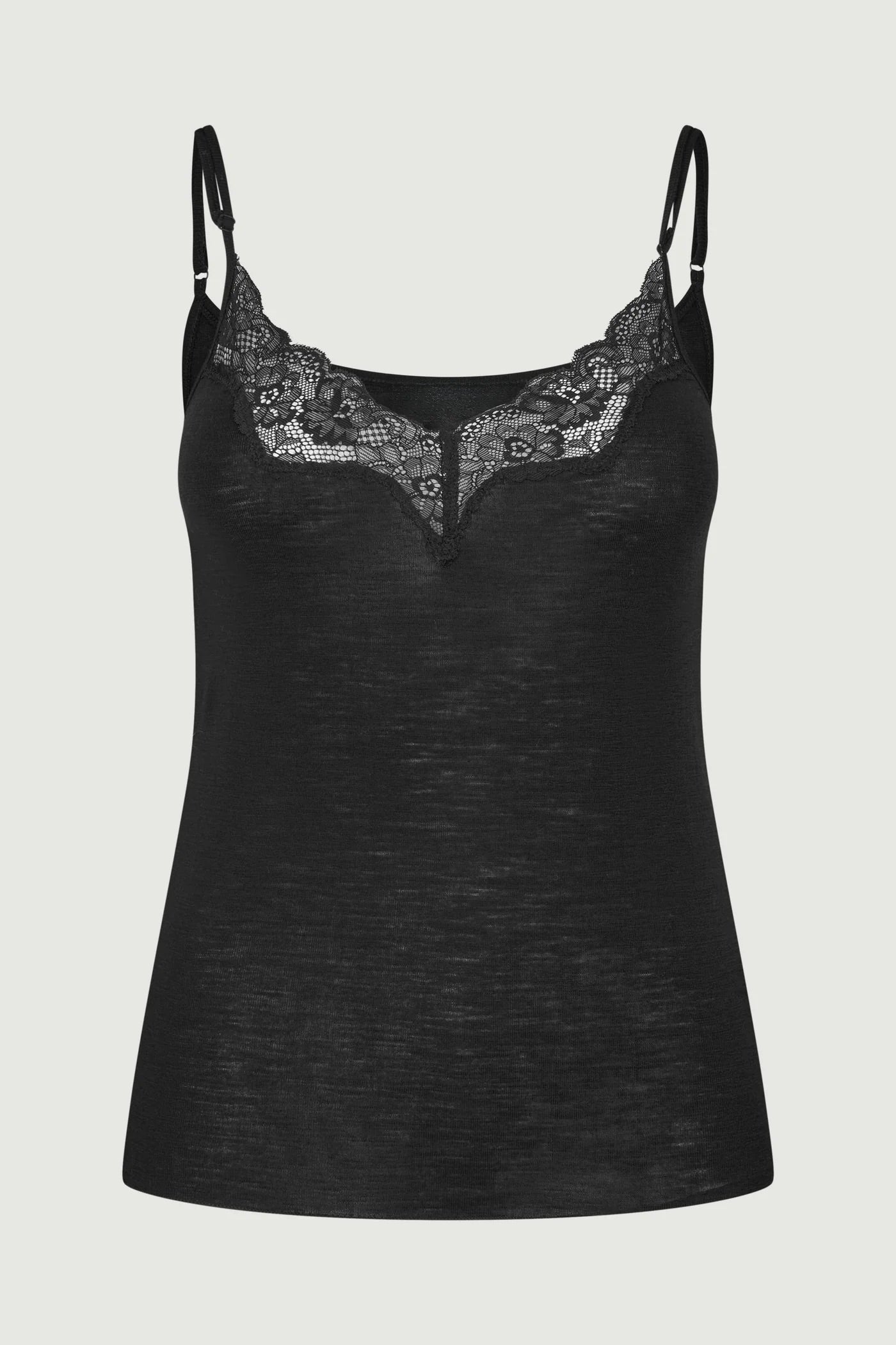 Pixi topp er mykt figursydd i 100 % superfin merinoull, med justerbare stropper og delikat blondedetalj foran. Den lette, pustende ullkvaliteten regulerer naturlig temperatur og motvirker lukt, noe som gjør Pixi til et raffinert basisplagg for enkel lag-på-lag-styling året rundt.