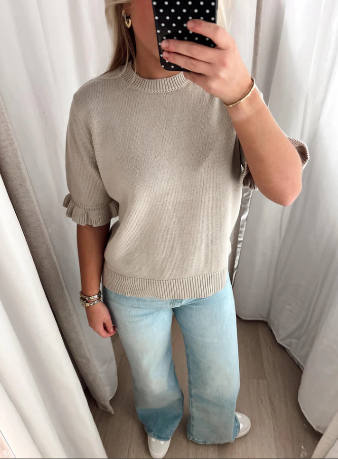 Colette Pullover er en stilren genser laget av 100% bomull, perfekt for en avslappet og komfortabel stil. Den sandfargede tonen gir et tidløst preg som enkelt kan styles med ulike antrekk.