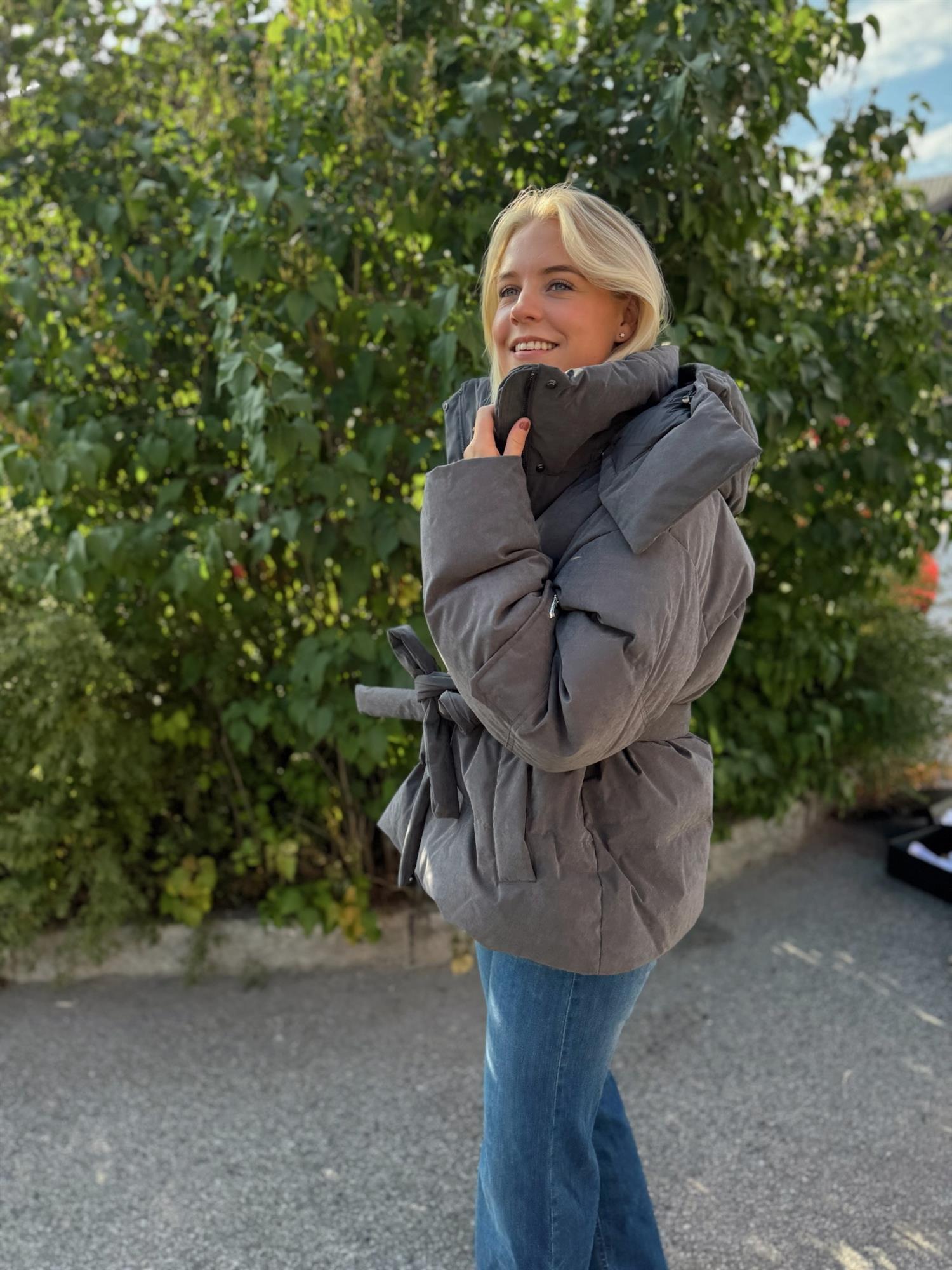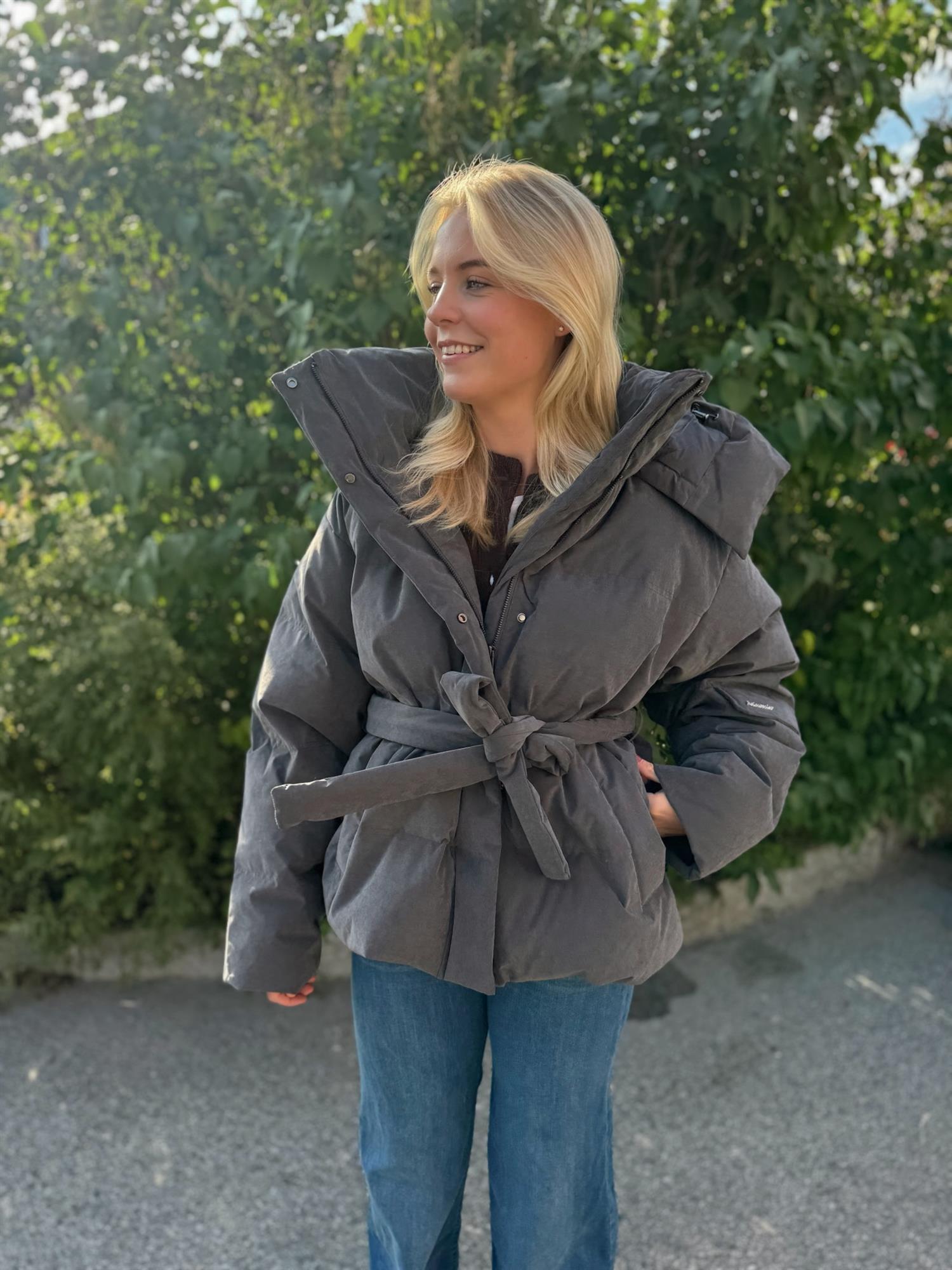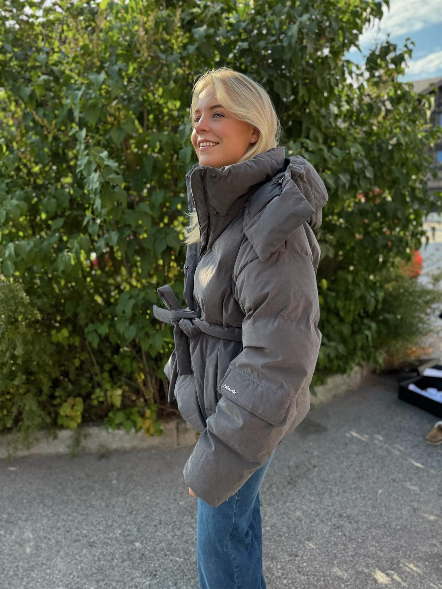 Praktiske detaljer inkluderer sidelommer med glidelås, en innvendig lomme og en ekstra lomme på ermet som tilfører et urbant preg. Nederst på innsiden finner du en snøring som kan justeres for ønsket passform, og beltet i midjen gir mulighet til å fremheve silhuetten eller bruke jakken mer oversized.