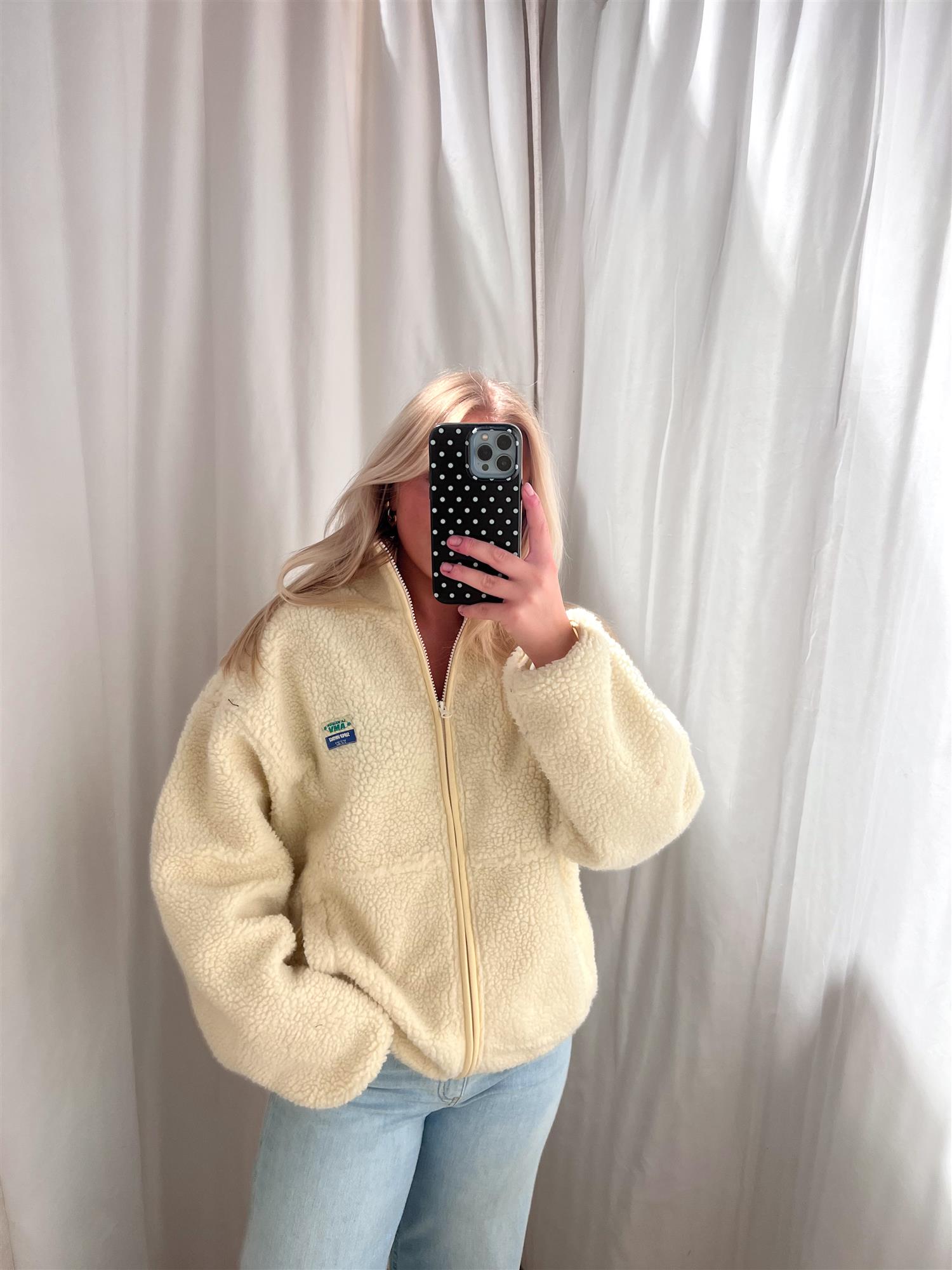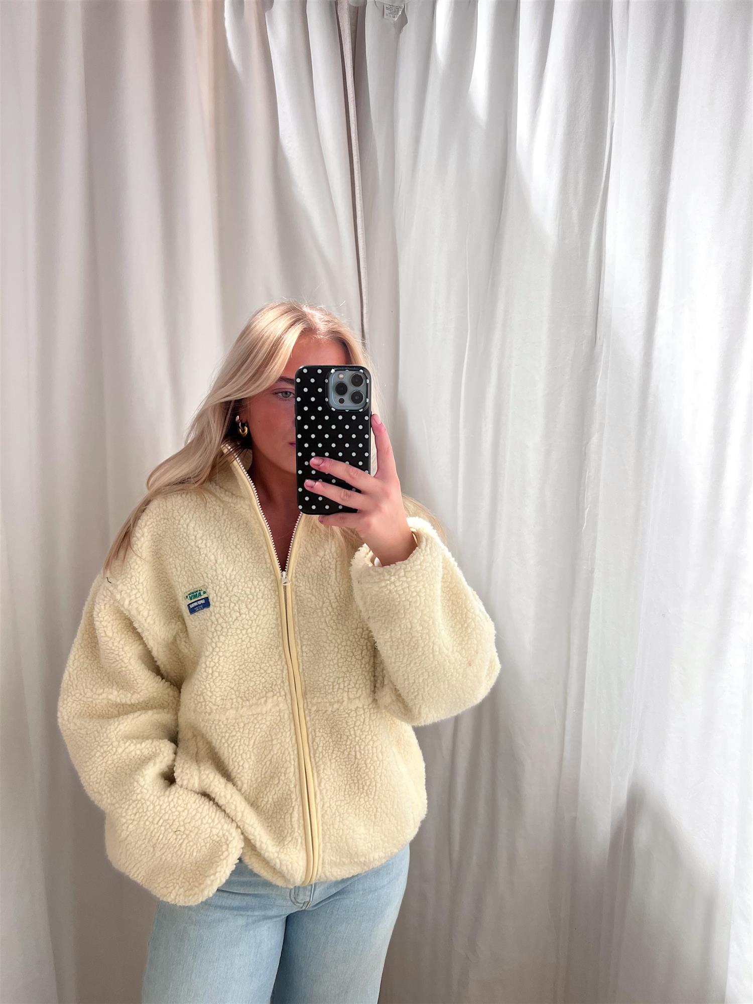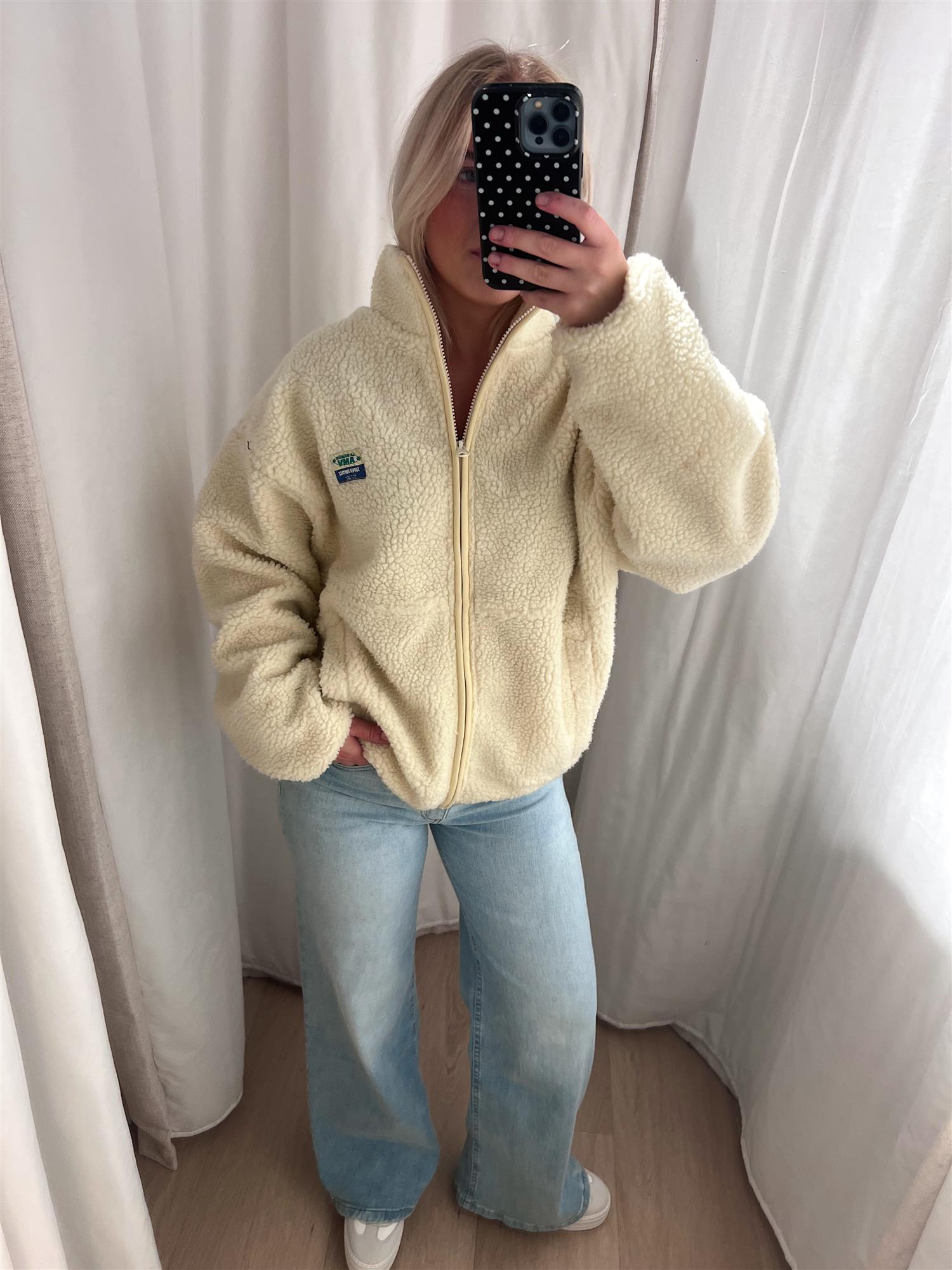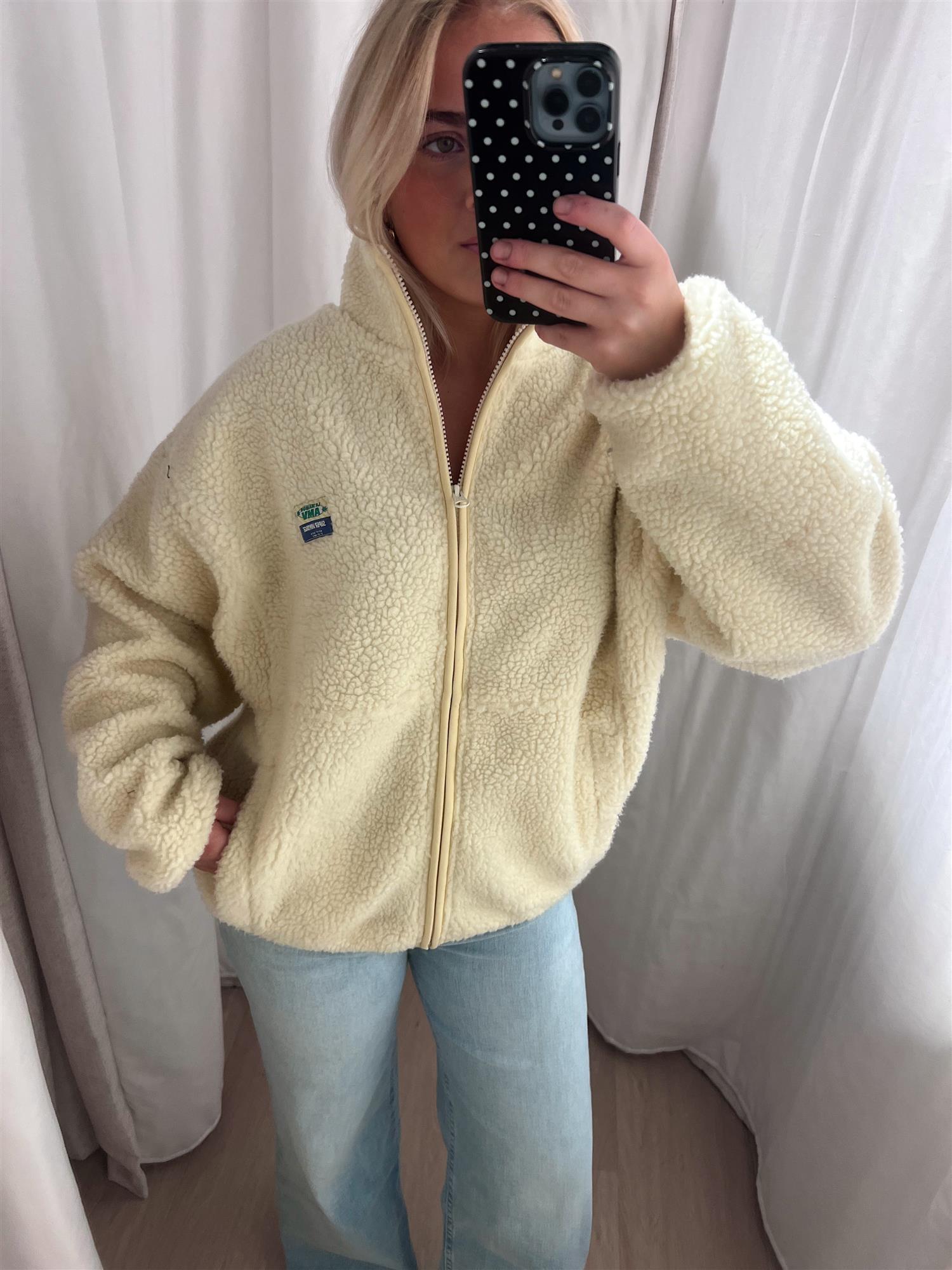 Denne myke fleecejakken fra American Vintage kombinerer komfort og et avslappet, moderne uttrykk. Jakken er laget i en deilig teddy-fleece som føles behagelig mot huden og gir god varme på kjølige dager.