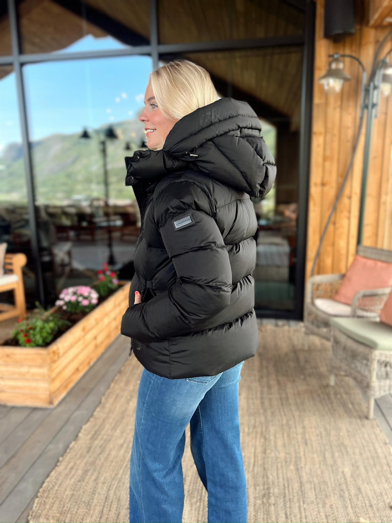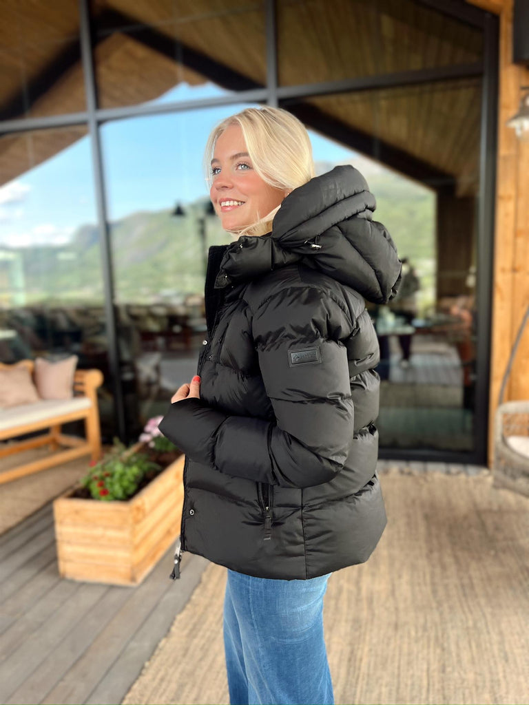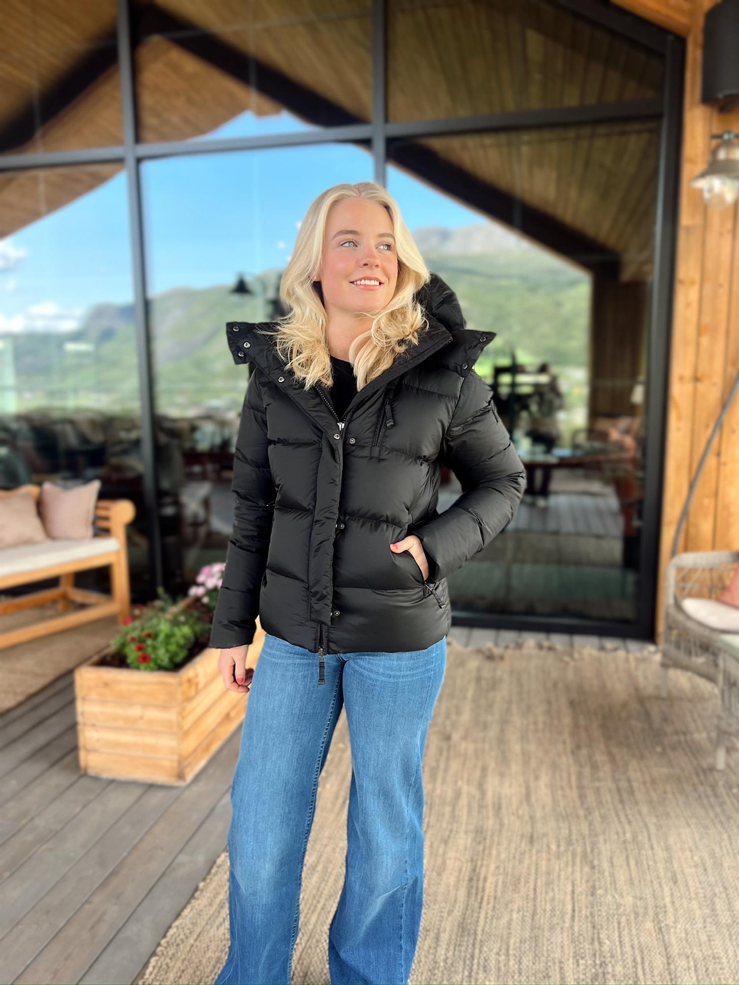 Cedrico Stella-jakken kombinerer stil og funksjonalitet med sin korte lengde og vannavvisende overflate, noe som gjør den perfekt for varierende vær. Den avtakbare hetten med justerbar snor gir ekstra fleksibilitet, mens myke rib-mansjetter sørger for komfort og holder kulden ute. Med 90% gåsedun og 10% fjær som fyll, og en fyllstyrke på 600, får du optimal varmeisolasjon. Jakken har slitesterke YKK Vislon-glidelåser både foran og på lommene. Yttermaterialet er laget av 100% nylon, fyll av 90% gåsedun og 10% fjær, og den anbefales håndvaskes ved 30°C. Stella er en perfekt blanding av mote og funksjon, ideell for både byliv og utendørs eventyr.