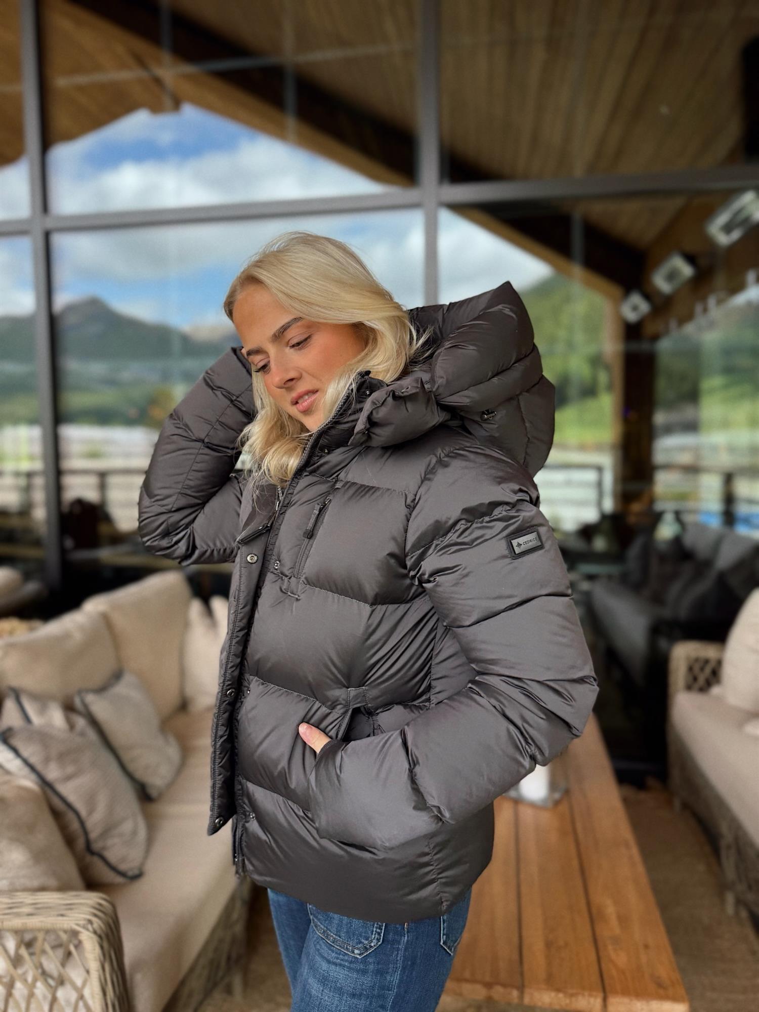 Cedrico Stella-jakken kombinerer stil og funksjonalitet med sin korte lengde og vannavvisende overflate, noe som gjør den perfekt for varierende vær. Den avtakbare hetten med justerbar snor gir ekstra fleksibilitet, mens myke rib-mansjetter sørger for komfort og holder kulden ute. Med 90% gåsedun og 10% fjær som fyll, og en fyllstyrke på 600, får du optimal varmeisolasjon. Jakken har slitesterke YKK Vislon-glidelåser både foran og på lommene. Yttermaterialet er laget av 100% nylon, fyll av 90% gåsedun og 10% fjær, og den anbefales håndvaskes ved 30°C. Stella er en perfekt blanding av mote og funksjon, ideell for både byliv og utendørs eventyr.