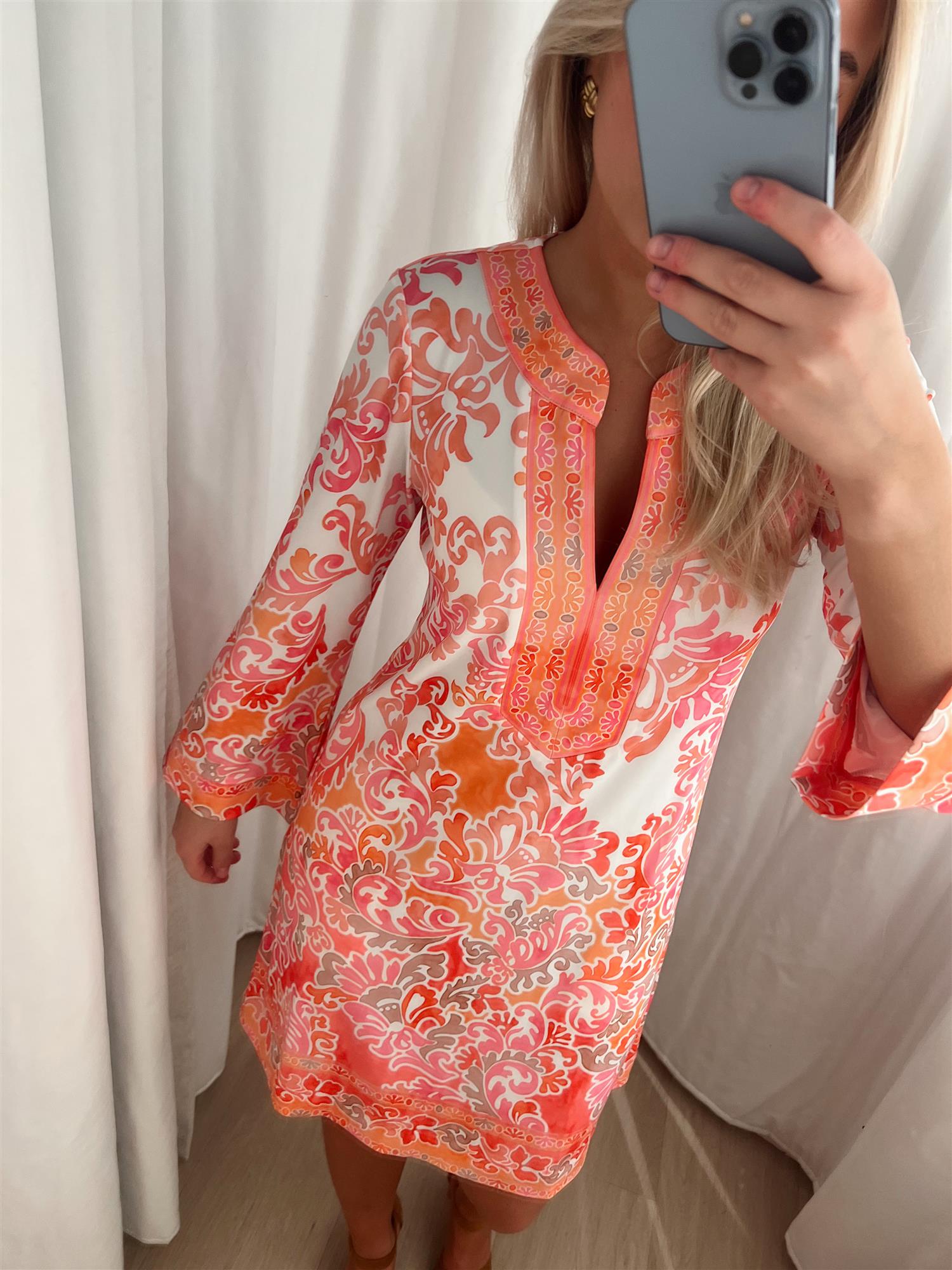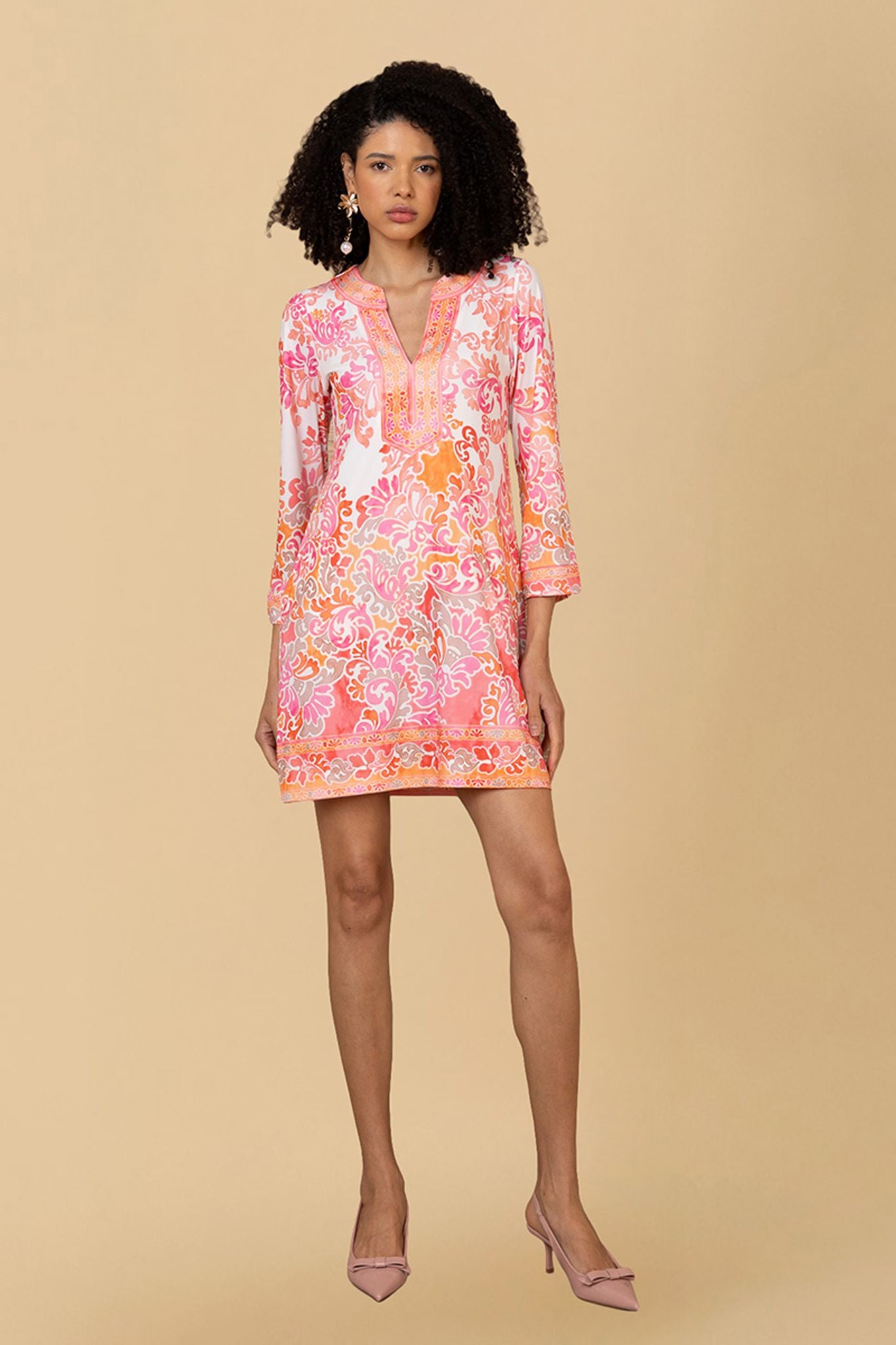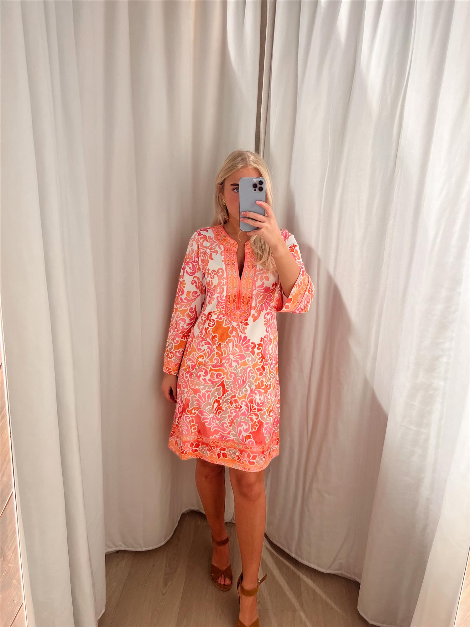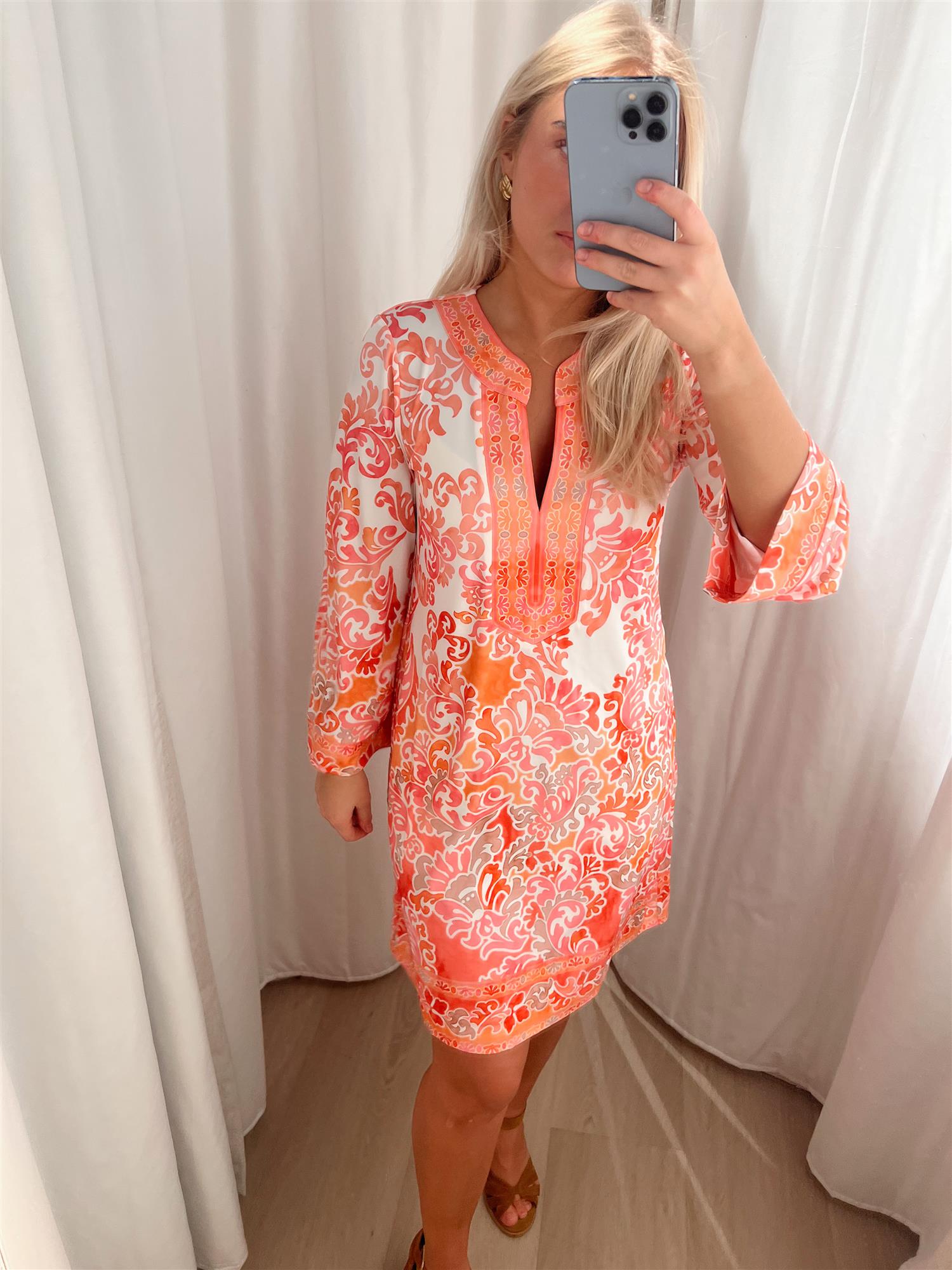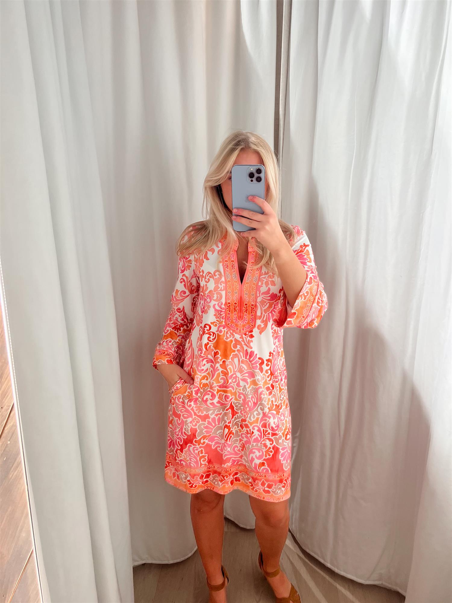 Flannery-kjolen i en vakker rosa nyanse kombinerer stil og komfort. Laget av en myk og elastisk blanding, er denne kjolen perfekt for en uformell dag eller en spesiell anledning.