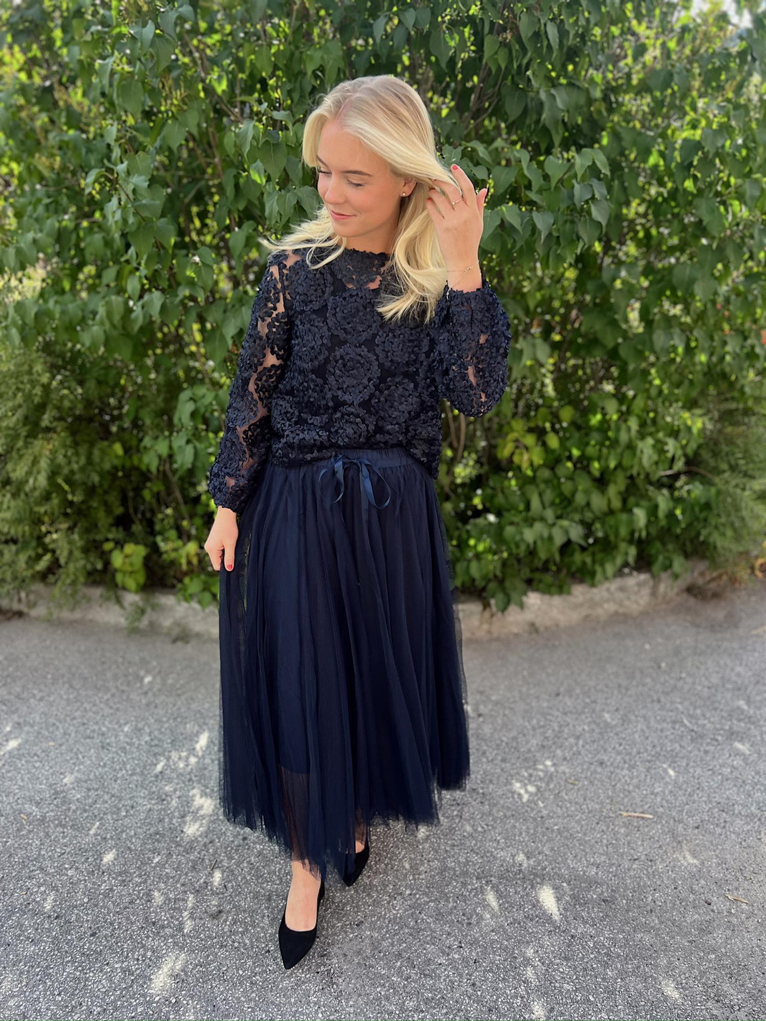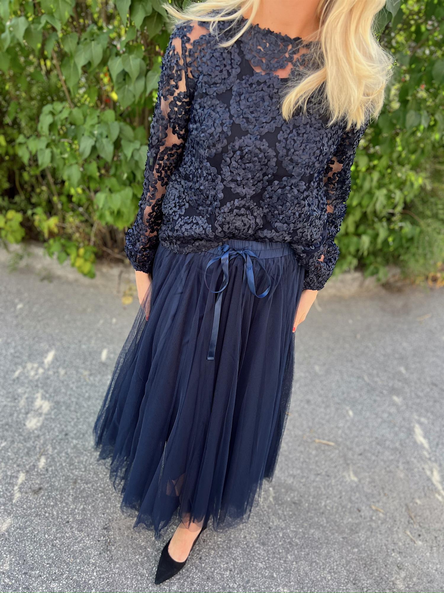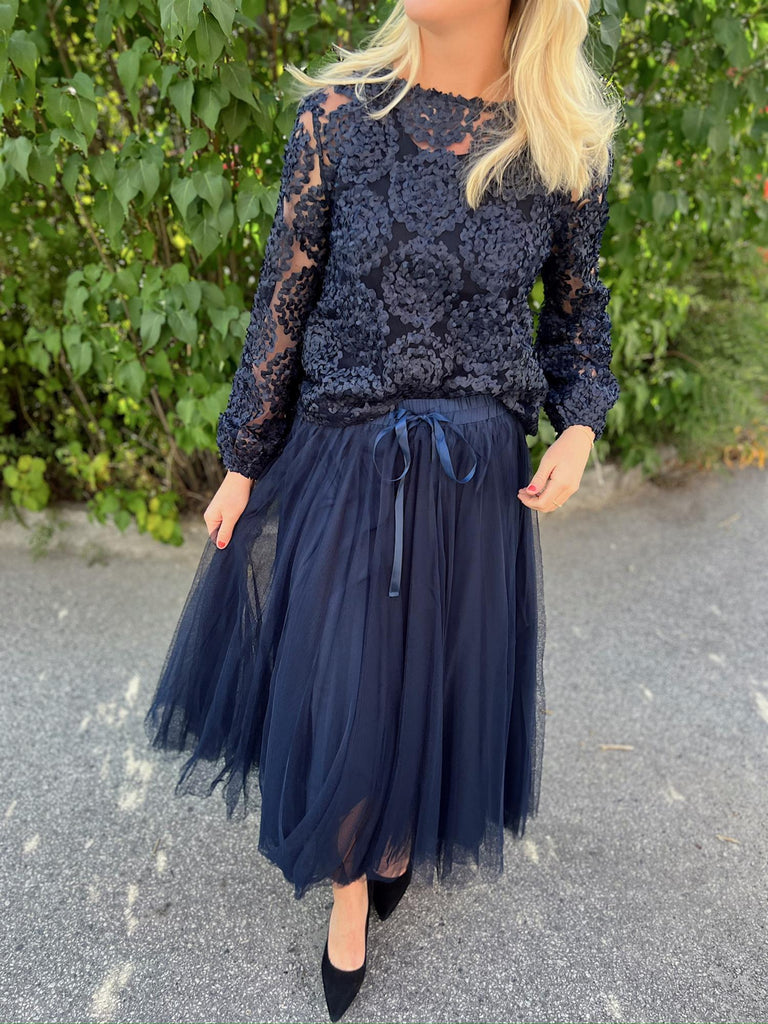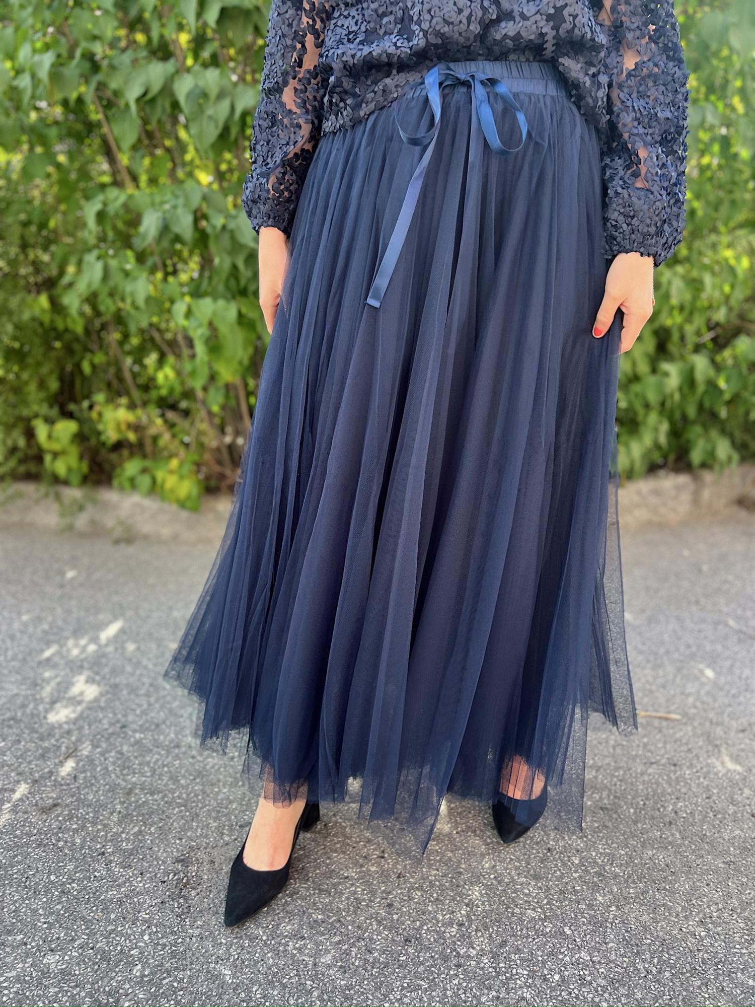 Løft antrekket ditt med dette elegante tyllskjørtet fra From Paris With Love. Skjørtet har en stilfull knyting i livet og faller lekkert, noe som gir et feminint og luftig uttrykk. Perfekt å kombinere med matchende topper, bluser eller en enkel genser for en gjennomført look – både til hverdags og fest.