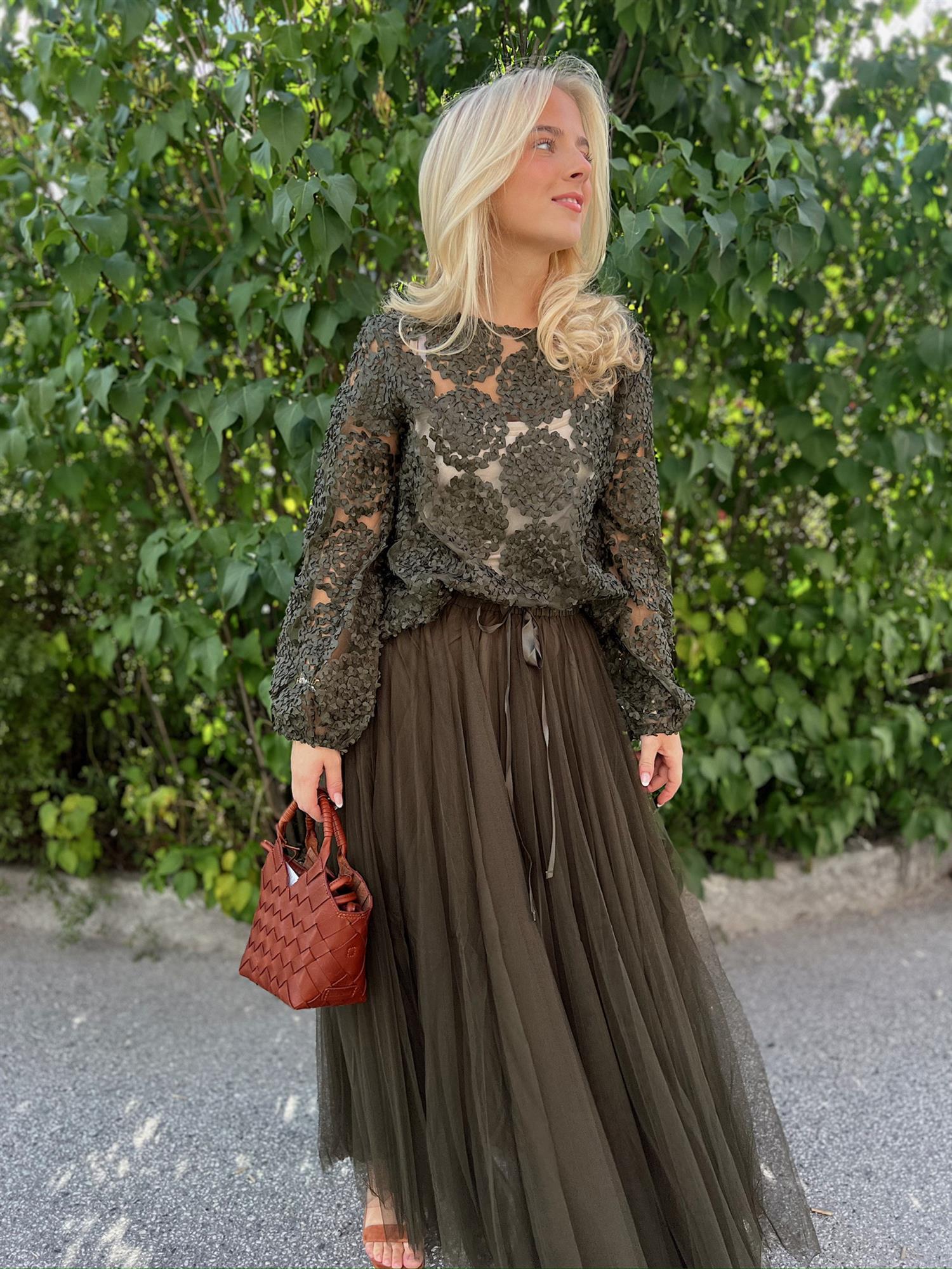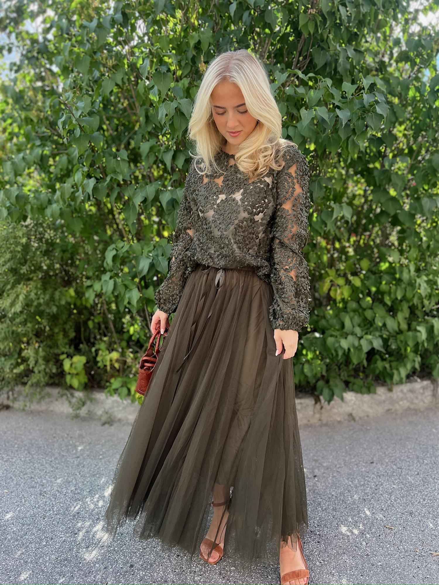 Gi antrekket ditt et elegant løft med dette vakre tyllskjørtet fra From Paris With Love. Skjørtet består av flere lag med lett tyll som skaper et feminint og luftig uttrykk. Med knyting i livet sitter det behagelig og kan enkelt tilpasses. Perfekt til både hverdags og fest – style med en enkel topp for et avslappet preg, eller med en bluse for en mer sofistikert look.