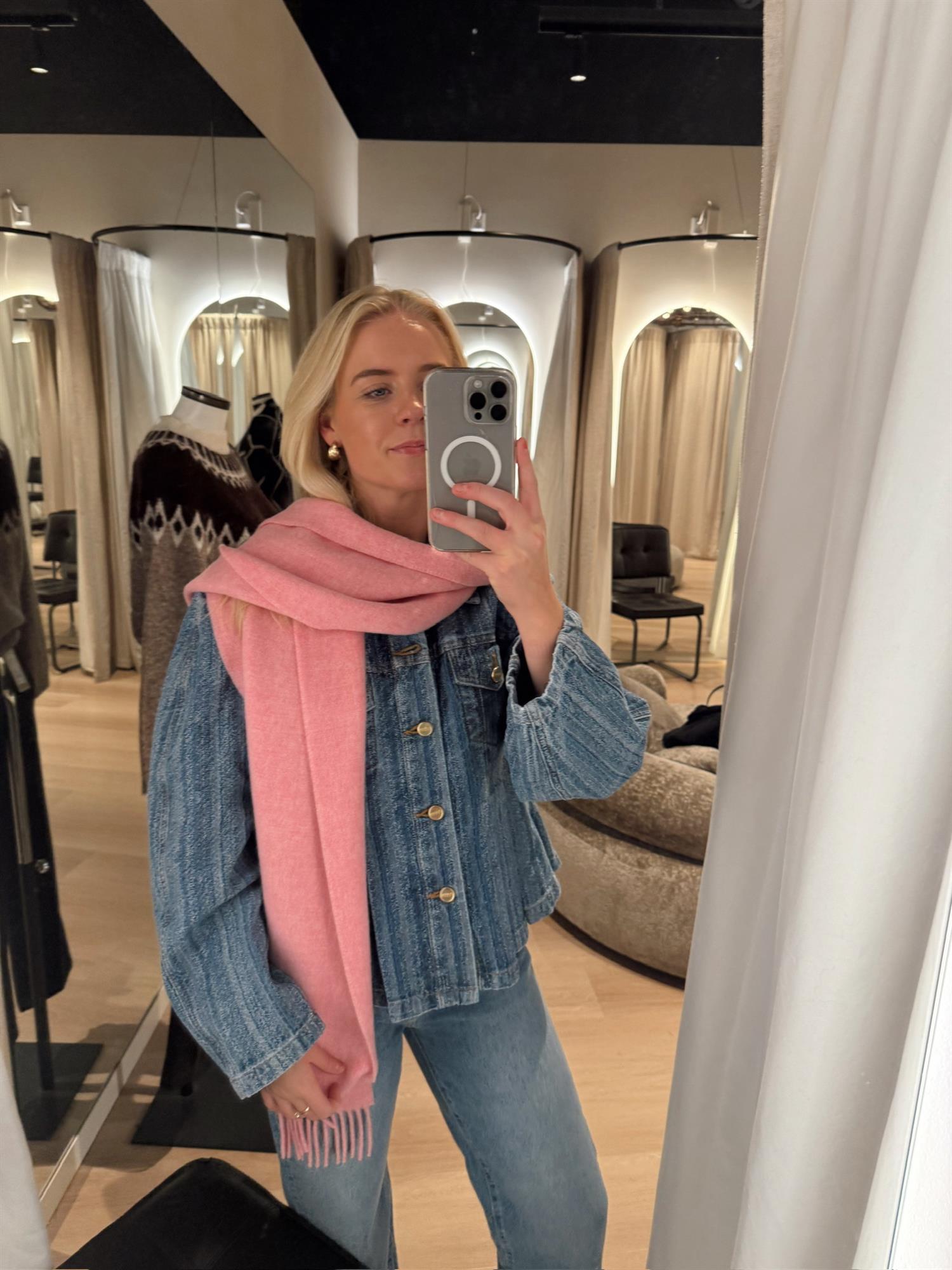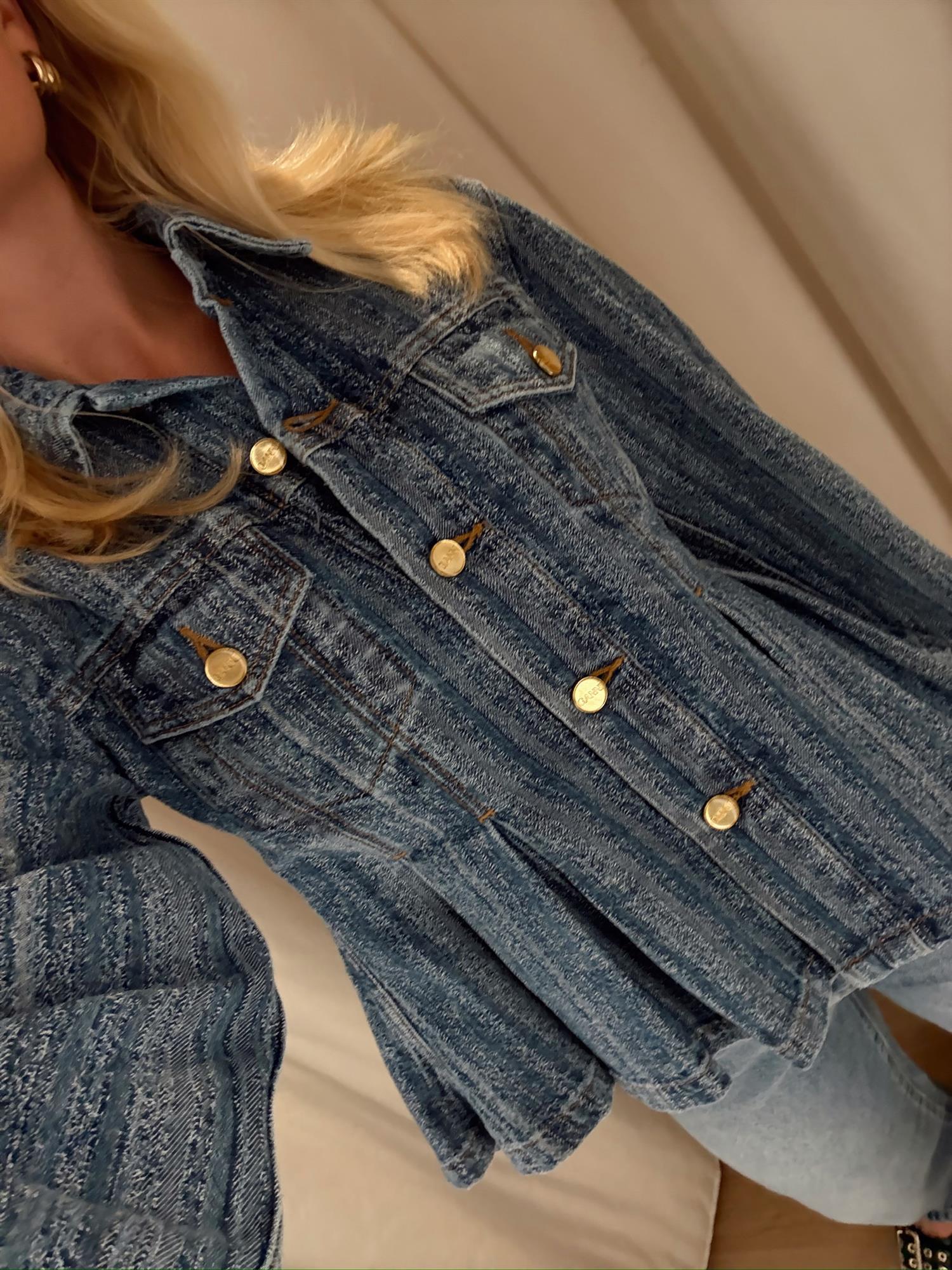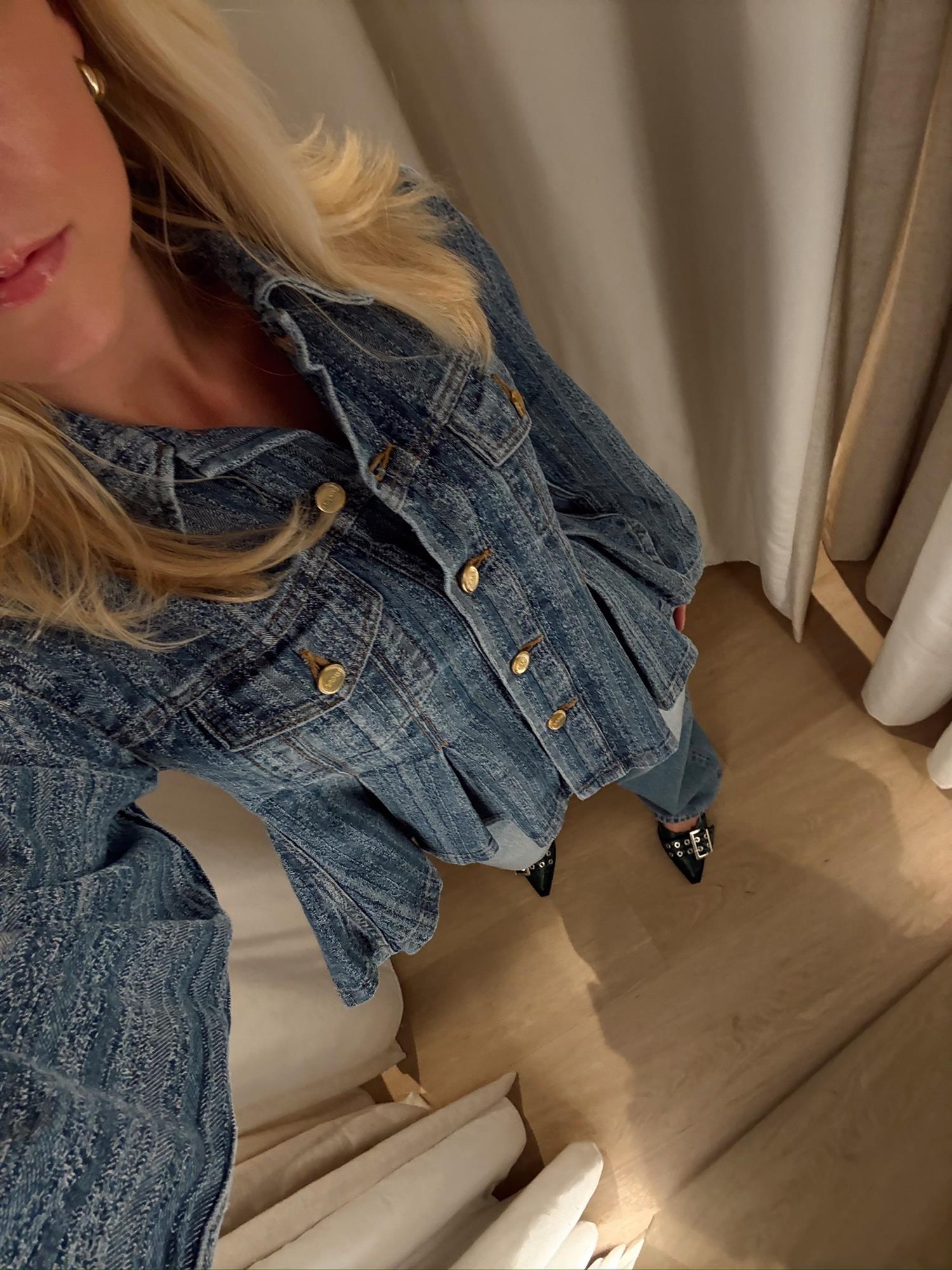 Høstens kuleste denimjakke er her! Denne jakken fra Ganni har en feminin og flatterende silhuett med innsvingt midje, peplumeffekt og volanger som gir et lekent preg. Lange, rette ermer gjør jakken enkel å style til både hverdag og fest. Laget i 100 % økologisk bomull – et bærekraftig og mykt valg.