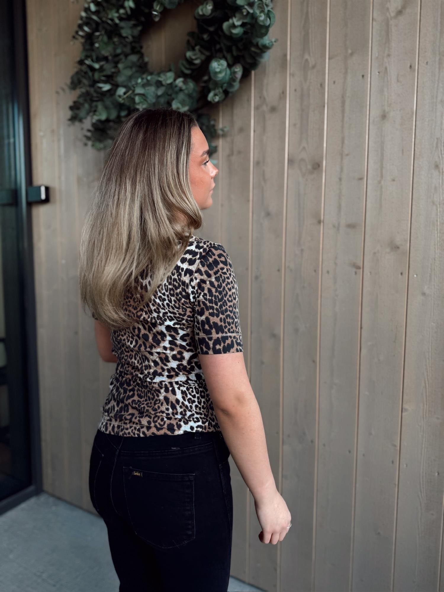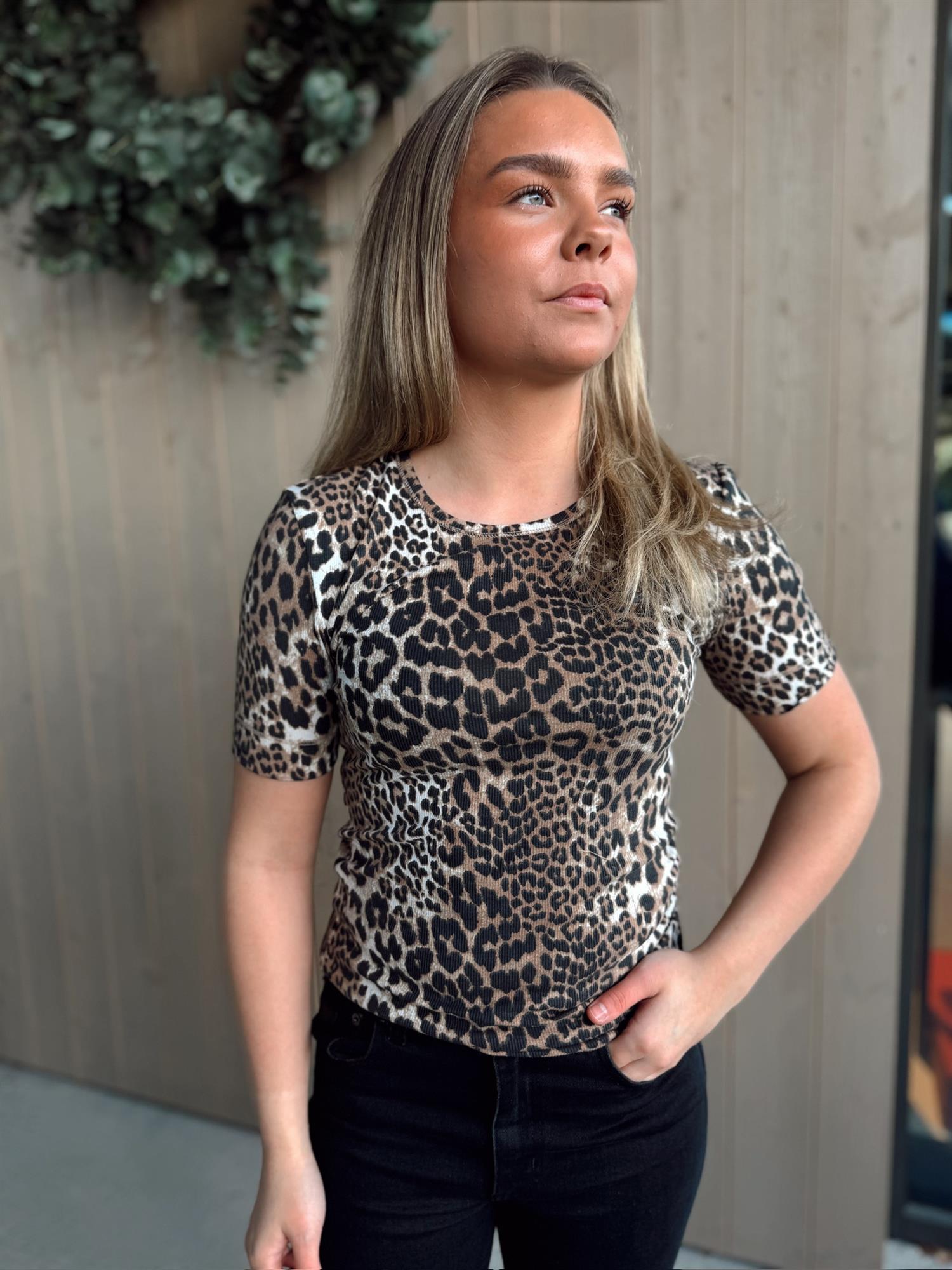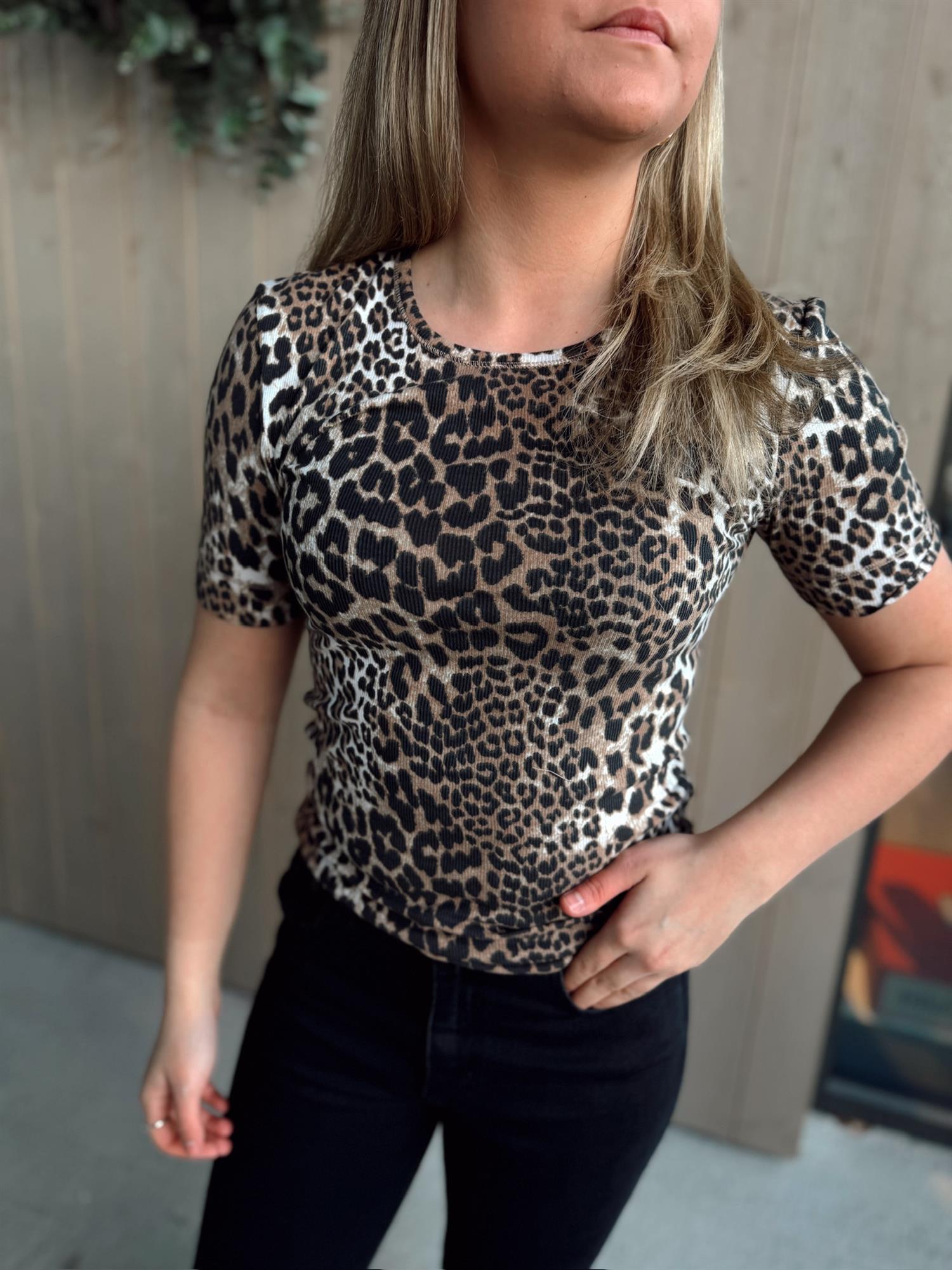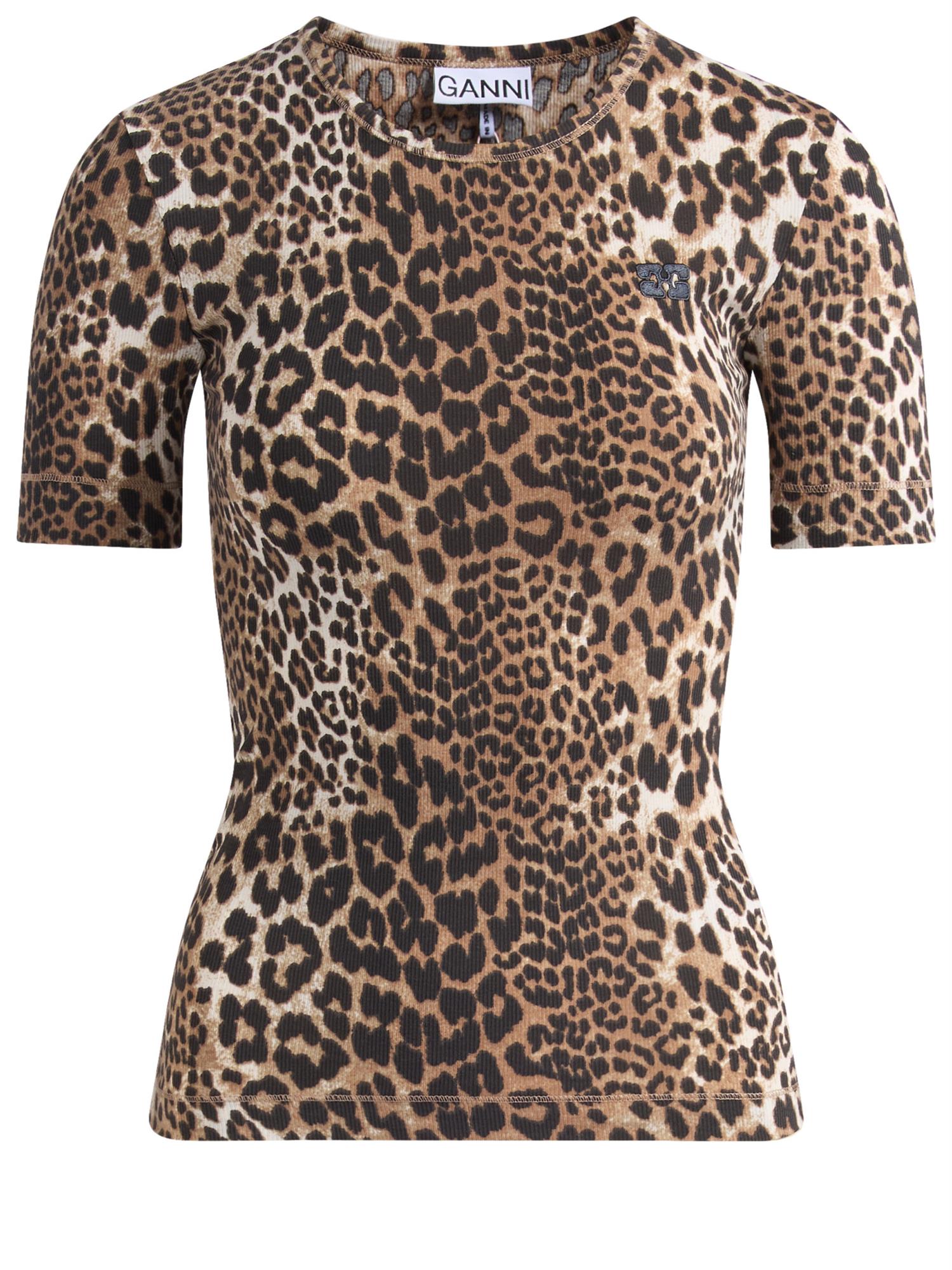 GANNI - Soft Cotton Rib Short Sleeve T-Shirt - Leopard