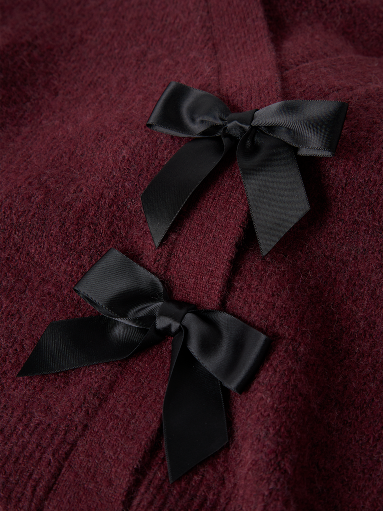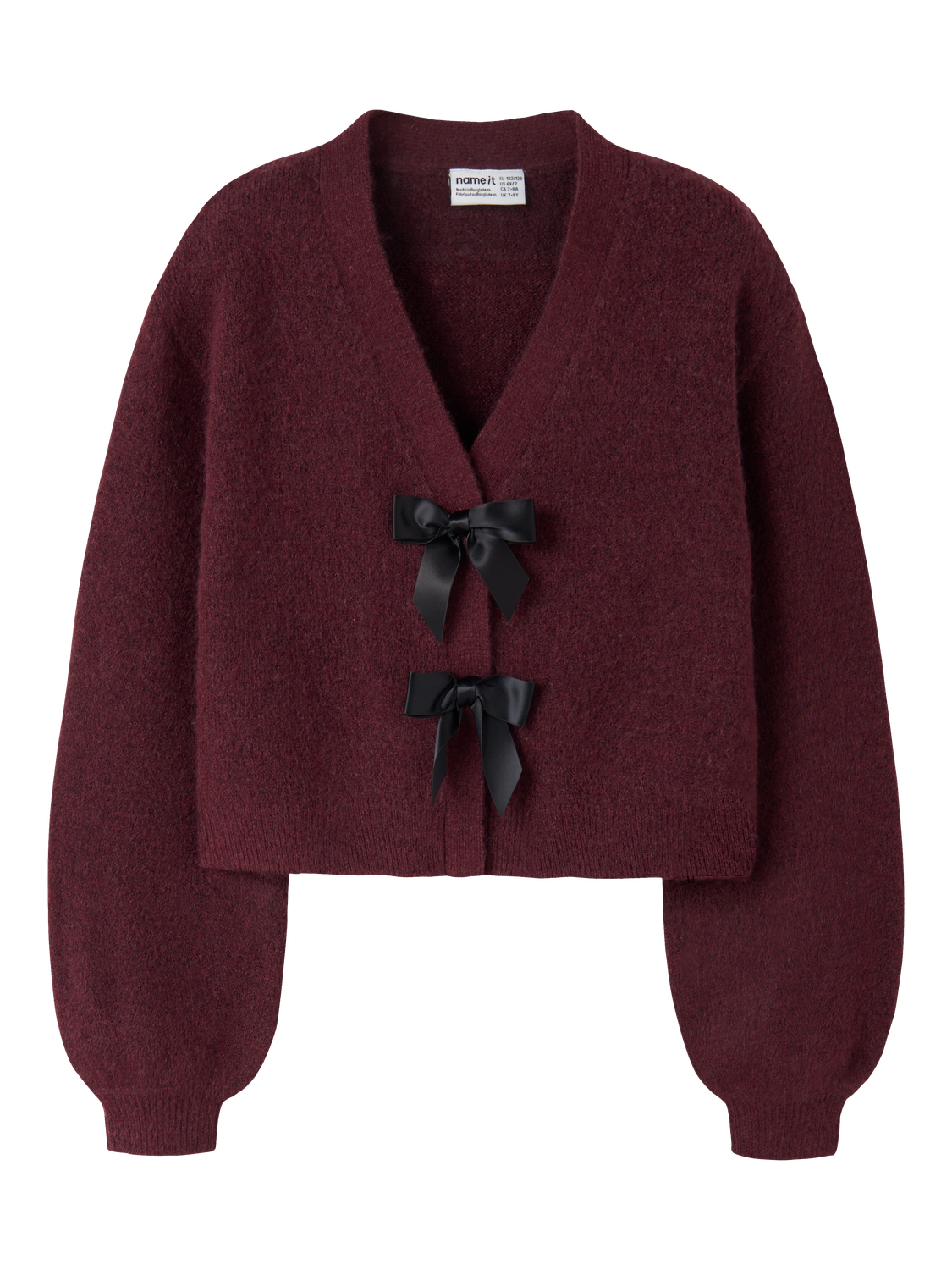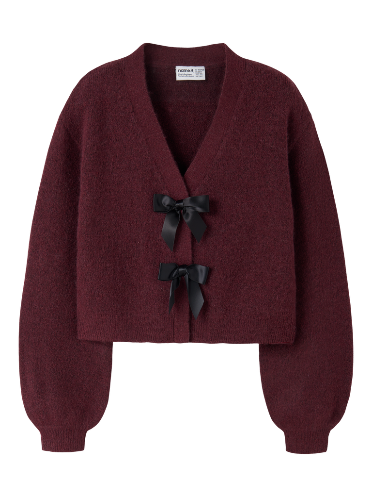 Name It - Nkfrina Ls Knit Card - Burgundy Black Bow