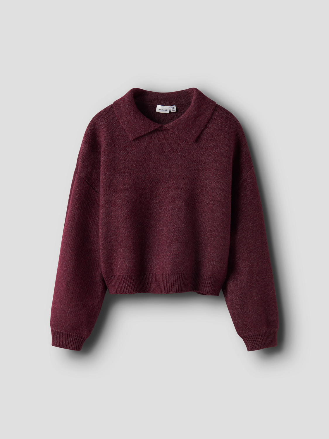 Name It - Nkfsonia Ls Polo Knit - Burgundy