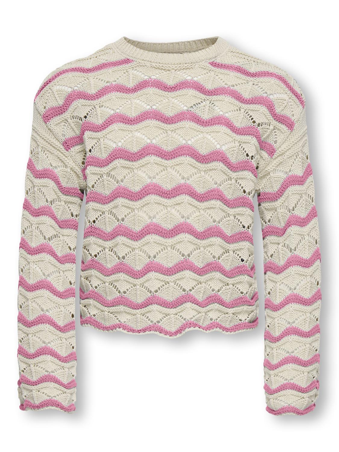 Only - Kogdonna Ls O-Neck Stripe Structure Knt - Birch Cashmere Rose