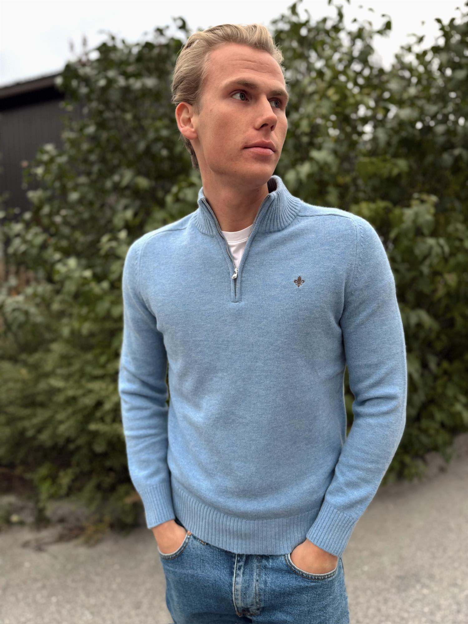 New Hertford Half Zip er et nytt og raffinert tilskudd til vår Hertford-kolleksjon for høst og vinter 2025. Genseren er strikket i børstet merinoull, som gir en ekstra myk og behagelig følelse – nesten som lammeull – samtidig som den har en lett og behagelig tyngde. Dette gjør den både komfortabel og elegant, uansett anledning.