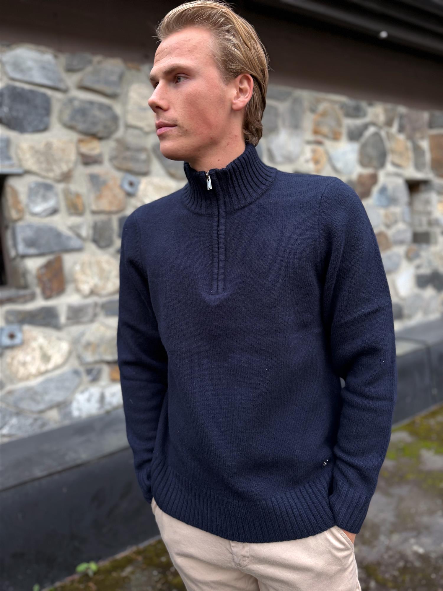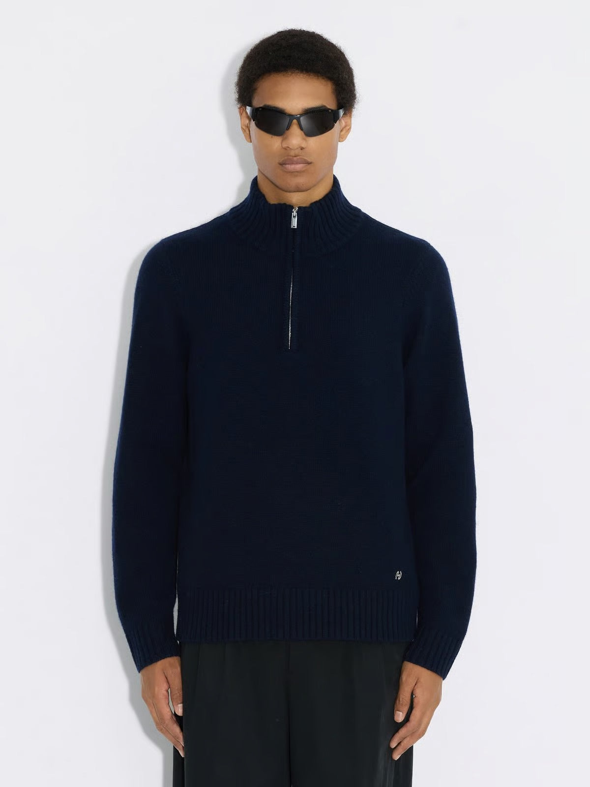 En tidløs og allsidig genser fra Holzweiler, laget i myk ullblanding med en avslappet passform. Genseren har en høy hals med glidelås, ribbestrikkede kanter og et diskret metallogo-detalj nederst.
