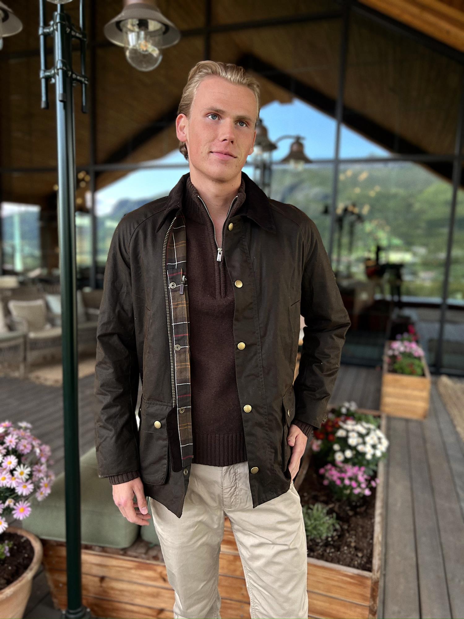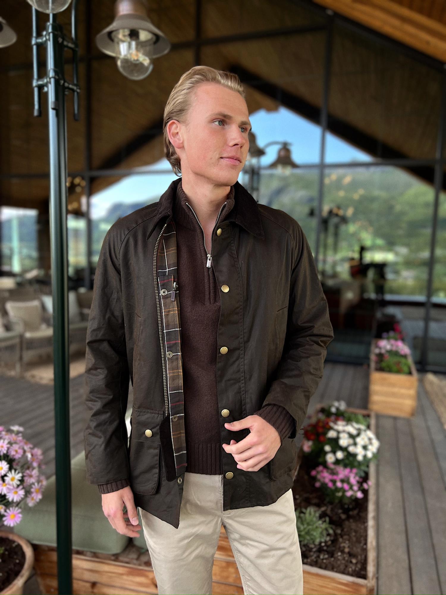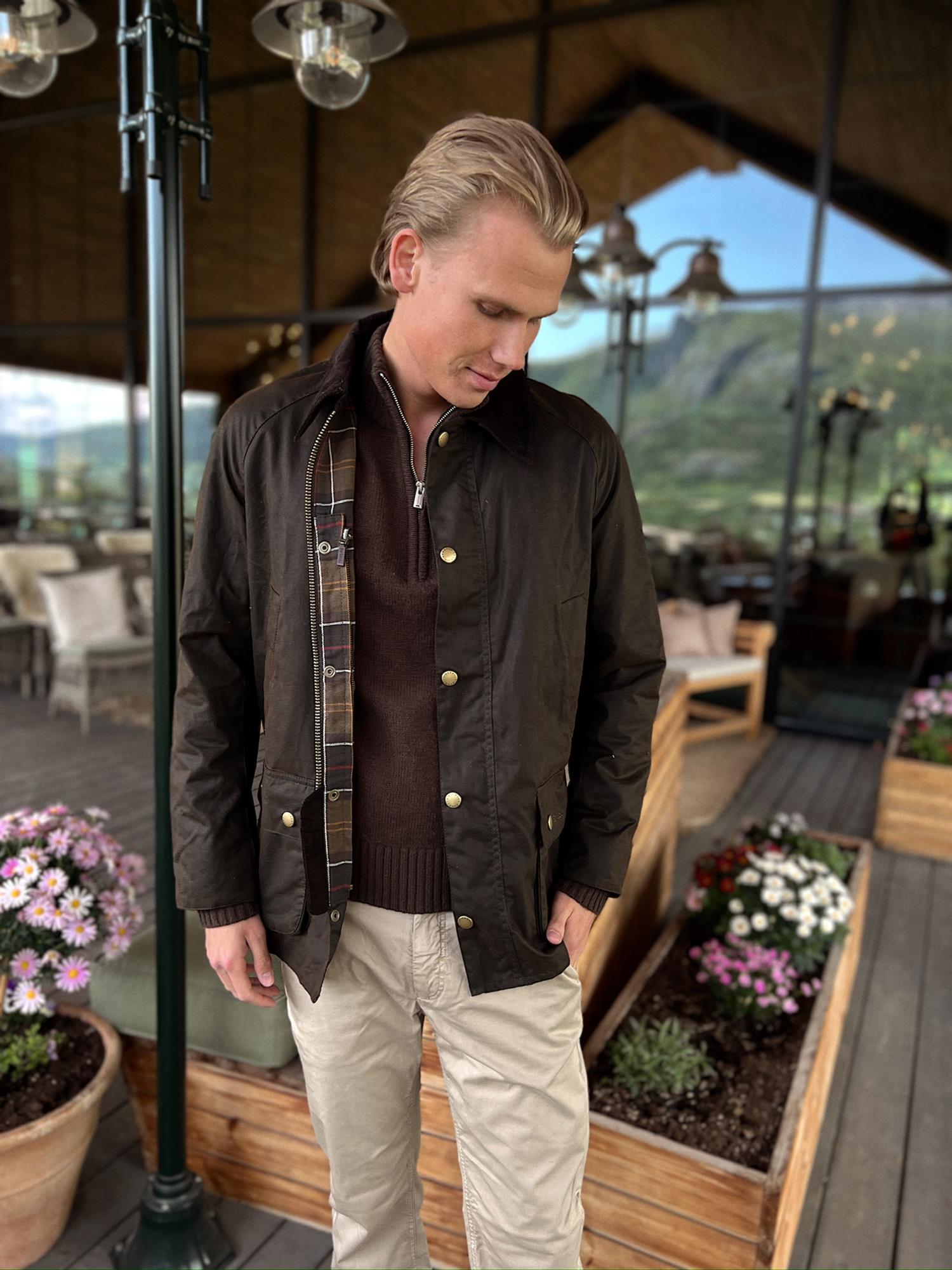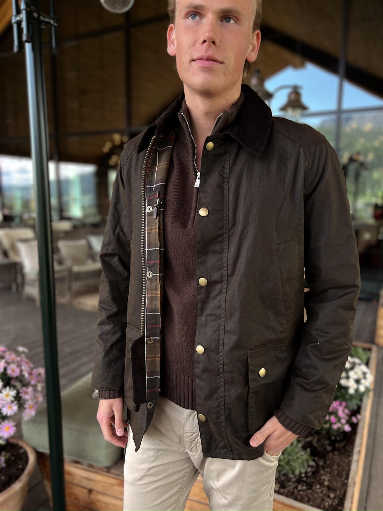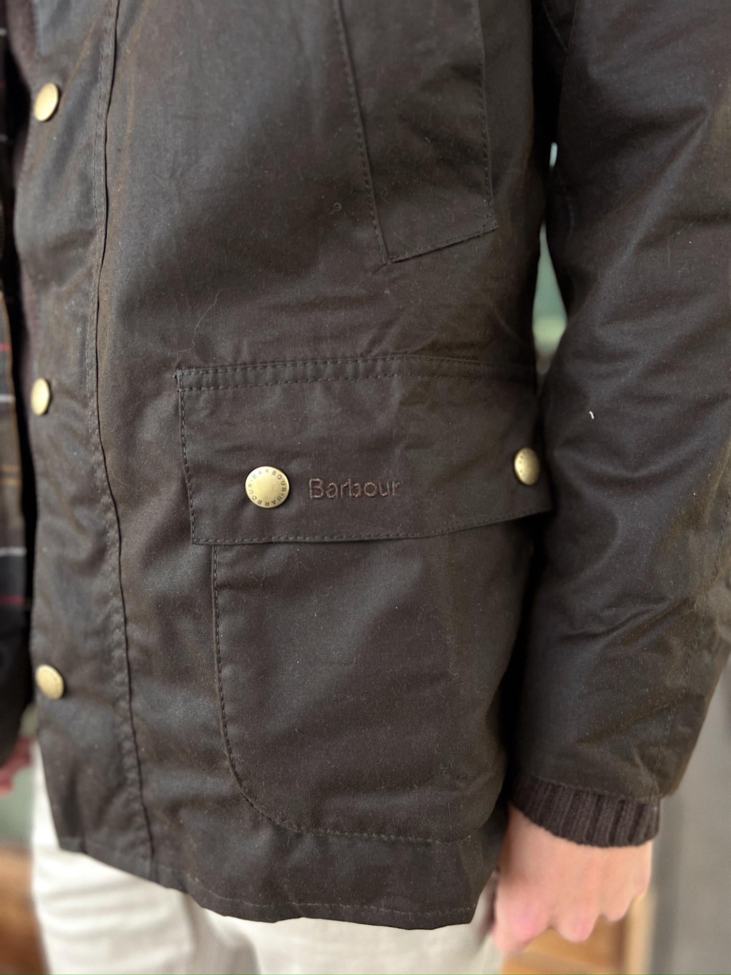 En smalere versjon av den klassiske og populære waxed jacket fra Barbour. Lukkes med en kraftig glidelås samt trykknapper. Krage samt kant nederst på armer foret med cordfløyel. Fire praktiske lommer fram samt en innerlomme. Foret i mønsteret Barbour Classic Tartan. Tekstil Ytter- og innerfor 100% Bomull, for i ermer 100% polyester.