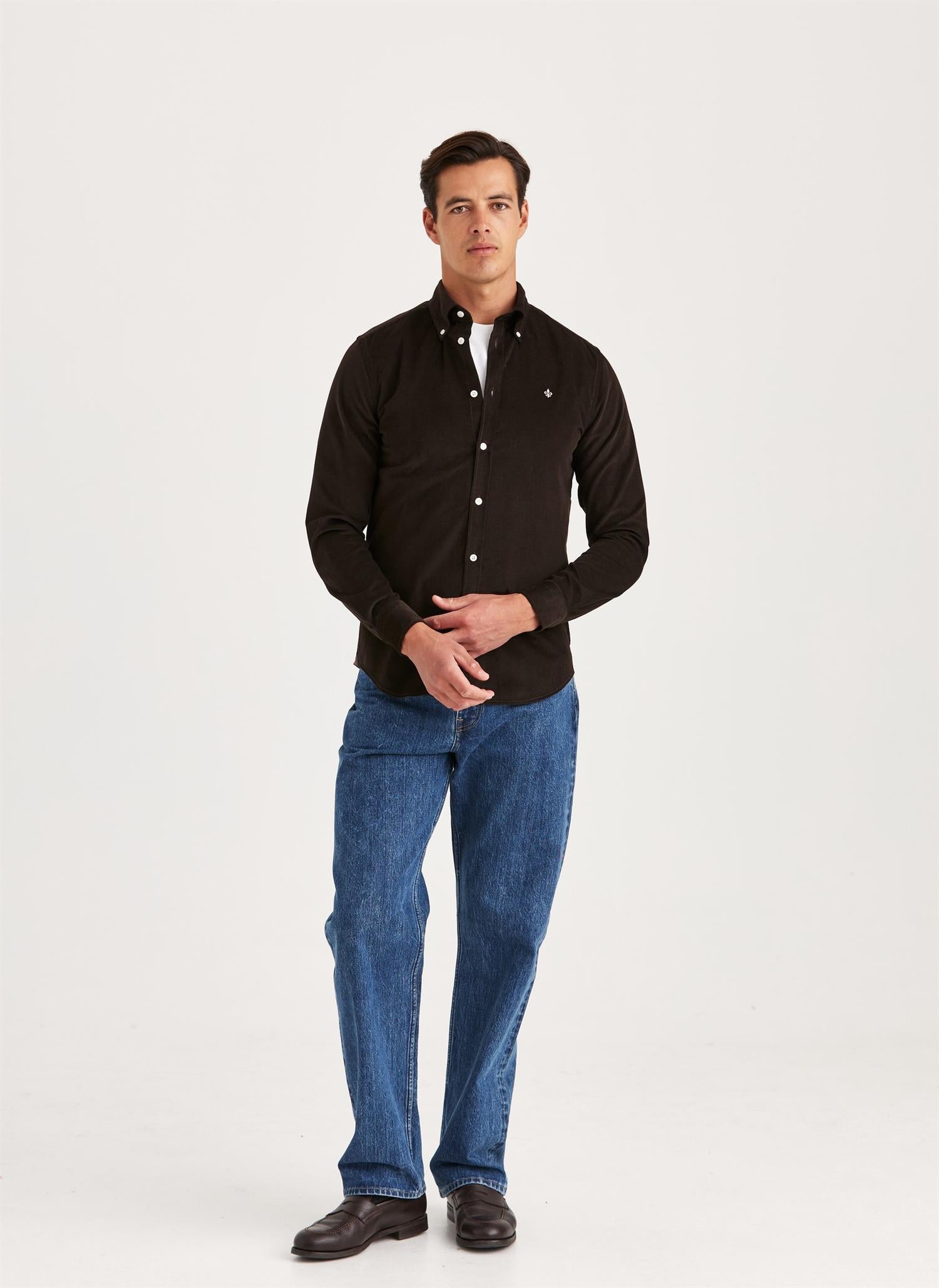 Douglas Cord Skjorte er sydd i Morris sin smale passform (slim fit), og har en klassisk button-down-krage samt diskrete mansjetter med én knapp – detaljer som gir et velbalansert og stilrent uttrykk. Den fine cordfløyelen tilfører et mykere preg og en elegant tekstur, noe som gjør skjorten til et perfekt tilskudd i en oppdatert garderobe for sesongen. Designet for å kombineres like godt med jeans og chinos som med dressbukser i ull.